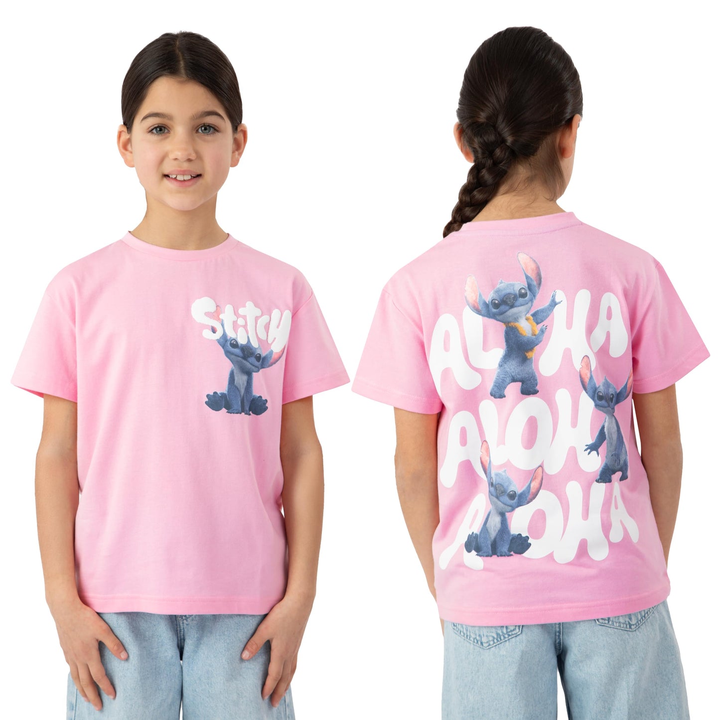 Sagen Sie „Aloha!“ Zu diesem entzückenden Lilo und Stitch-T-Shirt, dem perfekten Disney-Stitch-Kleidungsstück für jeden kleinen Disney-Fan. Dieses Kinder-T-Shirt-Mädchen, das Mädchen lieben werden, strotzt nur so vor Insel-Flair, verfügt über eine leuchtend rosa Farbe und ein bezauberndes Stitch-Motiv auf der Vorder- und Rückseite. Auf der Brust sitzt Stitch und lächelt süß, über ihm sein Name in weichem, weißem Puffdruck. Wenn Sie das Disney-Tshirt umdrehen, finden Sie ein größeres Motiv von Stitch in mehreren verspielten Posen, umgeben von dem kräftigen weißen Wort „Aloha“ – ein echter tropischer Touch! Gemacht aus 100% weicher Baumwolle ist das Kurzarm-Stitch-Mädchen-T-shirt atmungsaktiv, bequem und perfekt für den Sommer. Die kurzen Ärmel machen es zu einer großartigen Wahl für sonnige Tage, Spieltreffen, Familienausflüge oder einfach zum Faulenzen. Gemacht für Fans von Lilo & Stich sorgen diese Disney-T-shirts für Mädchen für einen Spritzer Spaß in jedem Outfit und sie sind ideal zum Kombinieren mit anderer Mädchenkleidung. Egal, ob Sie noch Mädchen-Geschenke für einen Geburtstag suchen, ein einzigartiges Disney-Stitch-Geschenk für Kinder oder einfach den Kleiderschrank Ihres Kindes mit der niedlichsten Kinderkleidung updaten möchten, dieses Mädchen-T-Shirt bietet sowohl Stil als auch Komfort. Es ist auch eine unterhaltsame und modische Möglichkeit, Ihrem Kleinen offiziell lizenzierte Disney-Kleidung für Mädchen vorzustellen. Damit sind diese T-Shirts für Mädchen ein Muss für jedes Stitch-begeisterte Kind. Ideal für den Alltag, den Urlaub oder besondere Anlässe – das Top ist eines dieser Disney-T-Shirts, die sie immer wieder tragen möchten!