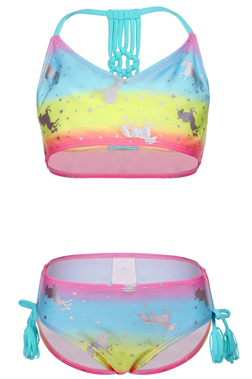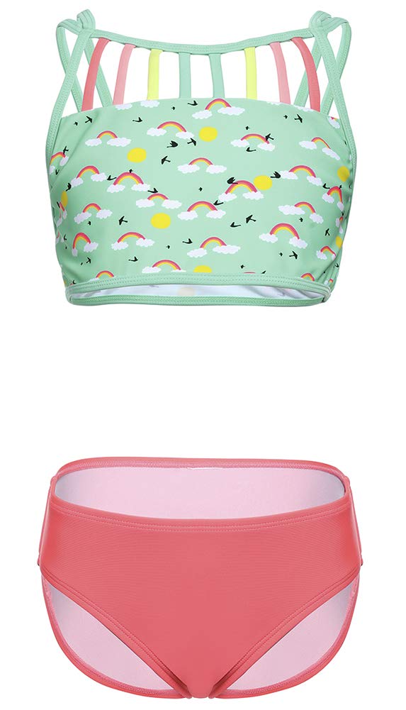 DUSISHIDAN Bikini Kinder Mädchen Zweiteiliger Bademode Süß Badeanzug Zurück überqueren Sommer Swimsuit 110-176