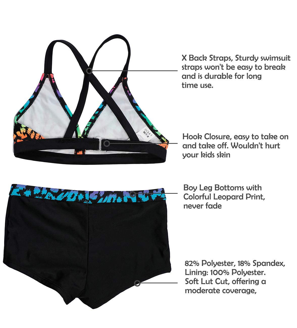 • Zweiteiliger Bikini,geeignet für Mädchen zwischen 5 und 15 Jahren. Modell zeigen: 7 Jahre Alt/135cm (Geeignet für M-Code).Wenn ein Mädchen pummelig ist, wird empfohlen, eine größere Größe zu wählen.