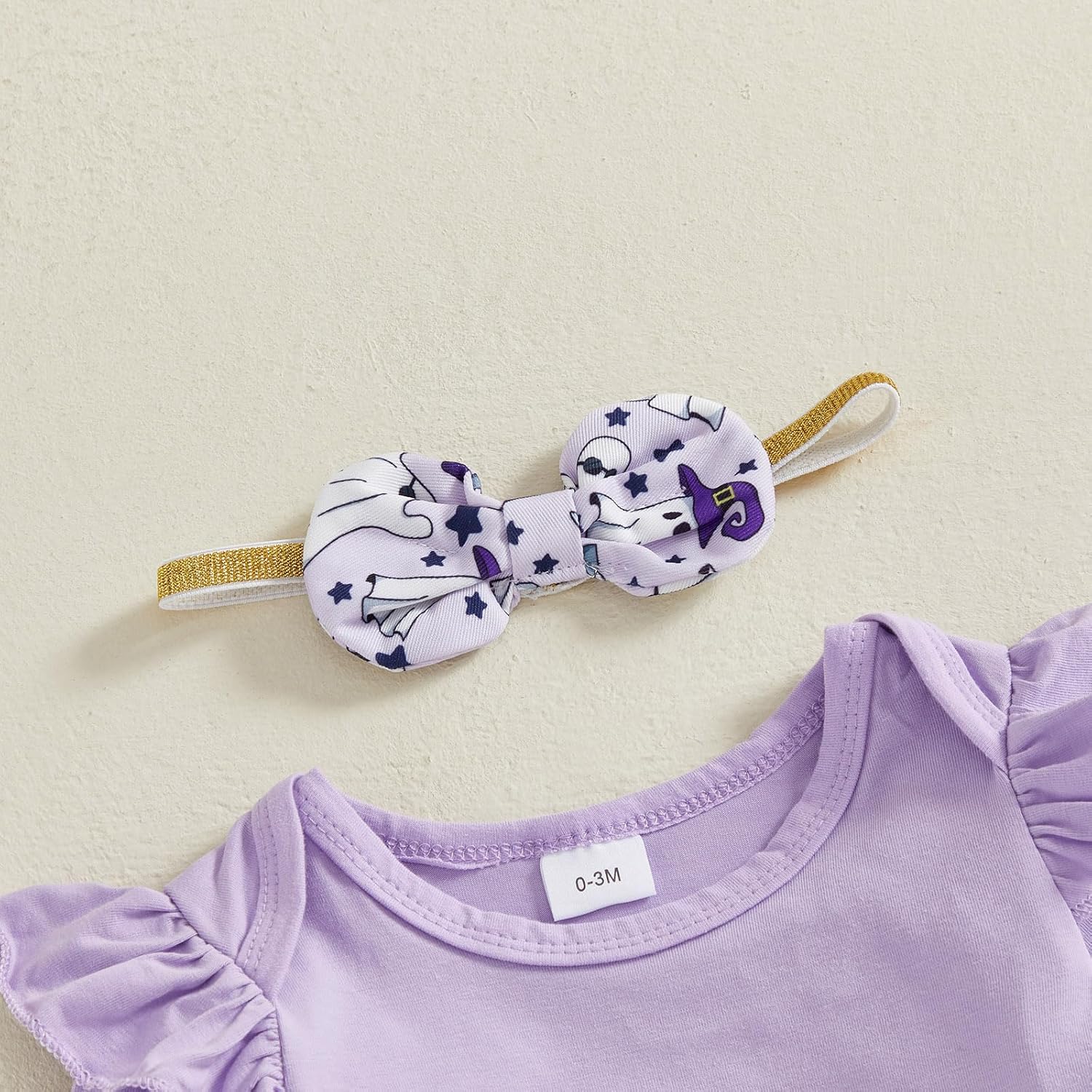 ESSECMBS Infant Baby Girl Halloween Romper Skirt 3 Pieces Clothing Set Long Sleeve Ruffle Shoulder Body Braces Pumpkin Ghost Skirt Headband Girls All Saints Clothing