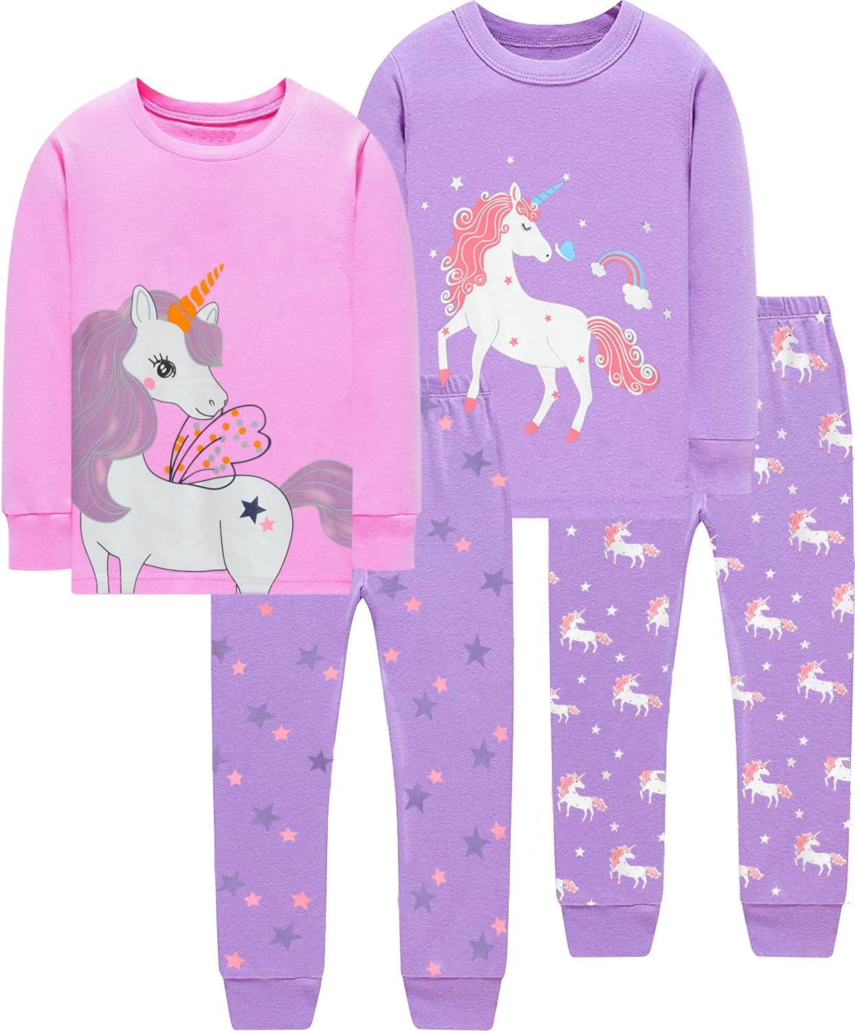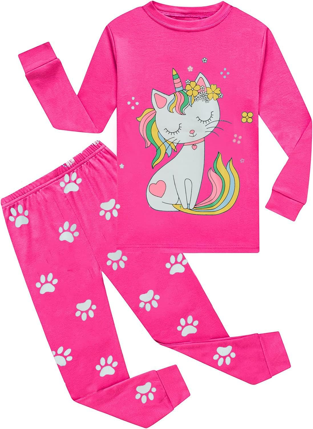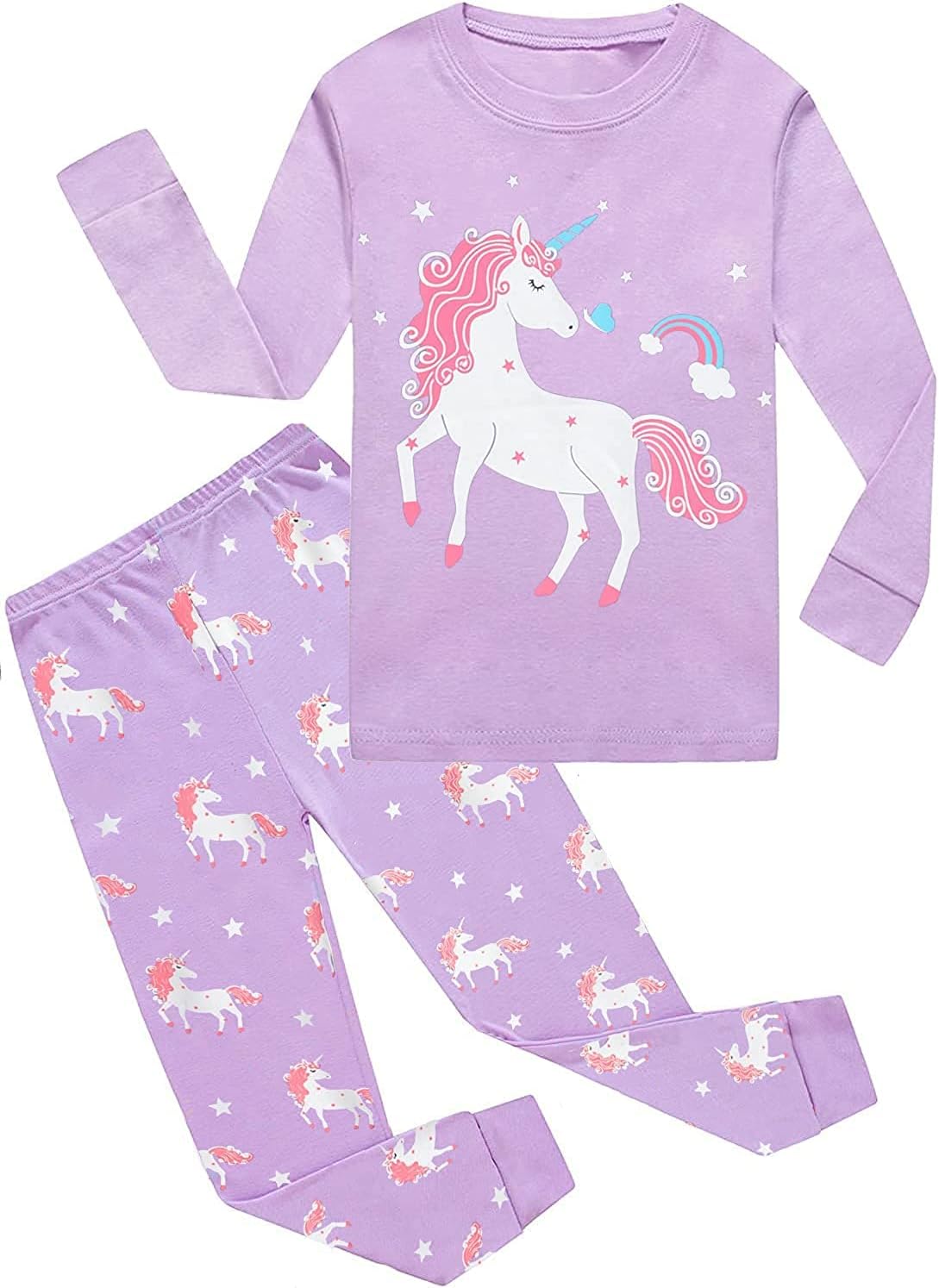 EULLA Kinder Mädchen Schlafanzüge Langarm Baumwolle Winter Pyjama Set Einhorn Prinzessin Dino Hase Eule Zweiteilig Nachtwäsche 1-10 Jahre 92 98 104 110 116 122 128 134 140