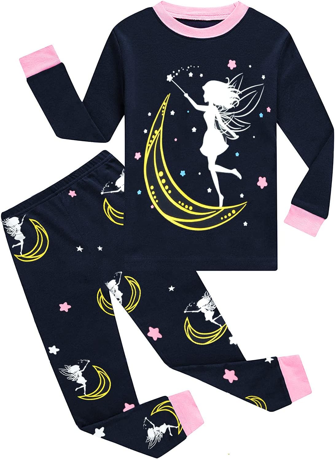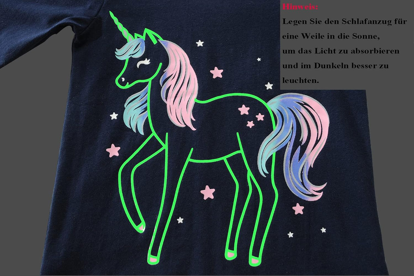 • ❤【Glow in the dark schlafanzug mädchen】A# Mädchen Einhorn schlafanzug,B# Mädchen Prinzessin schlafanzug,diese beiden gemusterten dunkelblauen Pyjamas können im Dunkeln leuchten und sorgen für Spaß für Kinder.