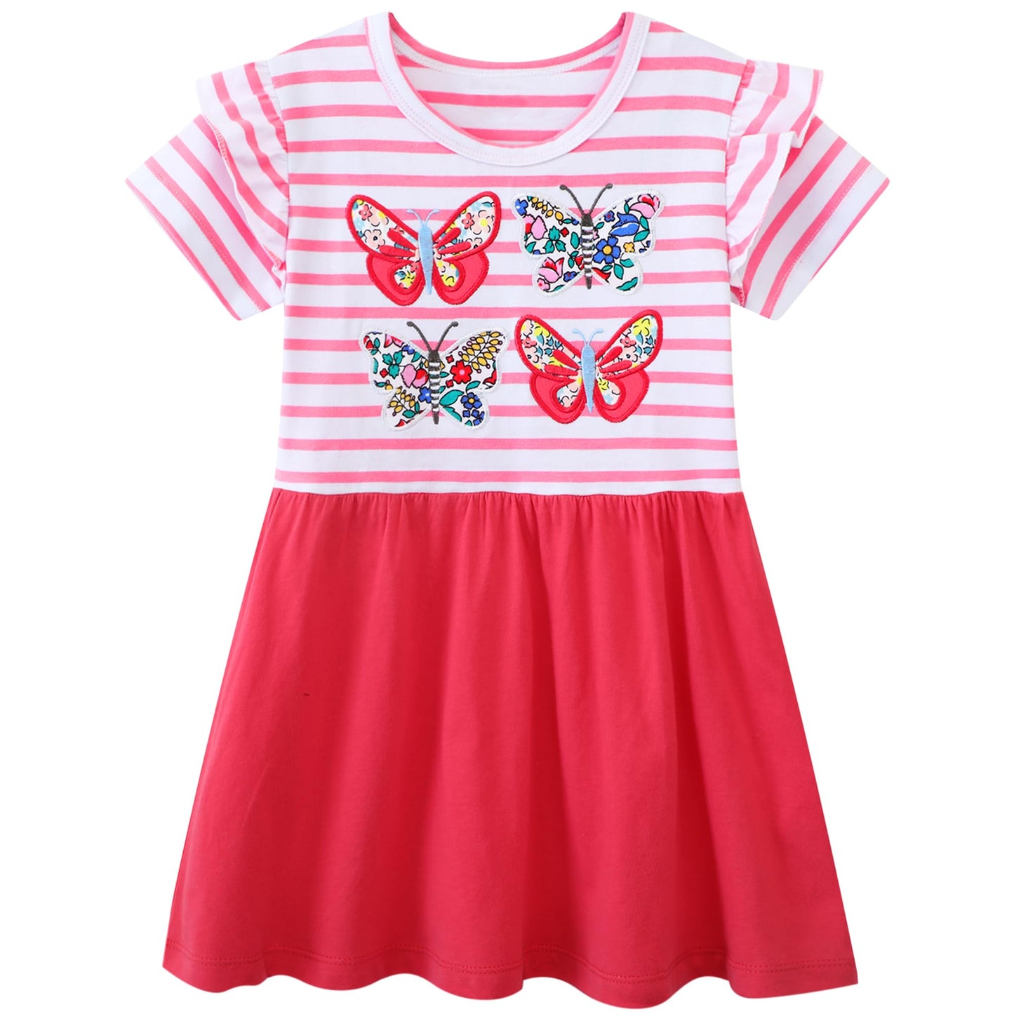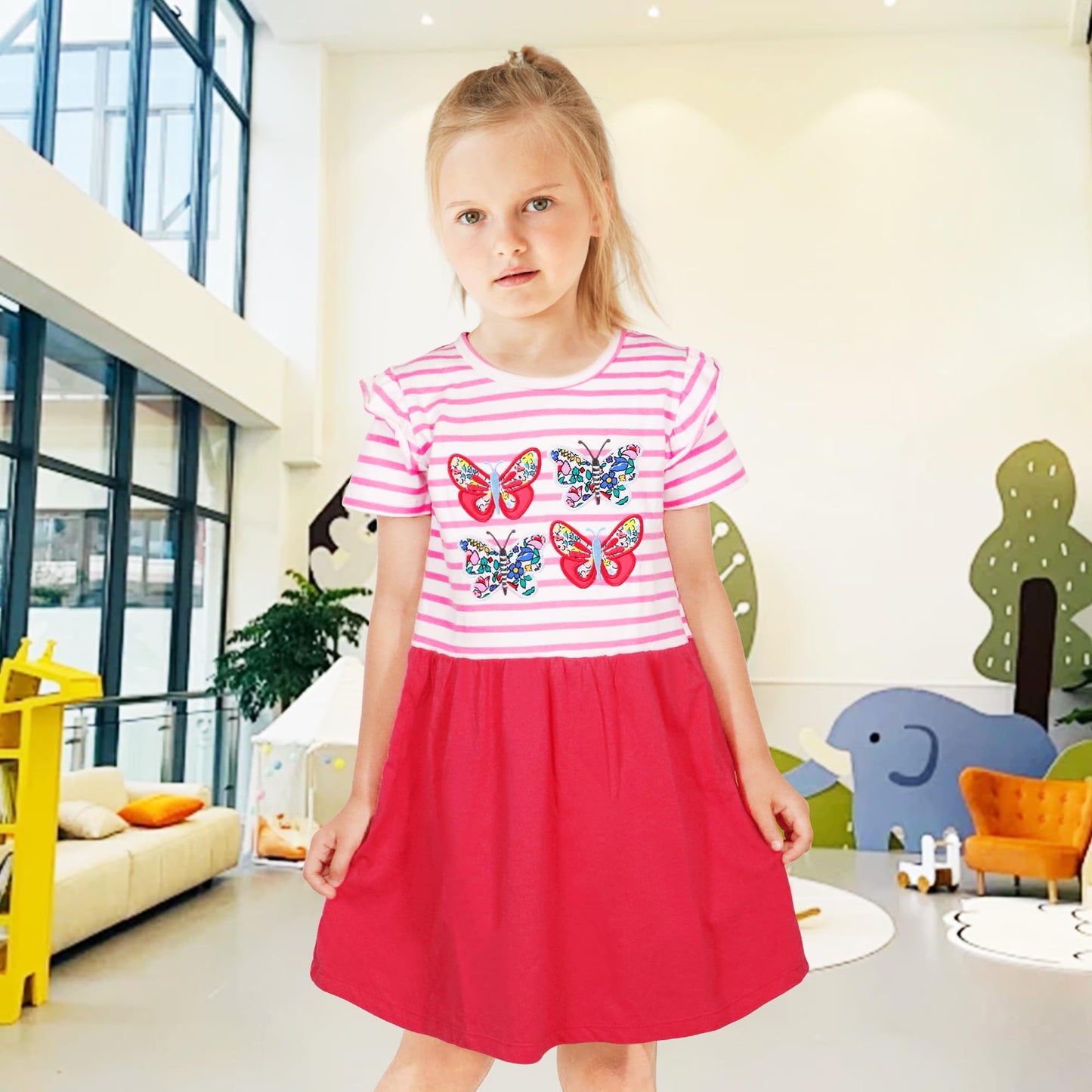 • 💗【Verspieltes Design】 Das sommerkleid mädchen verfügt über rotes gedrucktes Design, klassischer Rundhalsausschnitt ist einfach an- und auszuziehen, mit verspielten kleinen Fliegenärmeln, lassen Sie das Mädchen kühl und bequem in dem heißen Wetter zu bekommen. Die Kindheit von Kindern spannender machen.