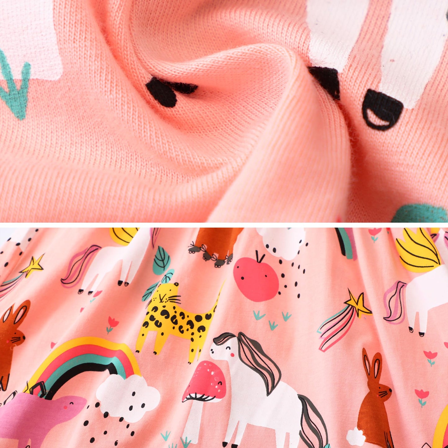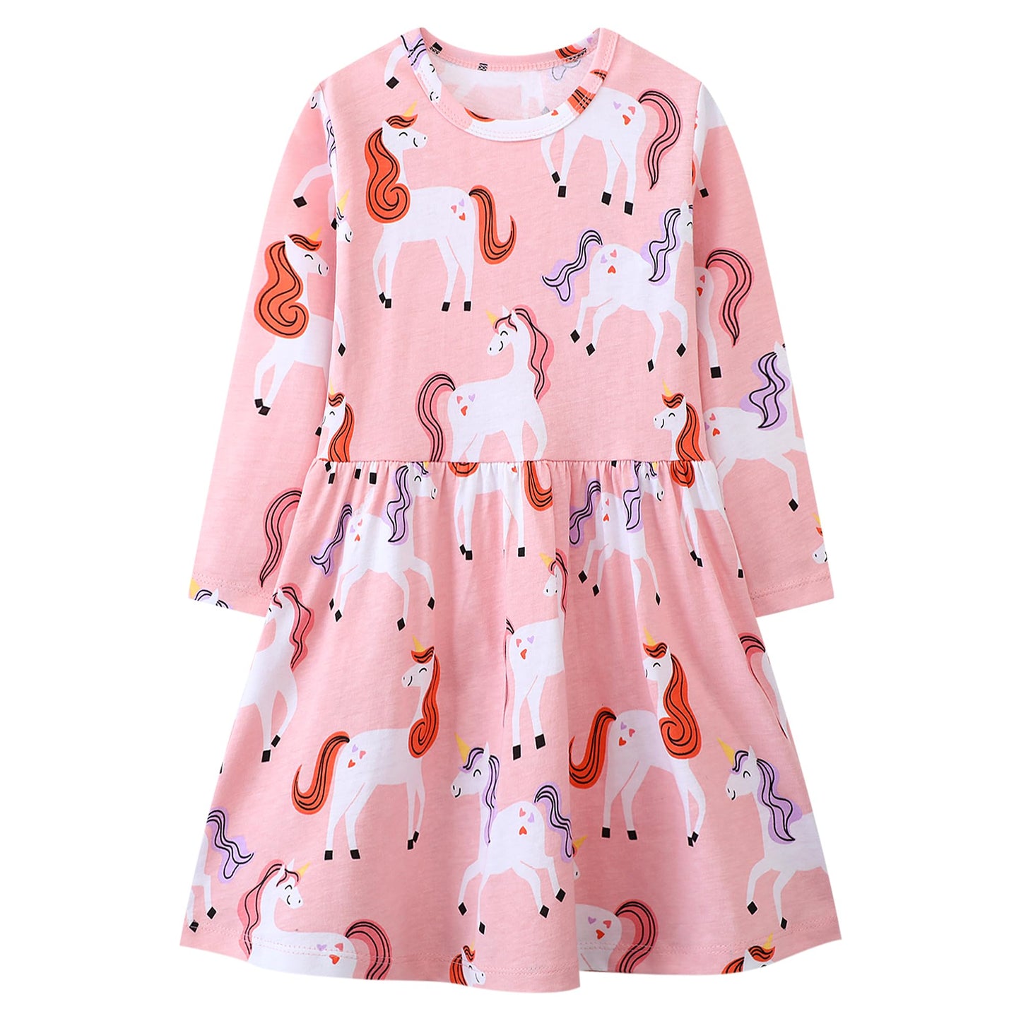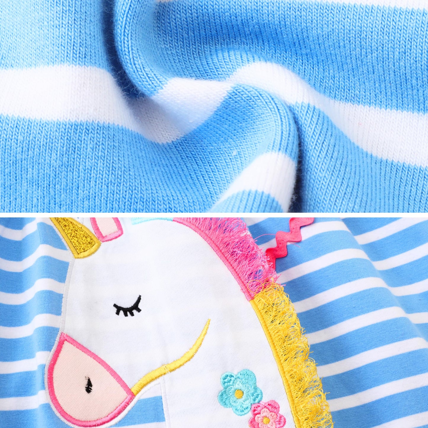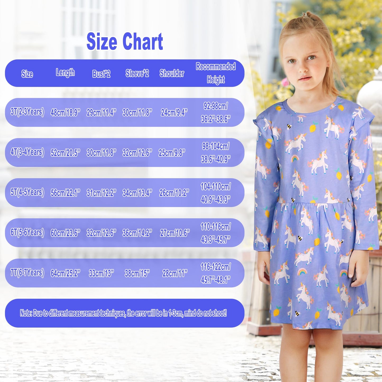 FILOWA Kleider für Mädchen Kinder Einhorn Blumen Stickerei Herz Druck Tier Sommerkleid Cartoon Kinderkleider Embroider Baumwolle Mädchenkleid Lange/Ärmellos Lässige Geburtstag Kinderkleidung,Gr.92-128