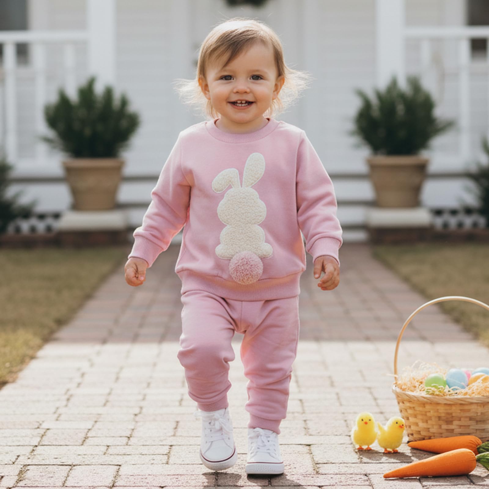 • Die Baby Sweatshirt mit schöne Hasen Muster, Die niedliche Hose mit elastischem Bund.