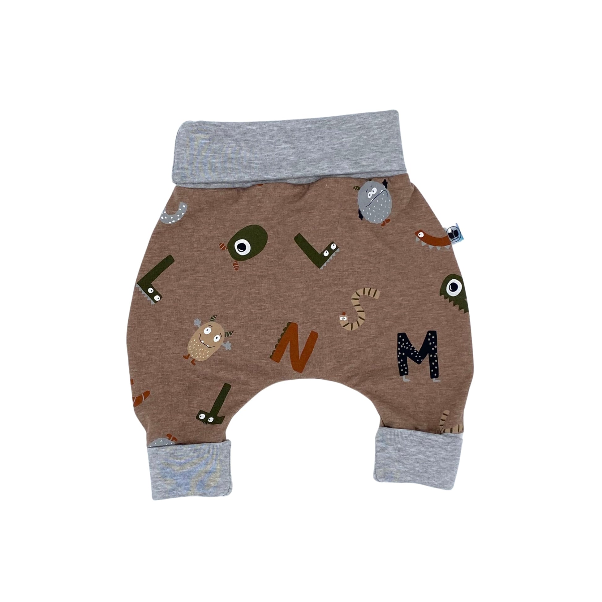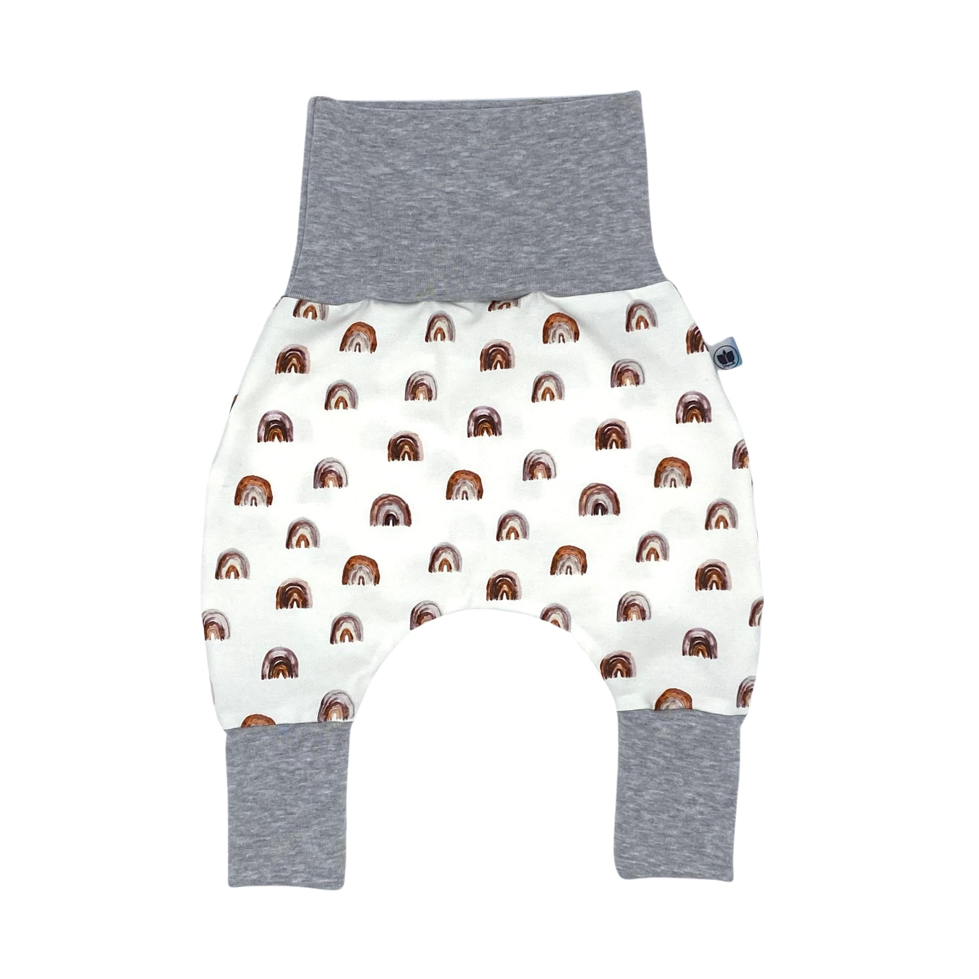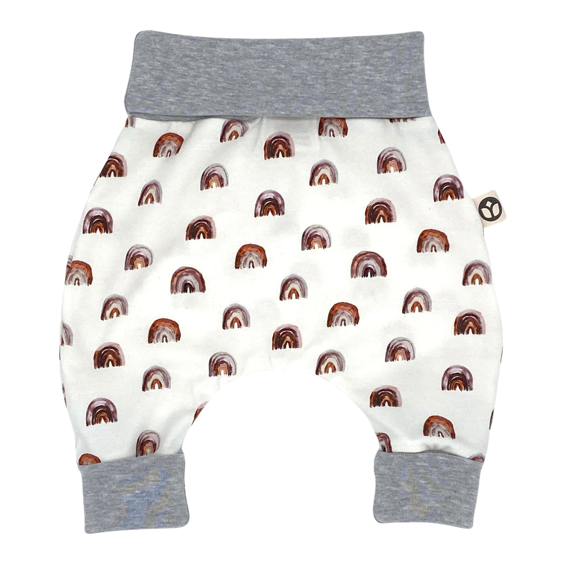 Growing Baby Baggy Trousers Made of Cotton Jersey - Handmade Growing Trousers Baby Trousers for Boys - Sizes 50-74 | 68-86 | 92-104 (Mini Rainbow Brown, 50-74)