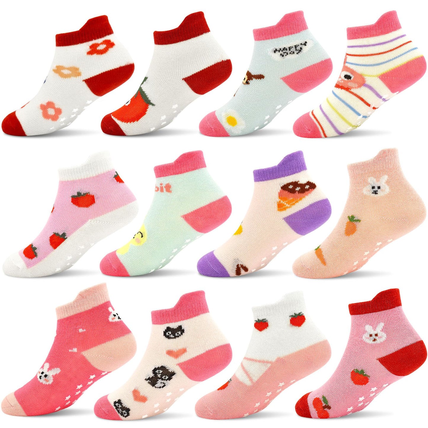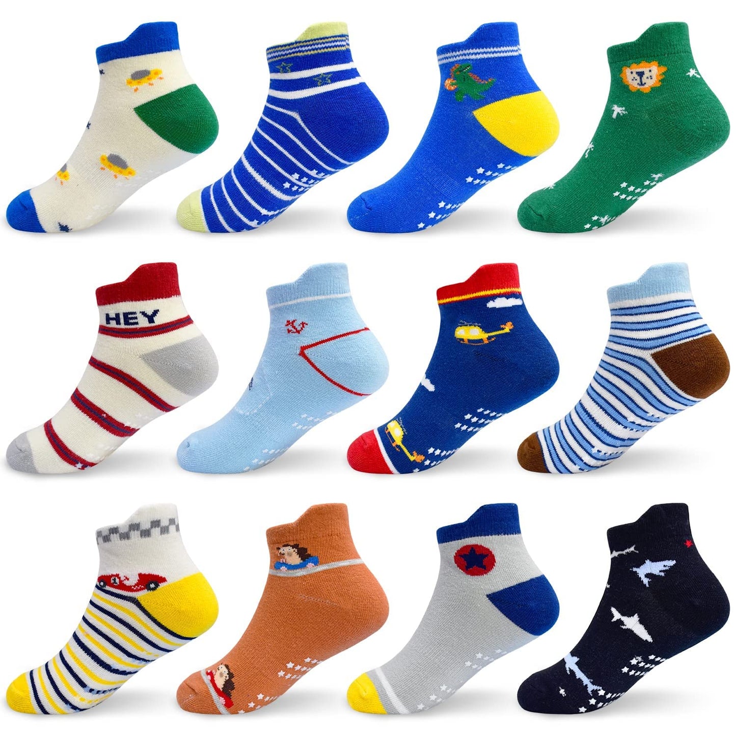 GRPSKCOS Stoppersocken Kinder 12 Paar ABS Socken Rutschfeste Socken Kleinkind Antirutschsocken für 1-7 Jahre Jungen Mädchen