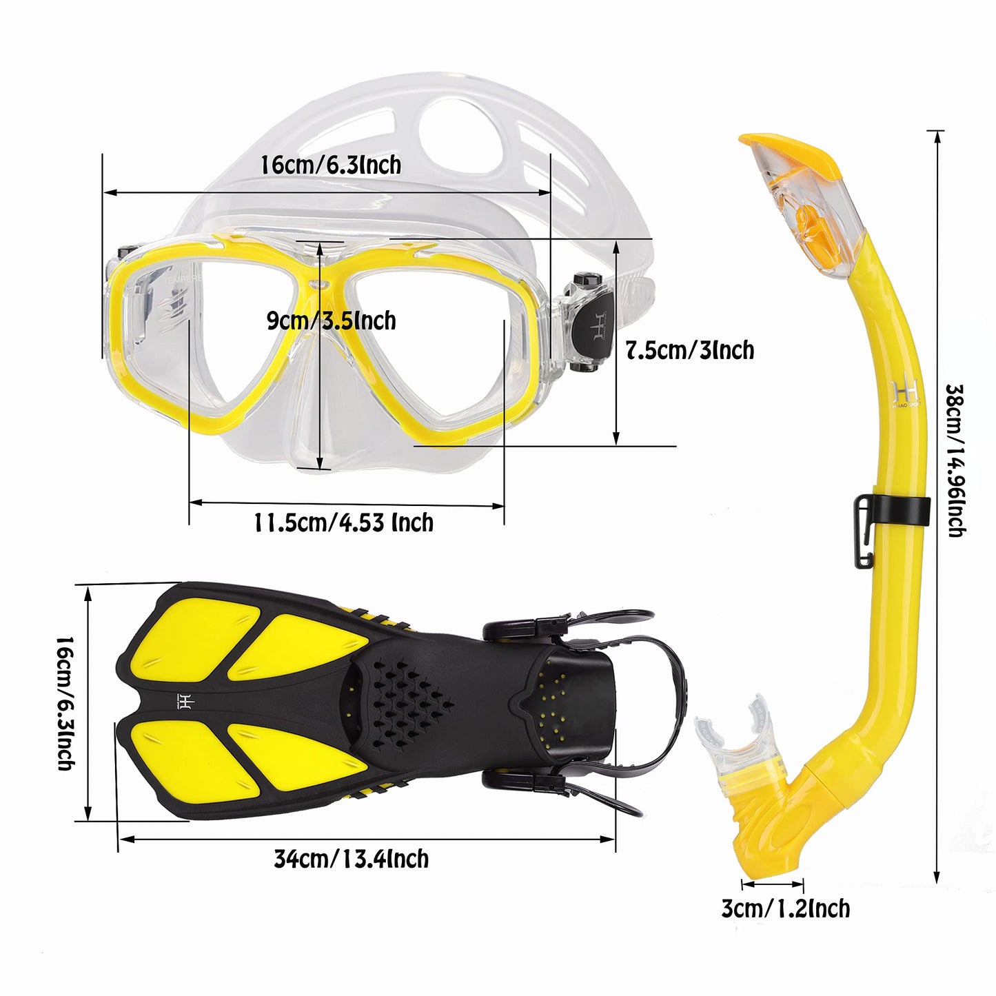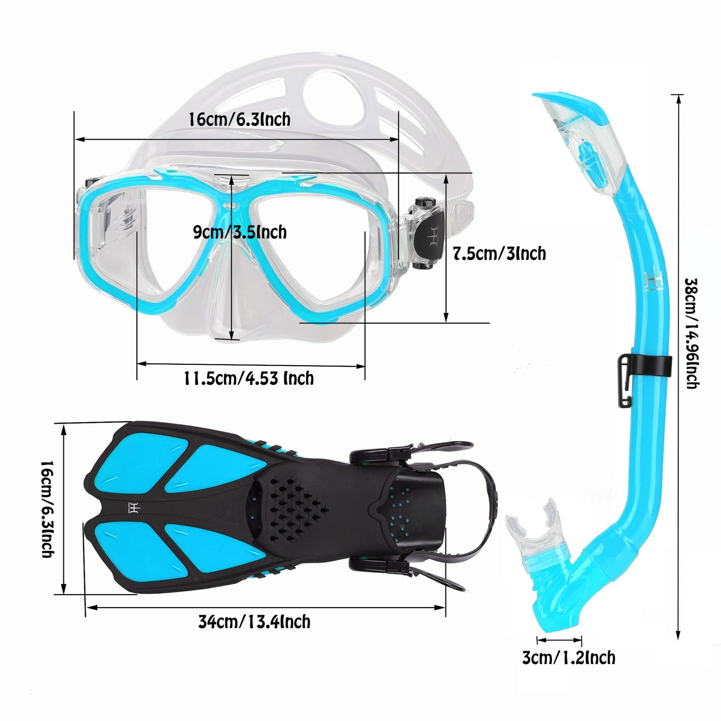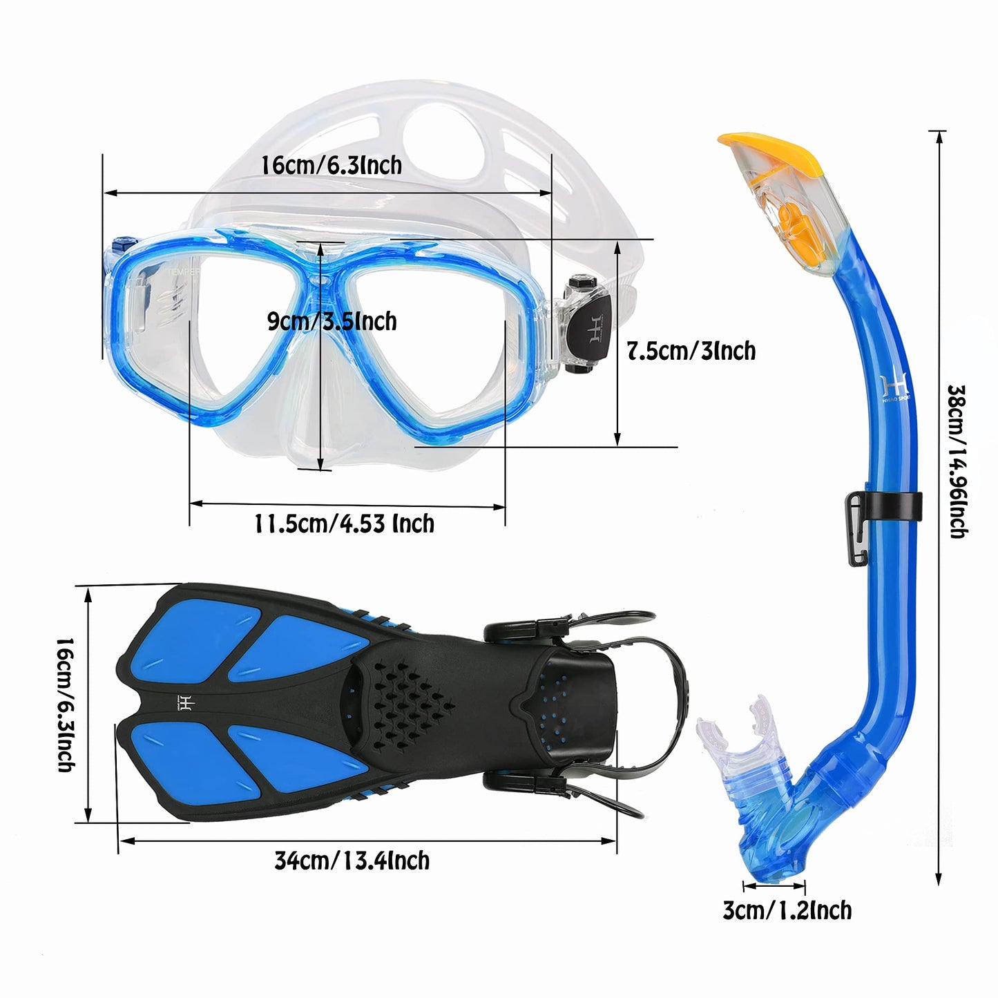 HH HHAO SPORT Children's snorkel set with fins, 180° panorama wide view diving goggles children, adjustable flippers, high-quality diving mask and dry top snorkel