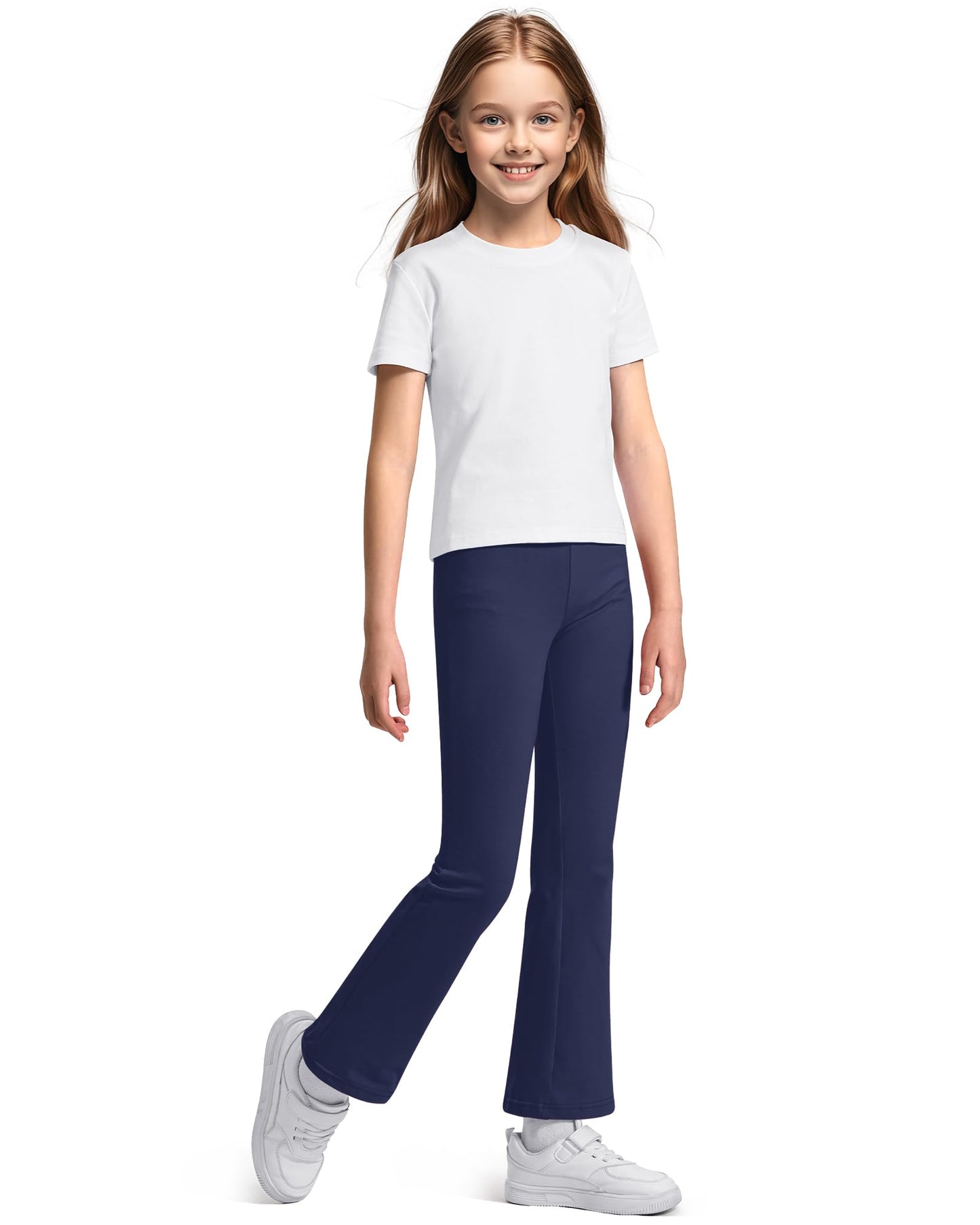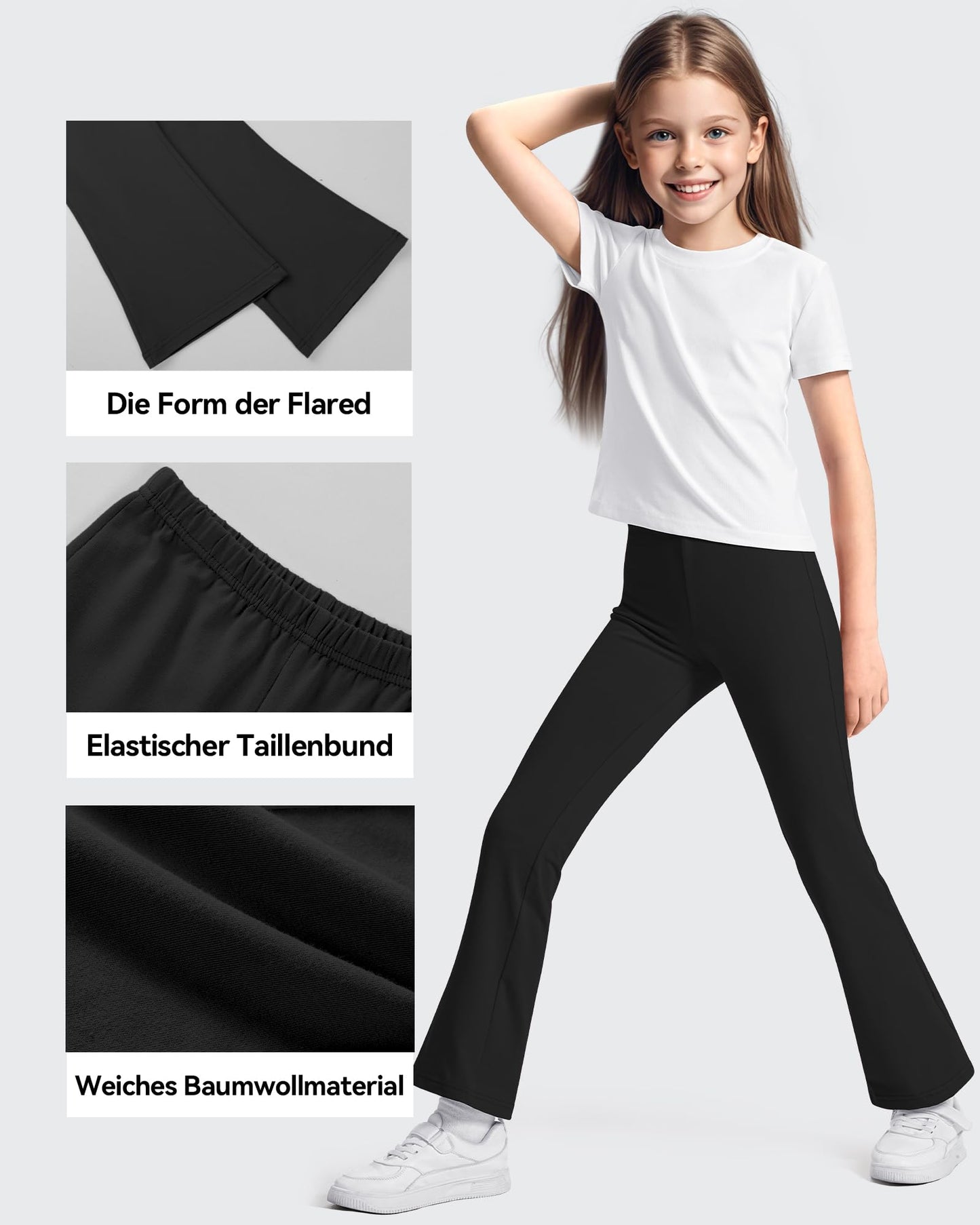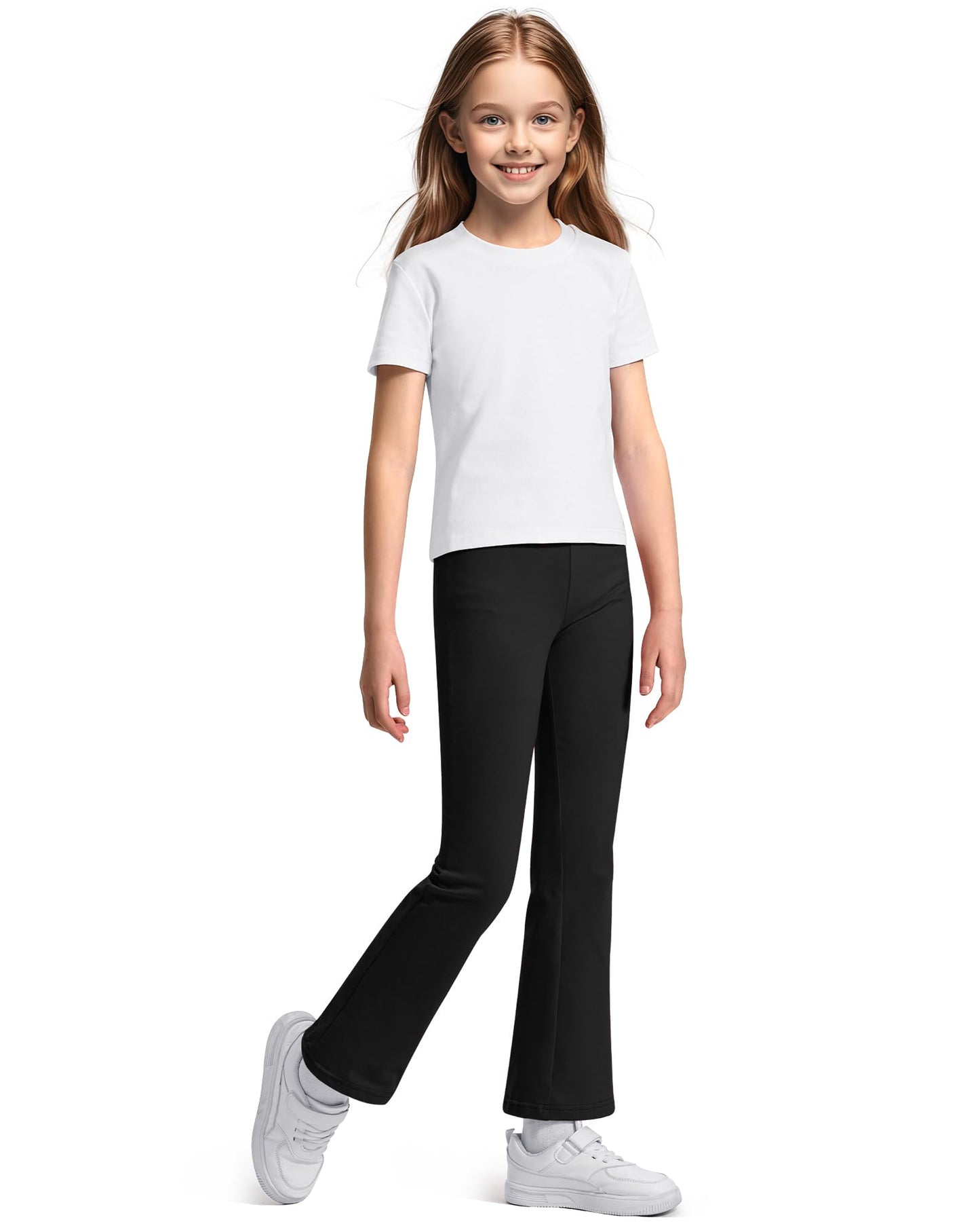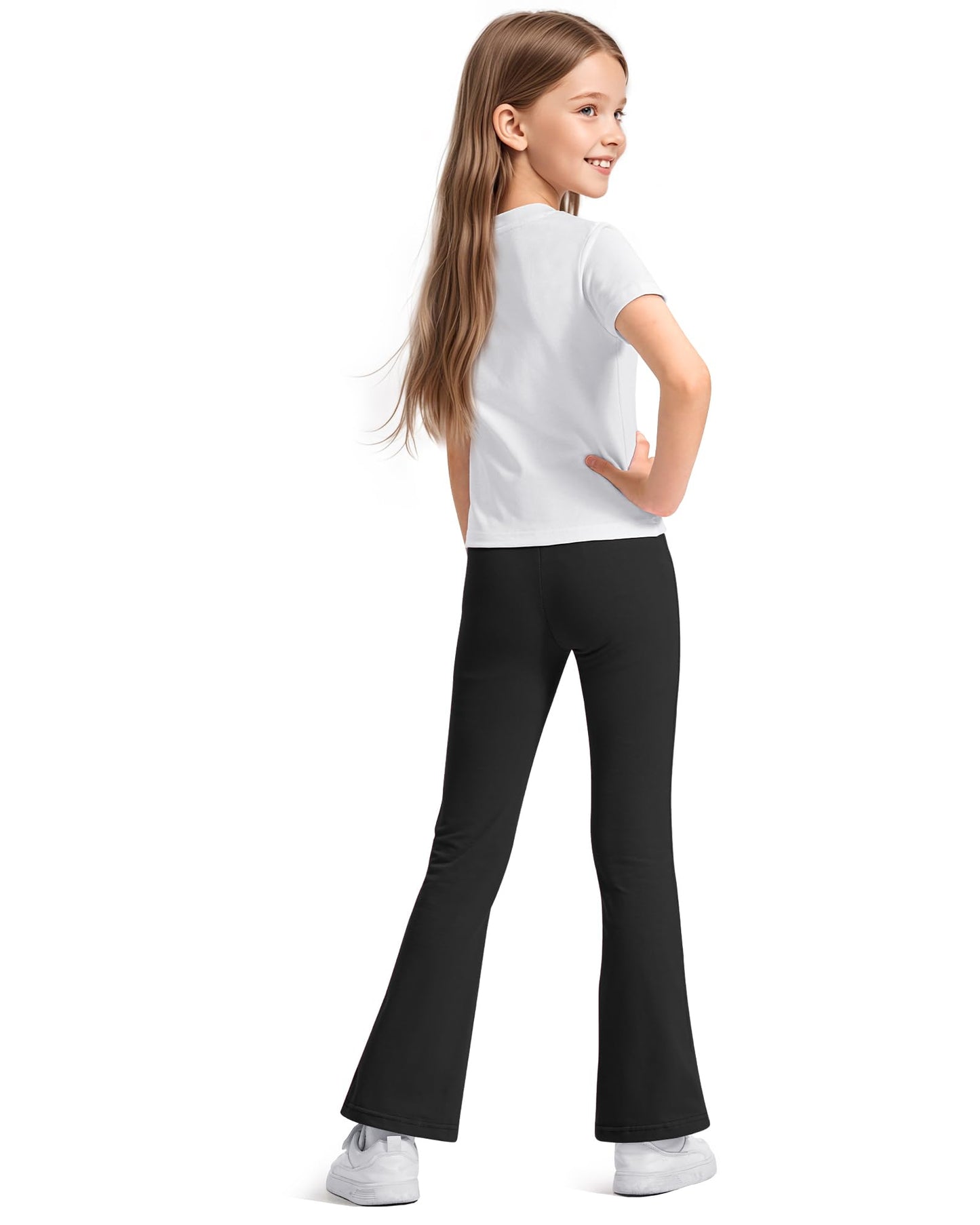 • FASHION SHAPE The shape of the flared is a great advantage of these pants. The leg area, which gradually expands below the knee, refines the leg line perfectly and makes the legs look longer and straight. Whether with boots to show off the elegant charisma, or with flat shoes to create a casual style, these children's flared trousers can do it with ease.