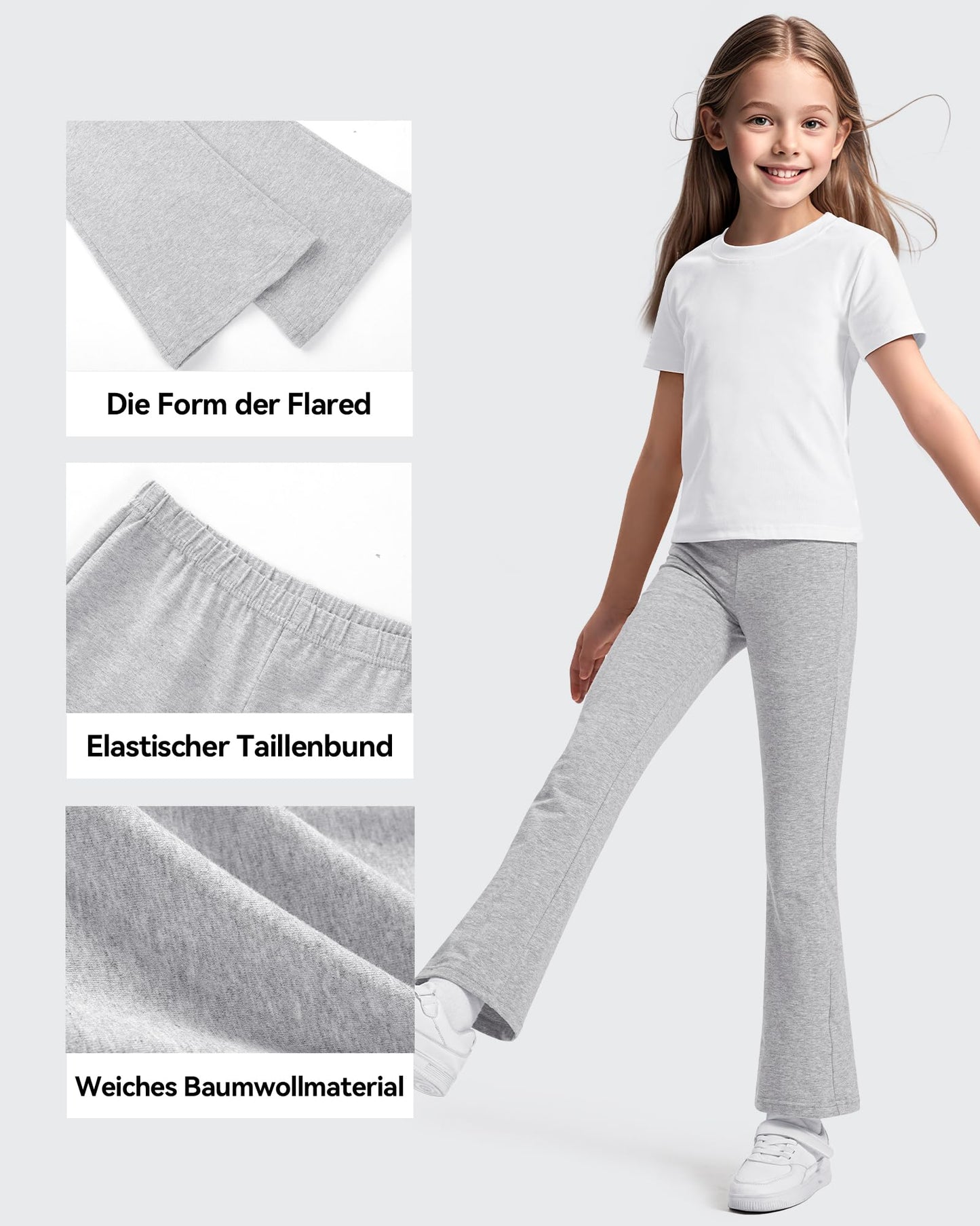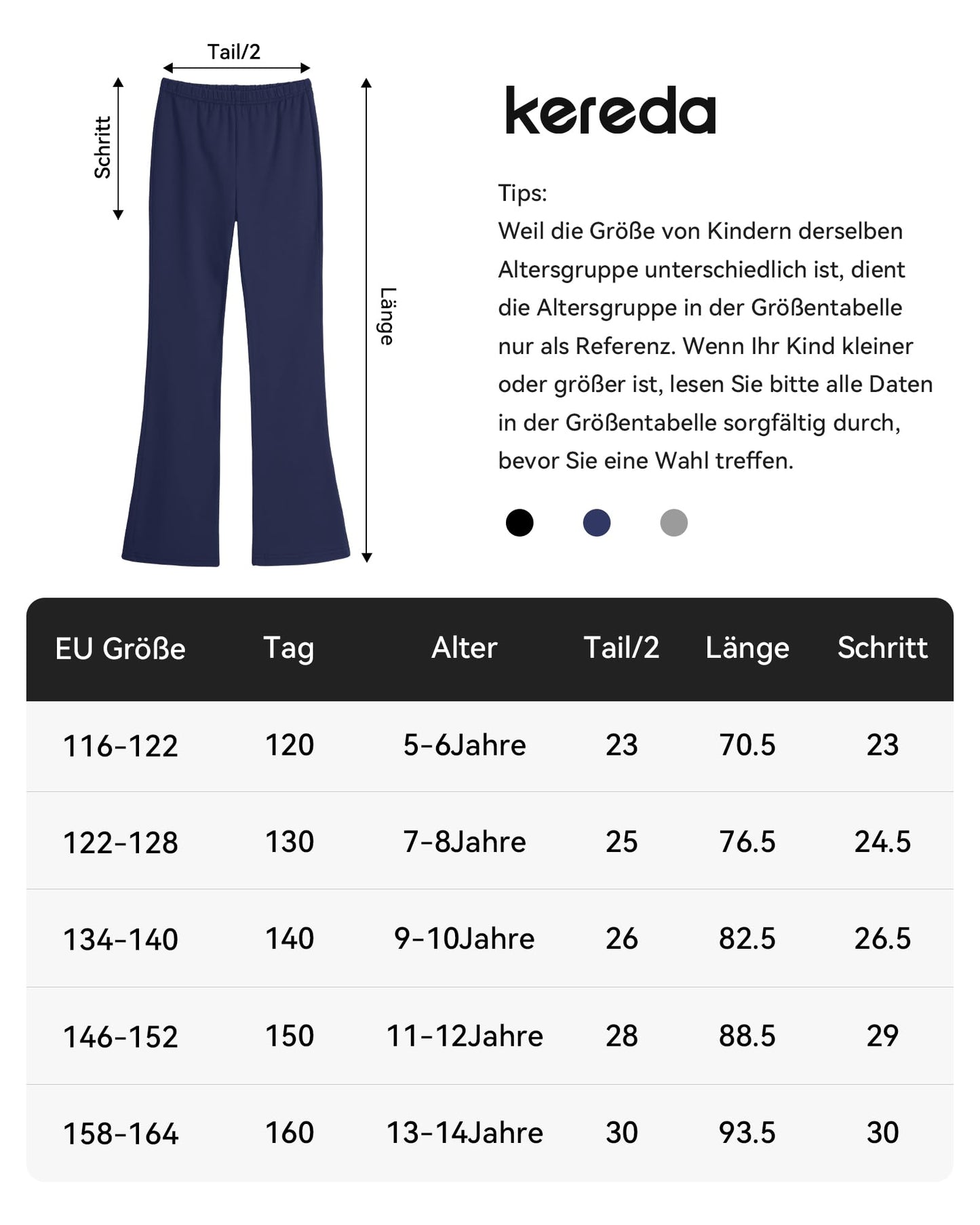 • Variety of colours: flared trousers girls in three classic colours: black, grey and dark blue. Whether with a simple white T-shirt, sweater or coat, black leggings children can easily create a fashionable look. Grey is graceful, good for school or cosy weekends. Dark blue flared girls' leggings look deep and stable and can make girls stand out in the crowd.