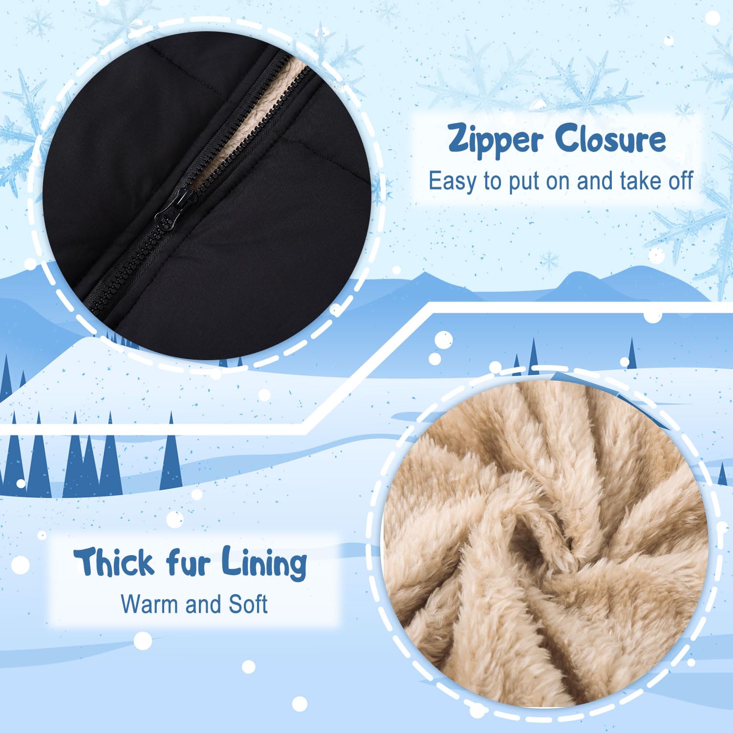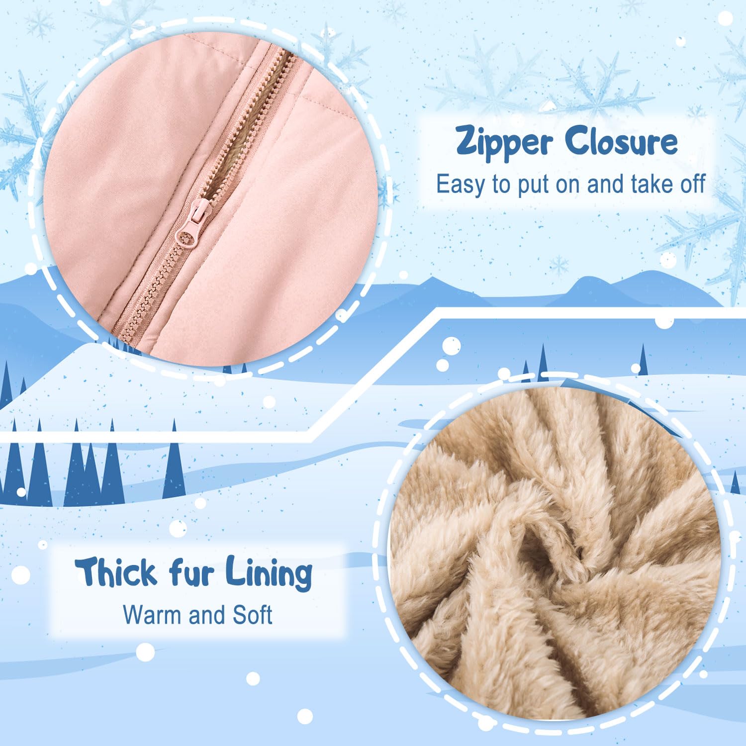 - Fabric: outer material: polyester, lining material: thick plush. We choose the premium material for babies, soft, safe and harmless to baby's skin. Warm and windproof, comfortable for baby clothes.