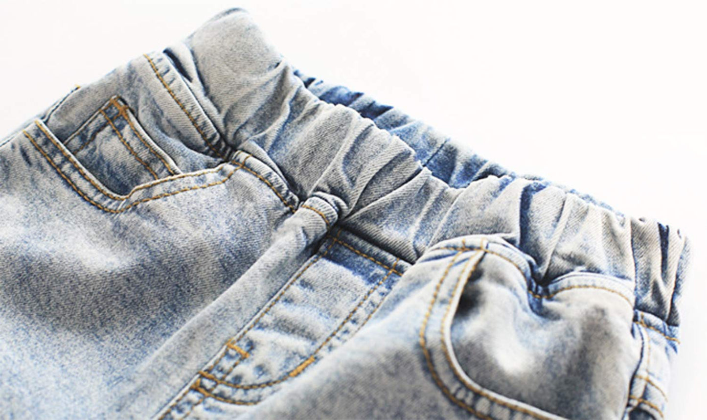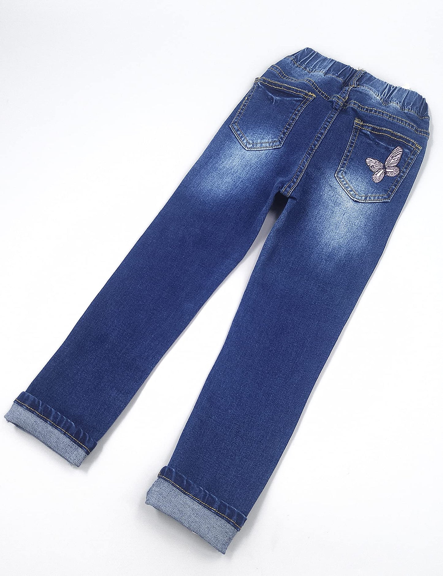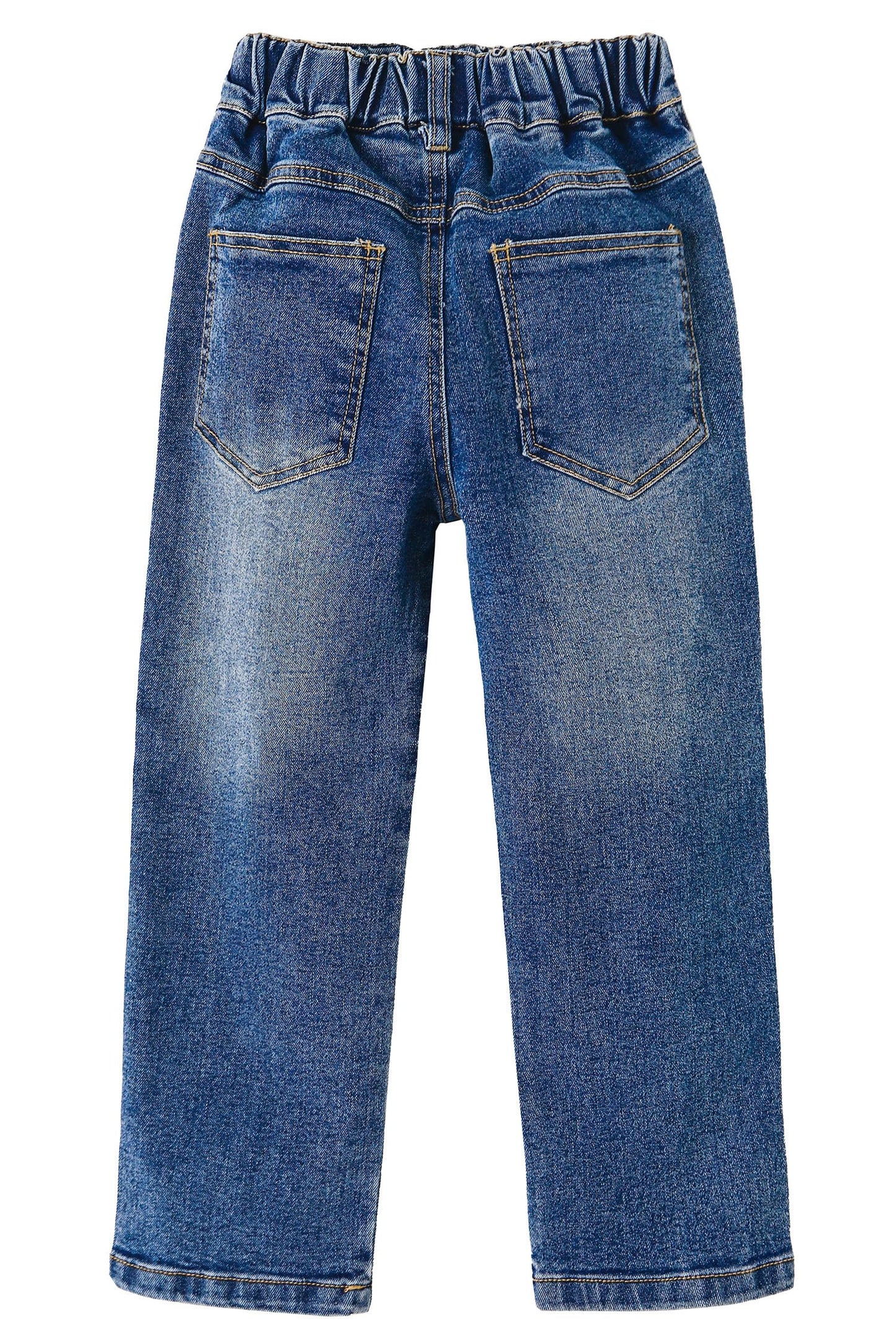 KIDSCOOL SPACE Girls Jeans Split Hem with RAL Edges Elastic Waist in High Elastic Wide Leg Denim Pants