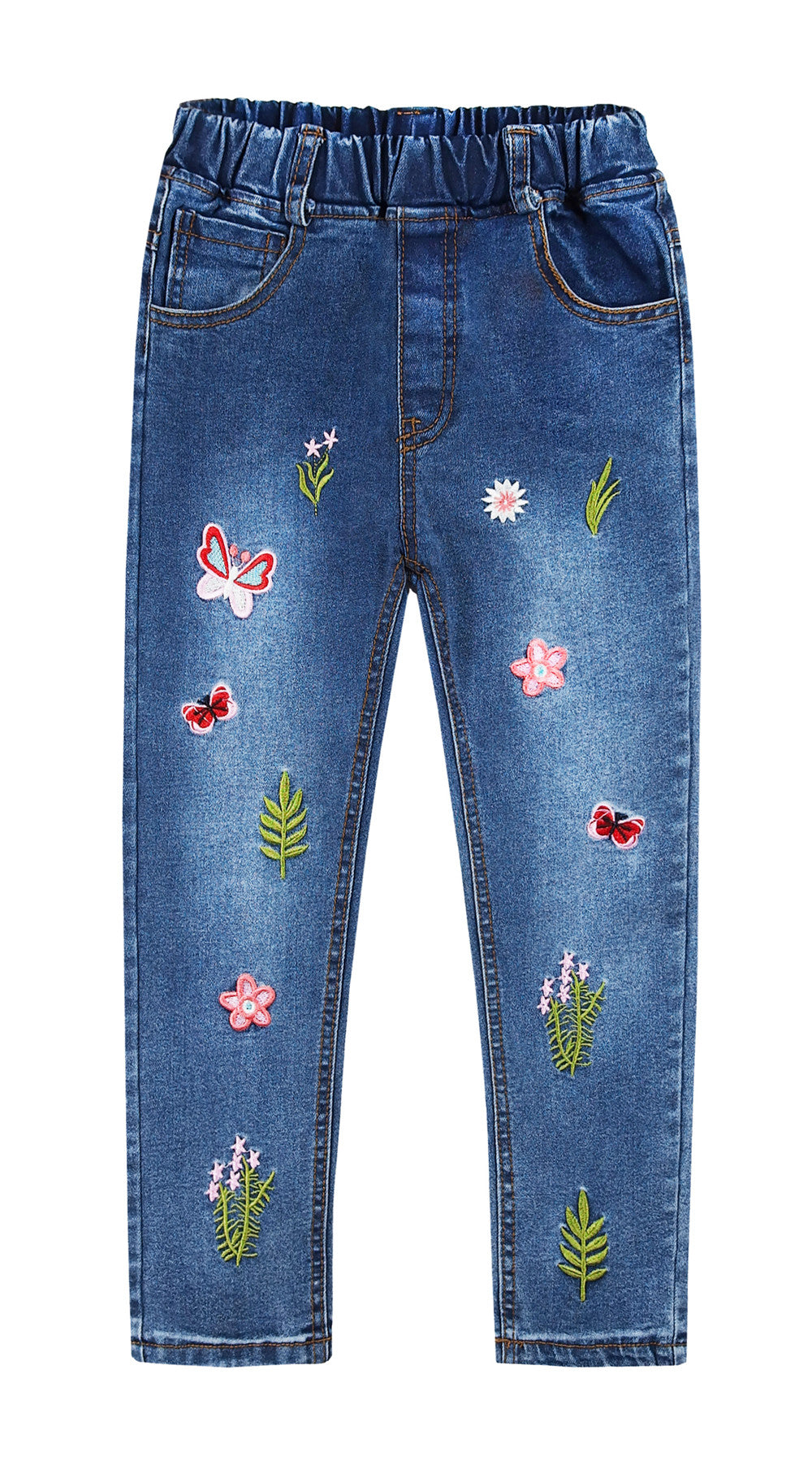 KIDSCOOL SPACE Kleine Mädchen Bestickte Grass Jeanshose