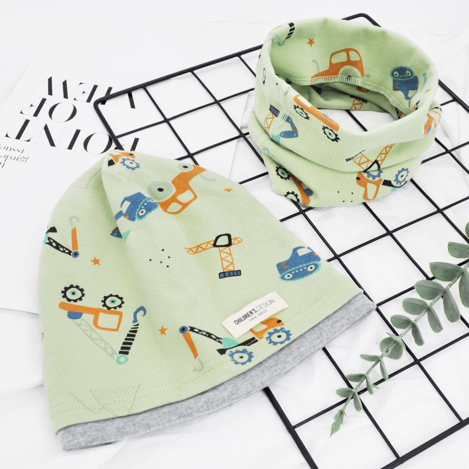 Kinder Beanie Mütze & Loop Schal Set, 95% Baumwolle Mütze Schal Set Mädchen Jungen 2-8 Jahren, Schlauchschal Warme Wintermütze Strickmützen für Herbst Winter Frühling