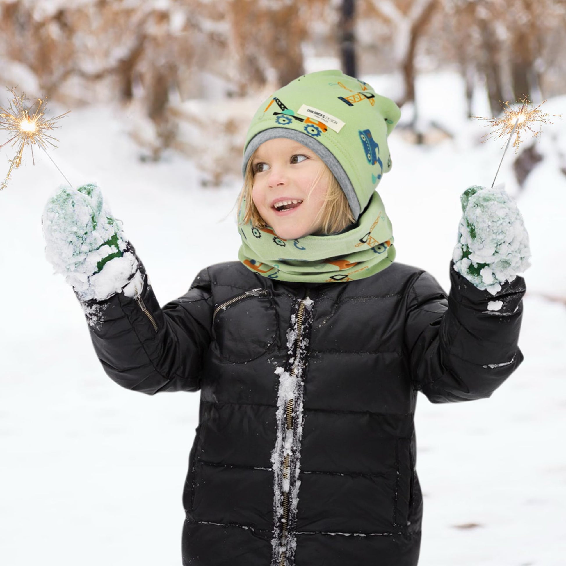 • 【Material】Das Kinder Beanie Mütze & Loop Schal Set besteht aus 95 % Baumwolle, 5 % Elasthan, ist hautfreundlich, atmungsaktiv, dehnbar und nur handwäschebar. Doppellagiges Gewebe bietet starken Schutz vor Kälte und Wind.