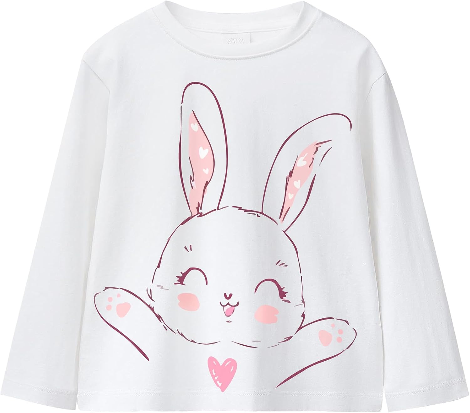 Kinder Hase Langarmshirt für Mädchen Jungen Baumwolle Rundhals Langarm Shirt Ostergeschenke Cartoon Bunny Oberteile Tops 2-7 Jahre
