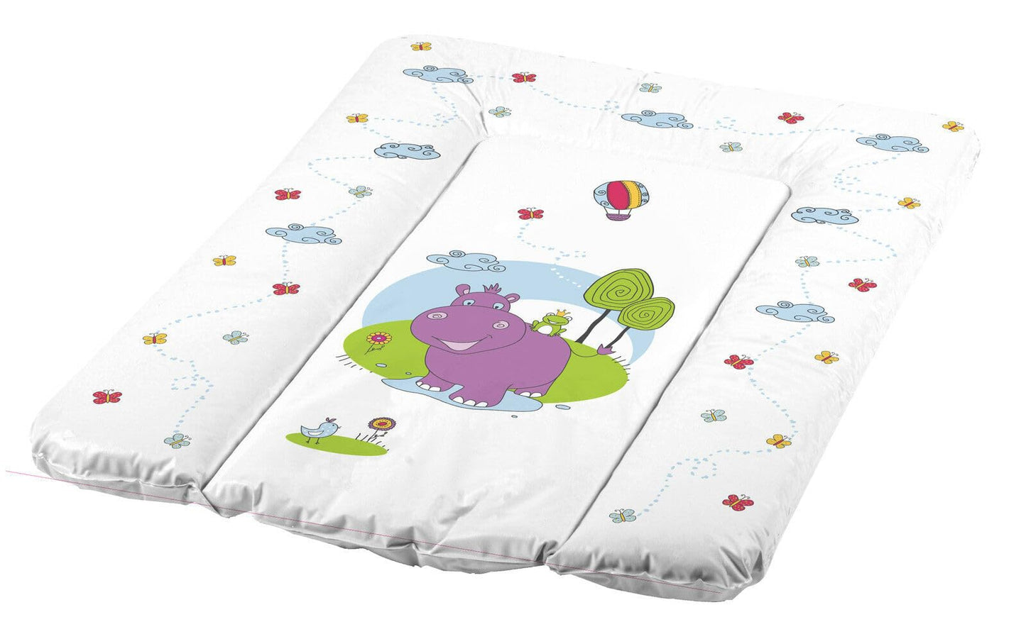 KiNDERWELT Premium Wickelauflage, wasserdichte Wickelunterlage mit Hippo, 50x70 cm, abwaschbare Wickeltischauflage in Weiß, leicht zu tragen, erhöhter Liegekomfort
