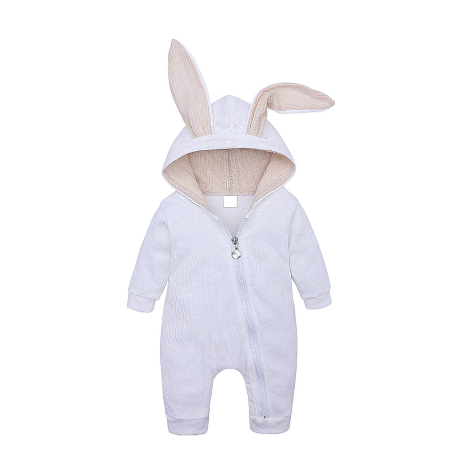 Unisex-Baby-Strampler aus Baumwolle mit Hasenohren und langen Ärmeln, Reißverschluss, Hasen-Schlafanzug für Babys von 0–18 Monaten
