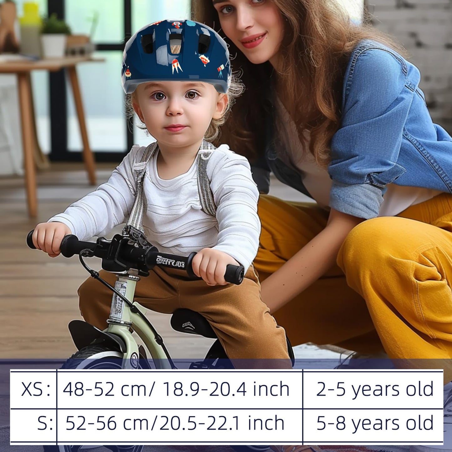 - 🚴AVAILABLE SIZE: For a perfect fit, measure the circumference of the head from the middle of the forehead (or place the tape measure horizontally around the head, about 1.5 cm above the ears) to ensure the correct size is selected. XS suitable for 48-52 cm, recommended age is 2-5 years old. S - suitable for 52-56 cm, recommended age is 5-8 years old. We sincerely recommend you measure your child's head circumference to choose the right size.