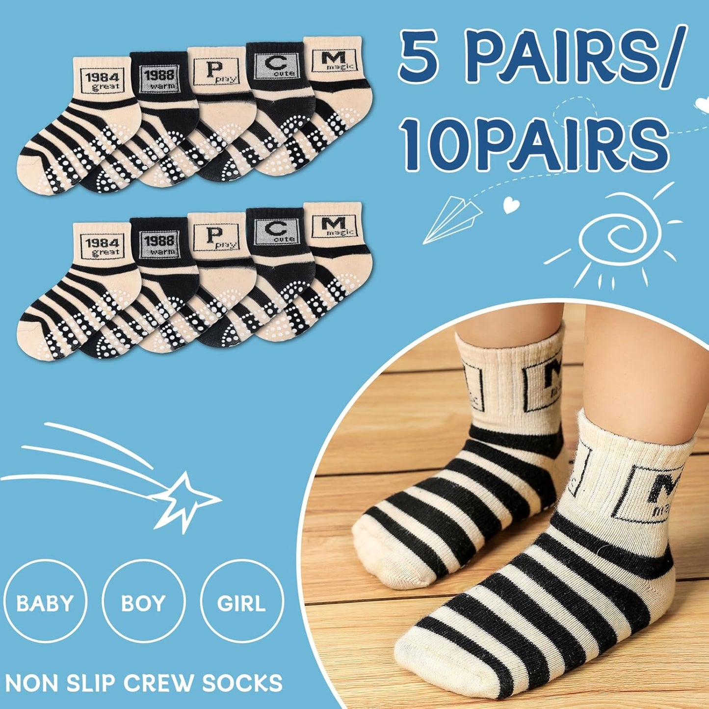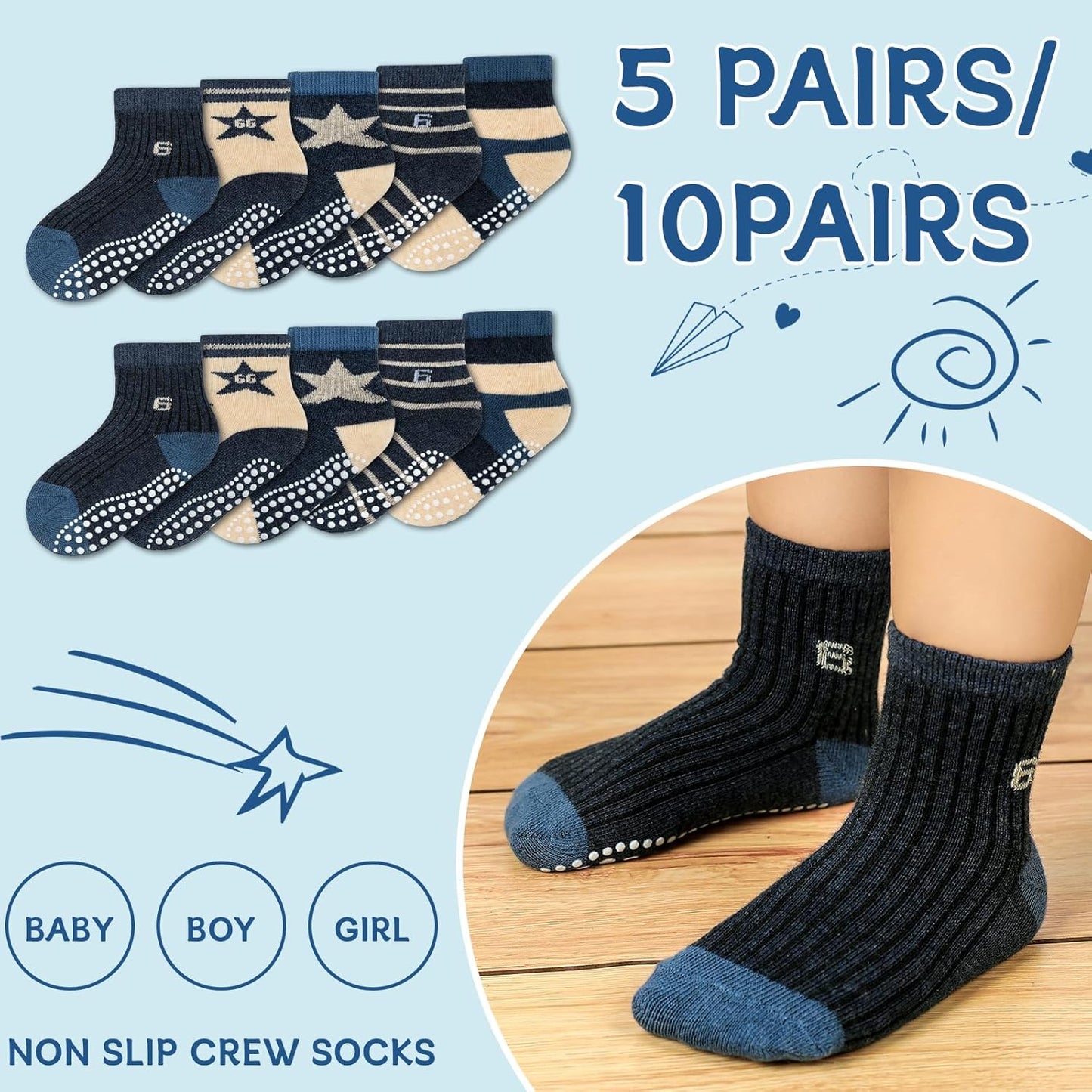 KOWAYI Stoppersocken Kinder 5/10 Paar ABS Rutschsocken Kinder Jungen, Mädchen, Baby Antirutschsocken 1-7 Jahre Grip Socken