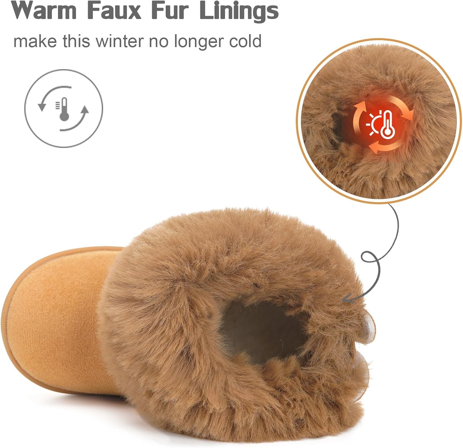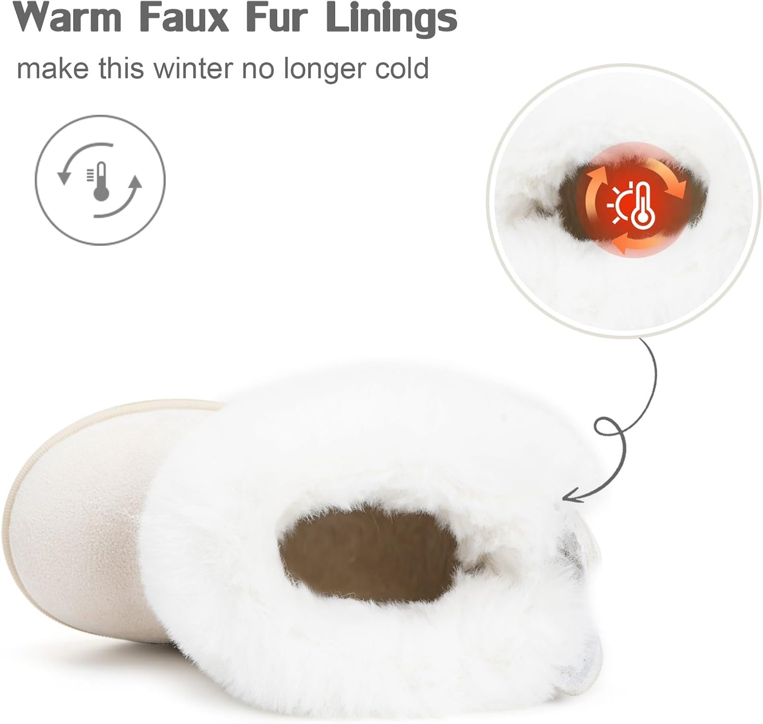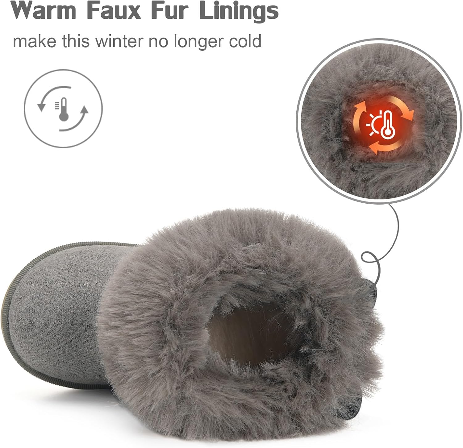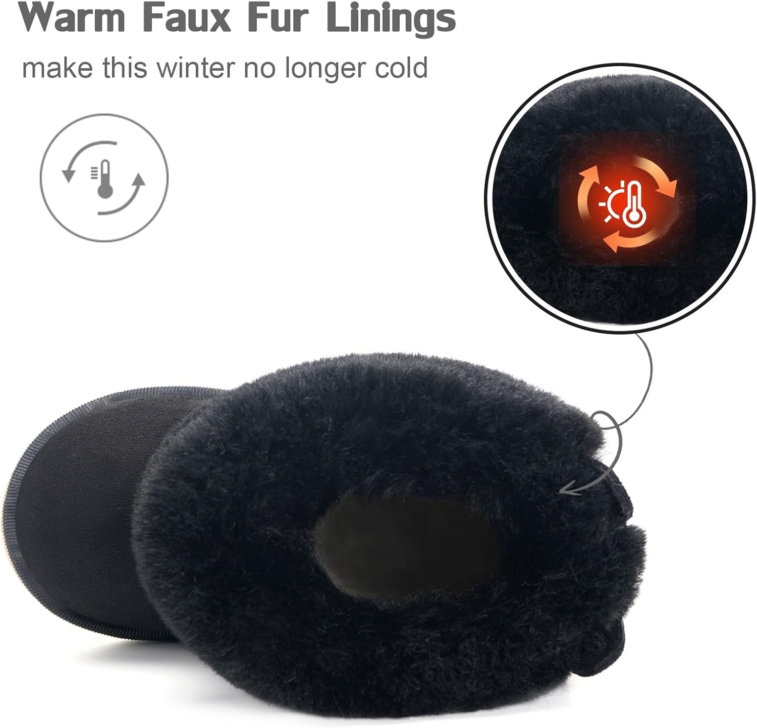 2. The snow boots are lined with fine and long plush, which is soft and skin-friendly, delicate and comfortable and has excellent heat retention.