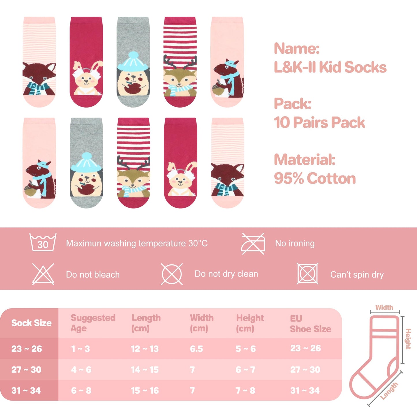 L&K-II 10er Kindersocken Mädchen Sneakersocken Baumwolle Mehrfarbig bunt Frühling Herbst 2823