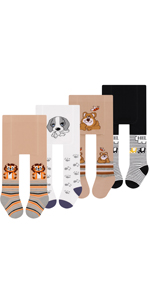 L&K-II Pack of 4 Baby Tights for Baby Boys with Dog Lions Monkeys Bears and Car Motif 2760