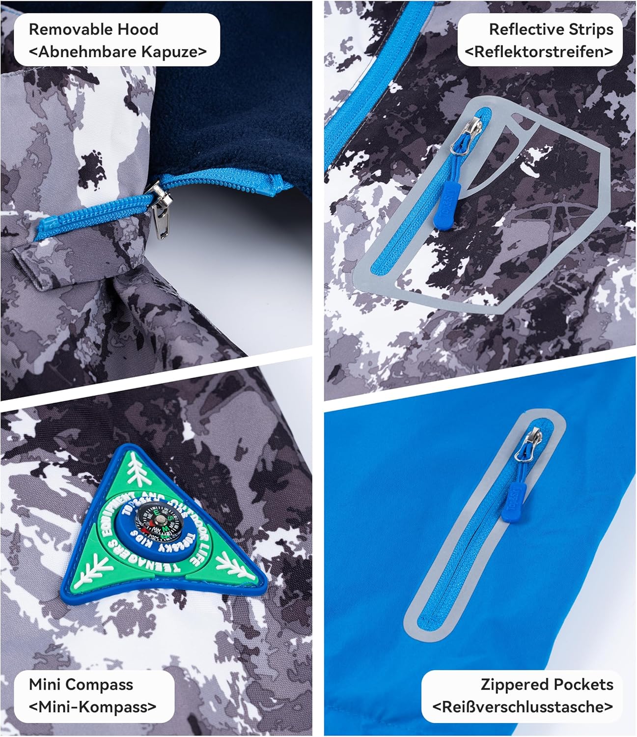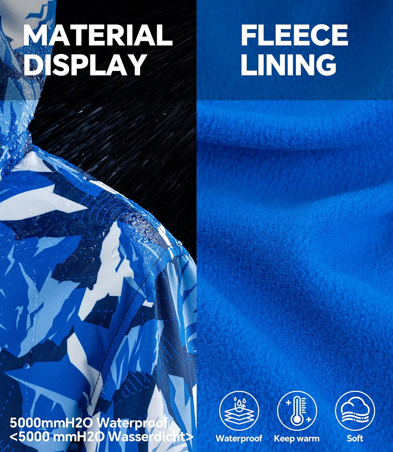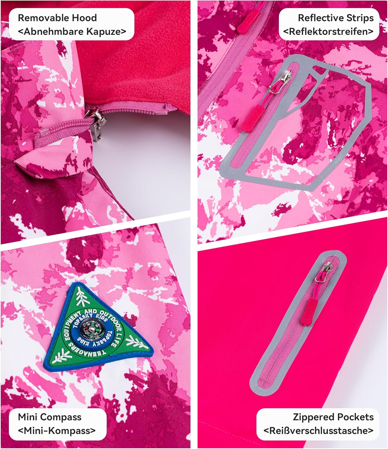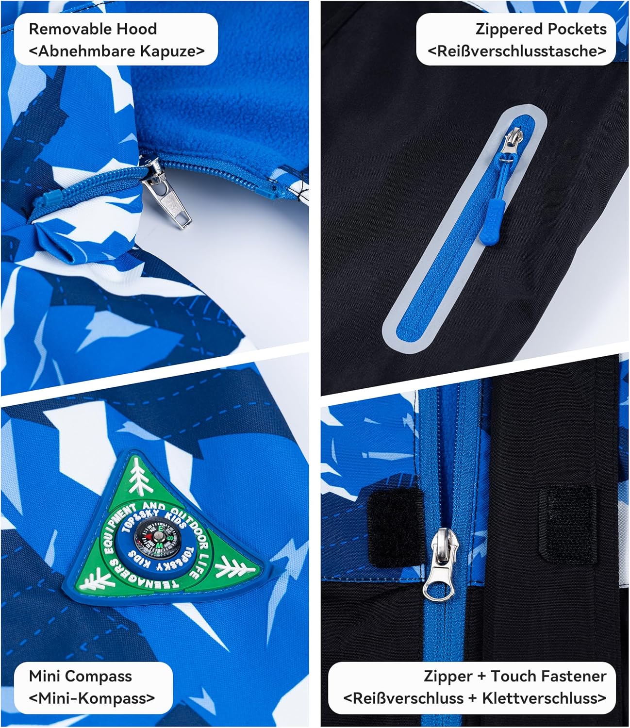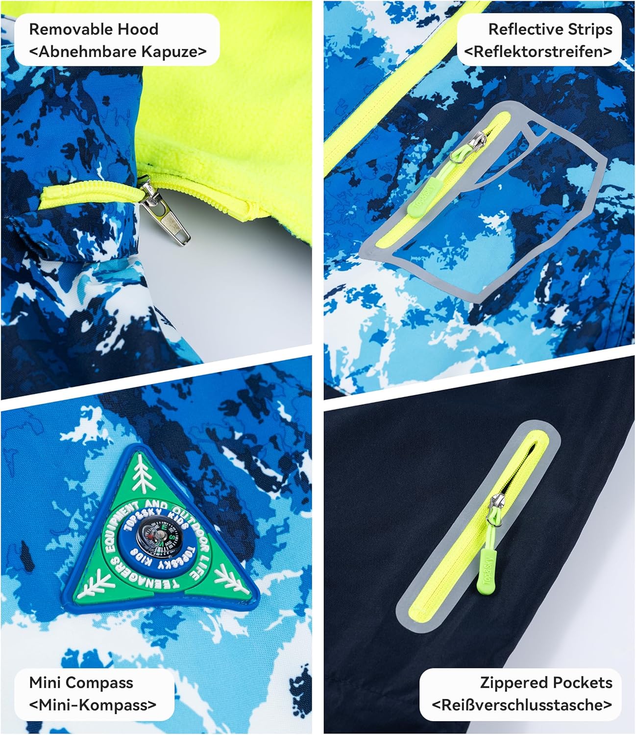 • The waterproof jacket for toddlers is fleece lined for windy days in spring and autumn.