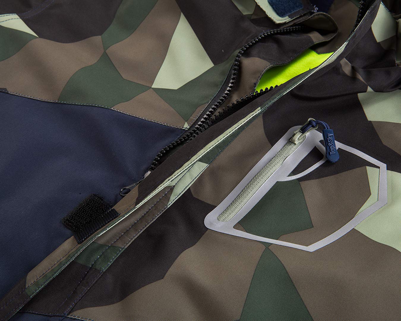 • Die Jacke für jungen im alter von 3 bis 14 Jahre geeignet und verfügt über ein tarnmuster und ein patchwork-design.