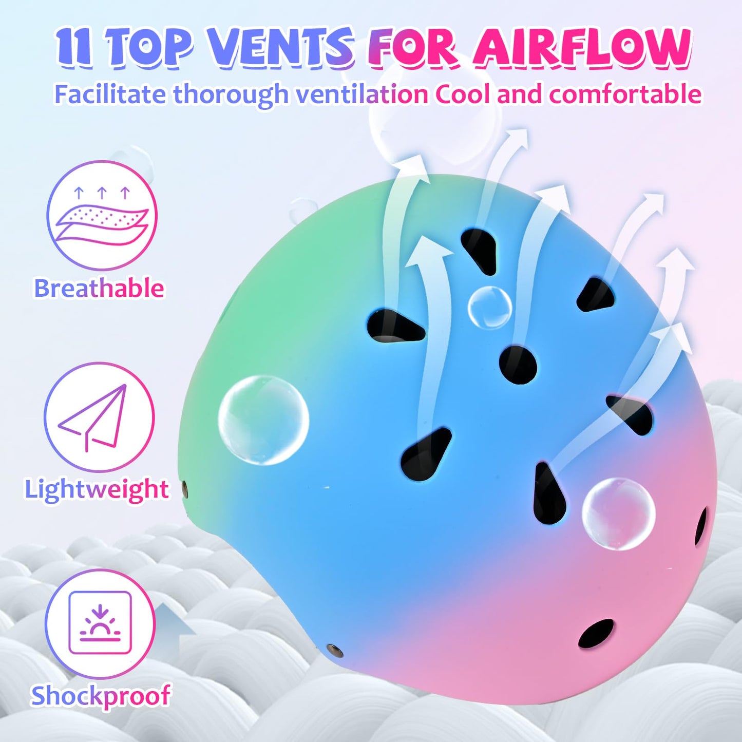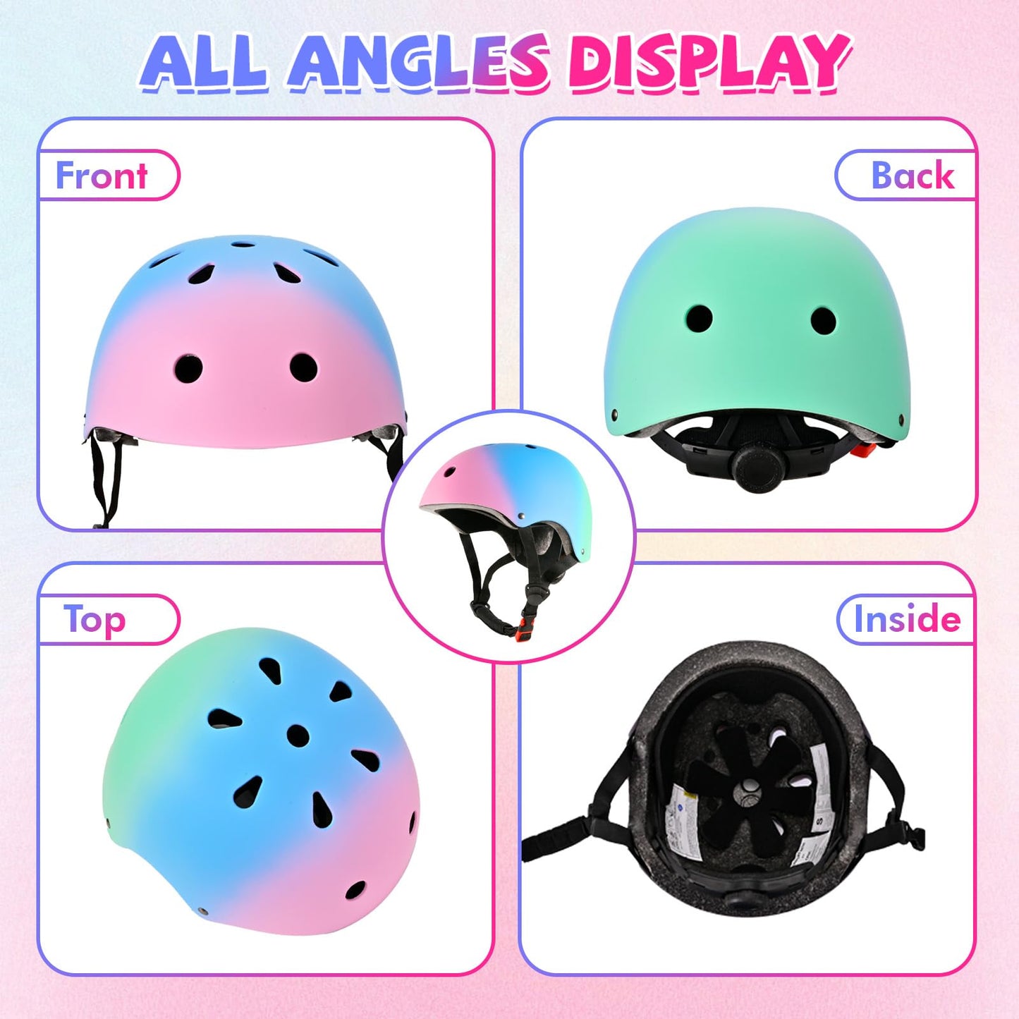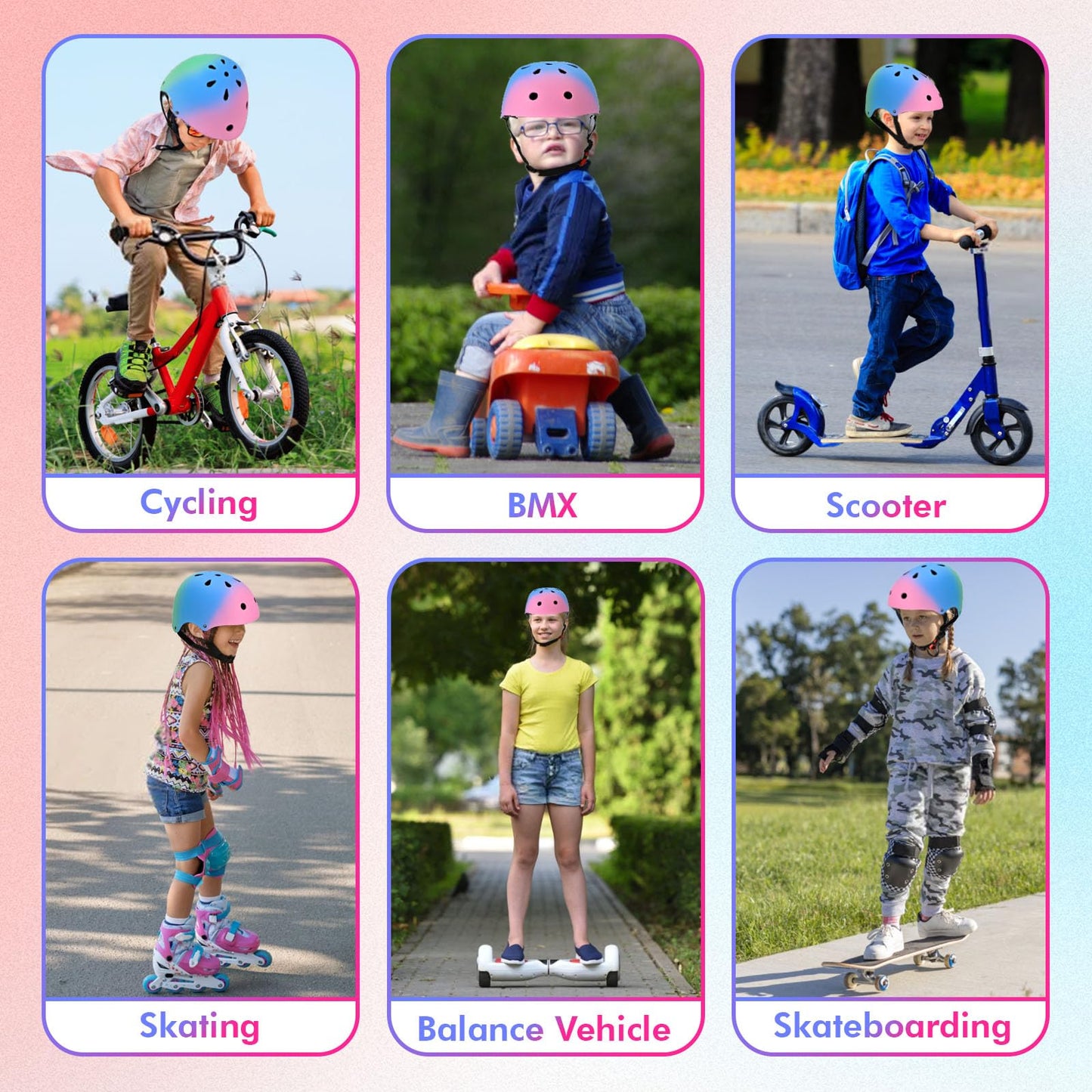 LOKJIJI Verstellbarer Kinder Fahrradhelm Skaterhelm für Mädchen Jungen Kinder Jugend, Farbe Farbverlauf Kinder Schutzhelme für Multi-Sportarten Fahrrad Skateboard Skaten