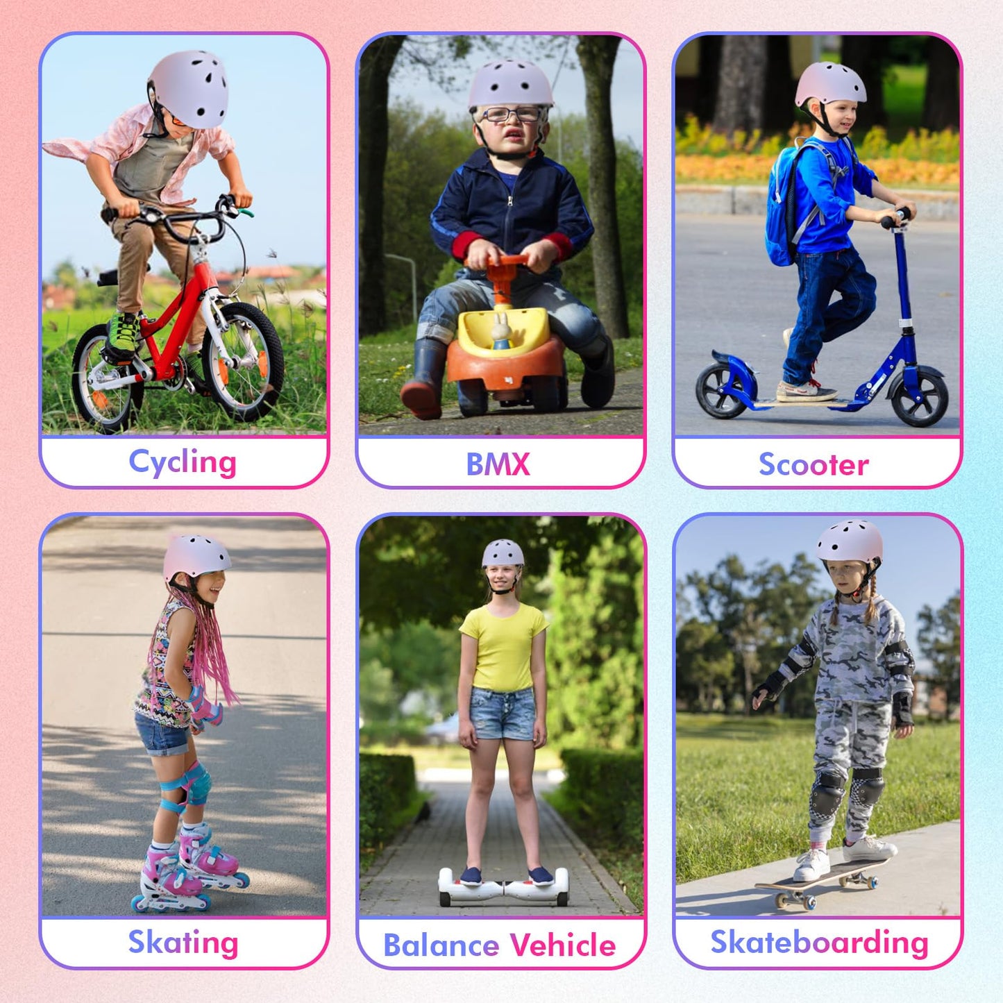 • ✔Perfekte Wahl für Kinder: Diese Fahrradhelme sind speziell dafür konzipiert, den Kopf von Kindern/Kleinkindern bei verschiedenen Sportarten zu schützen. Sie können als Kopfschutz bei vielen verschiedenen Sportarten verwendet werden, z. B. beim Radfahren, Rollschuhlaufen, Skateboarden, Rafting, Head-Turning usw. Sie sind das perfekte Geschenk für Ihre Kinder!