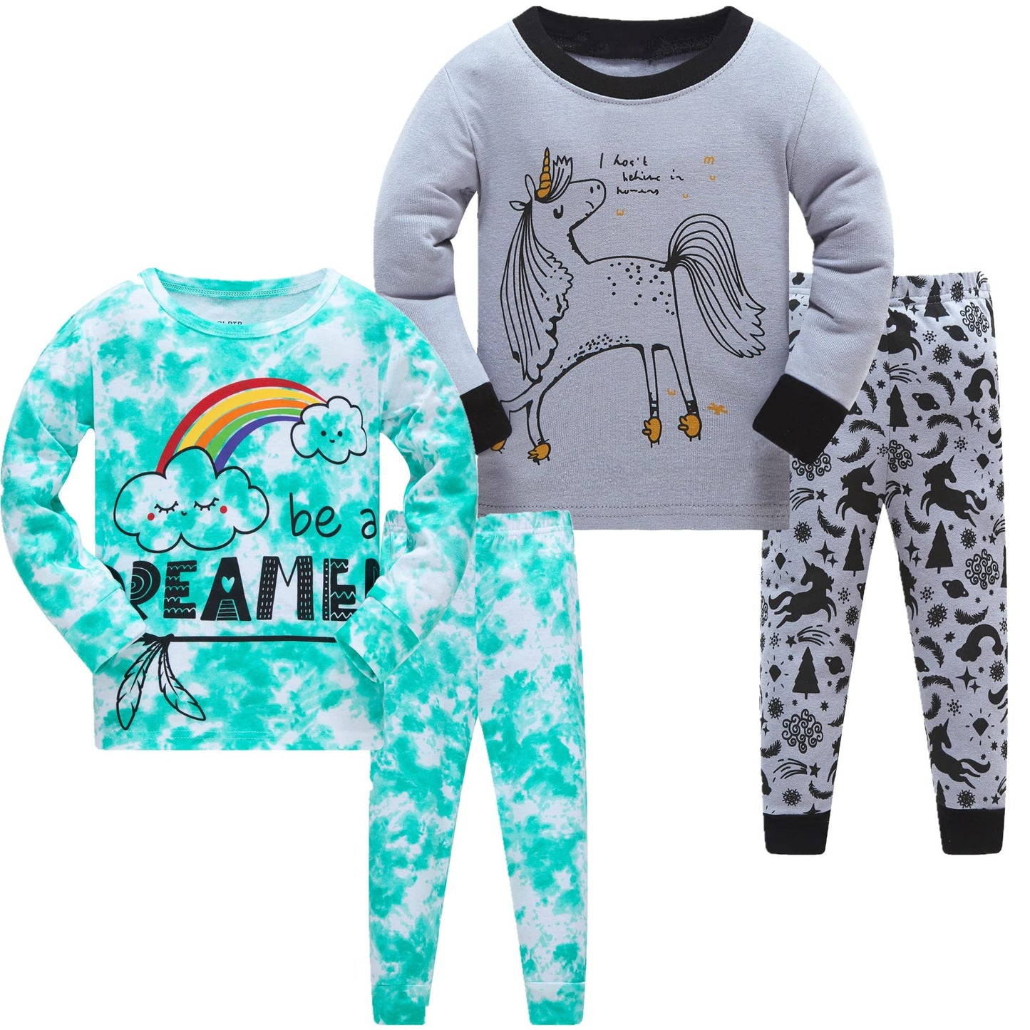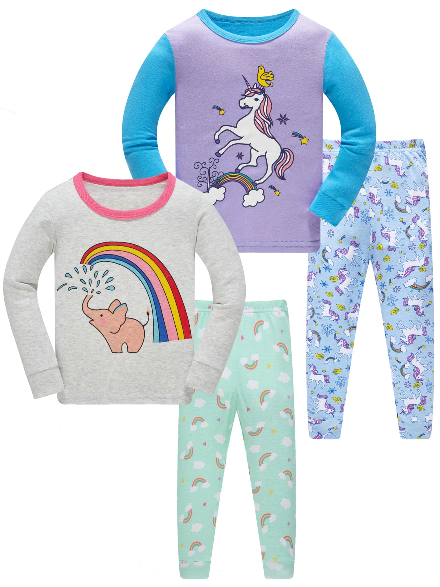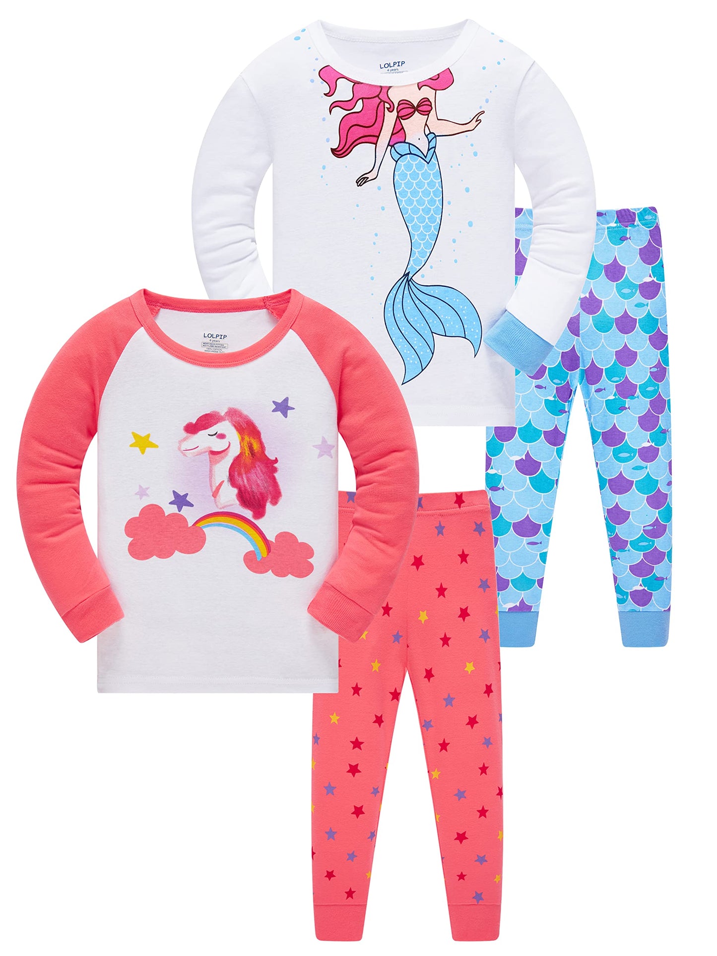 LOLPIP Mädchen Pyjamas 100% Baumwolle Schlafanzug für Kinder Schlafkleidung Langarm 4 Stück Set 1-12 Jahre