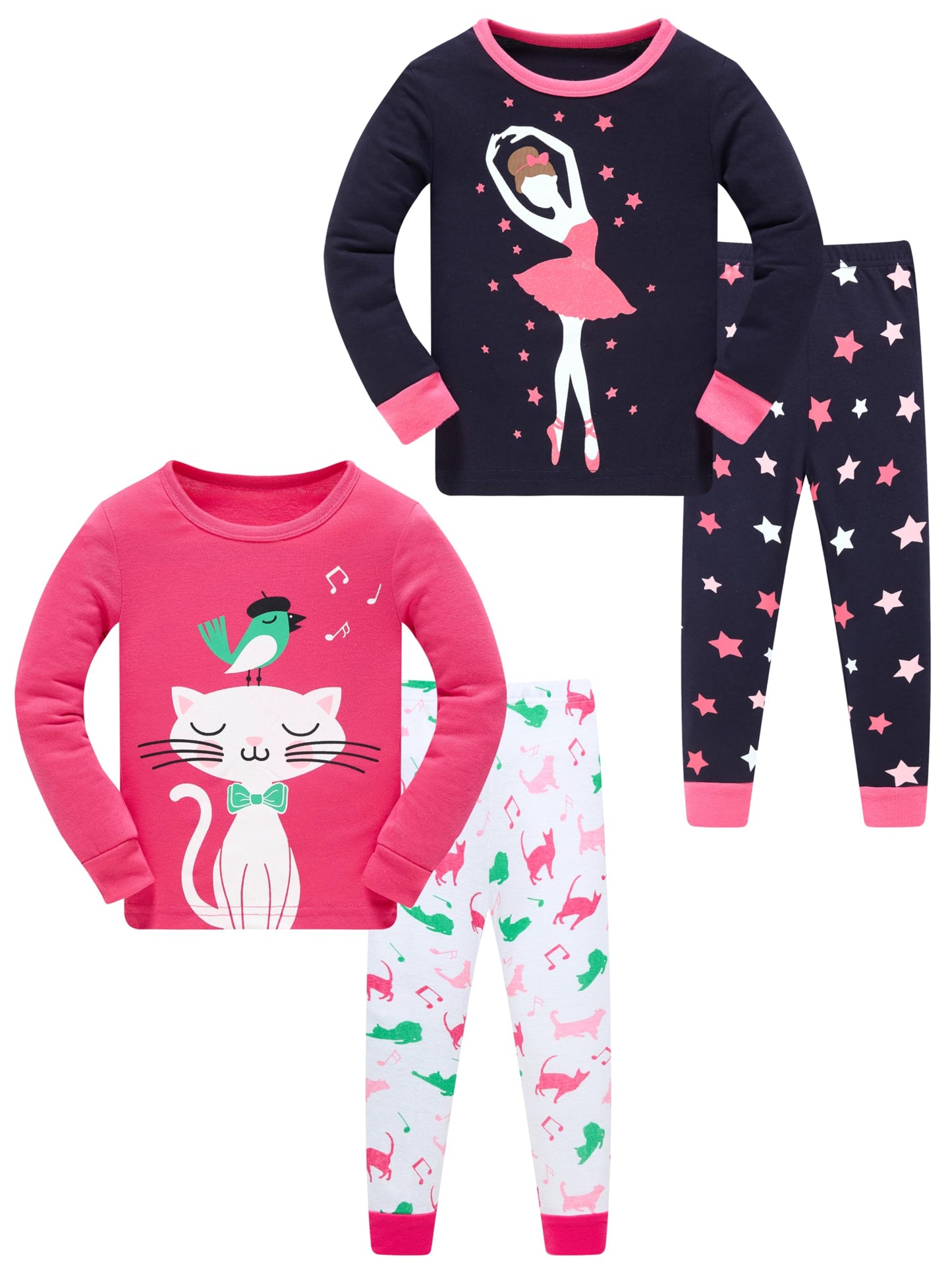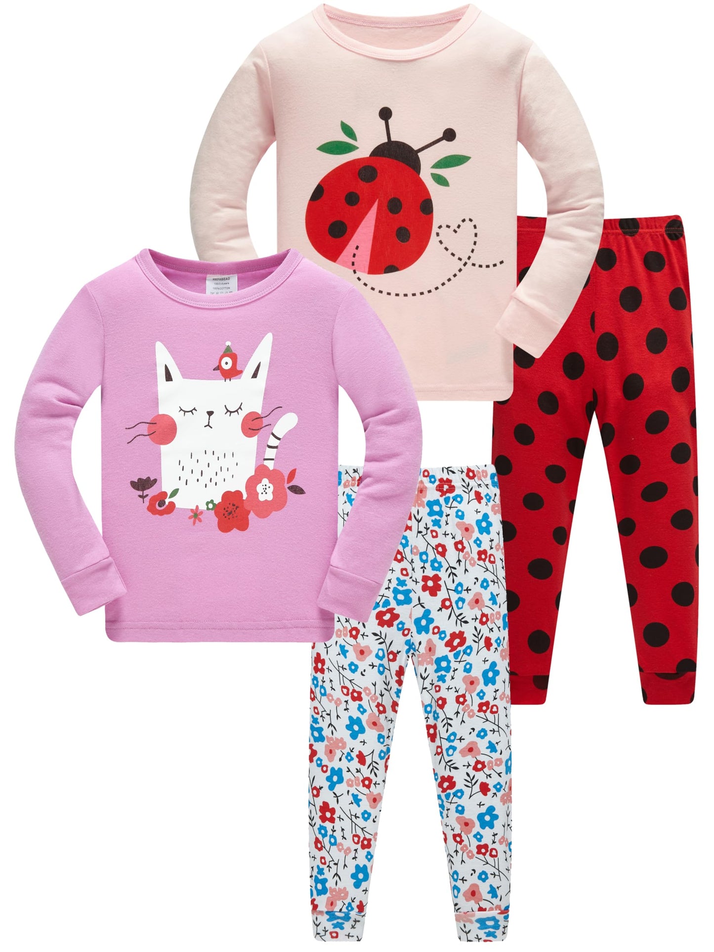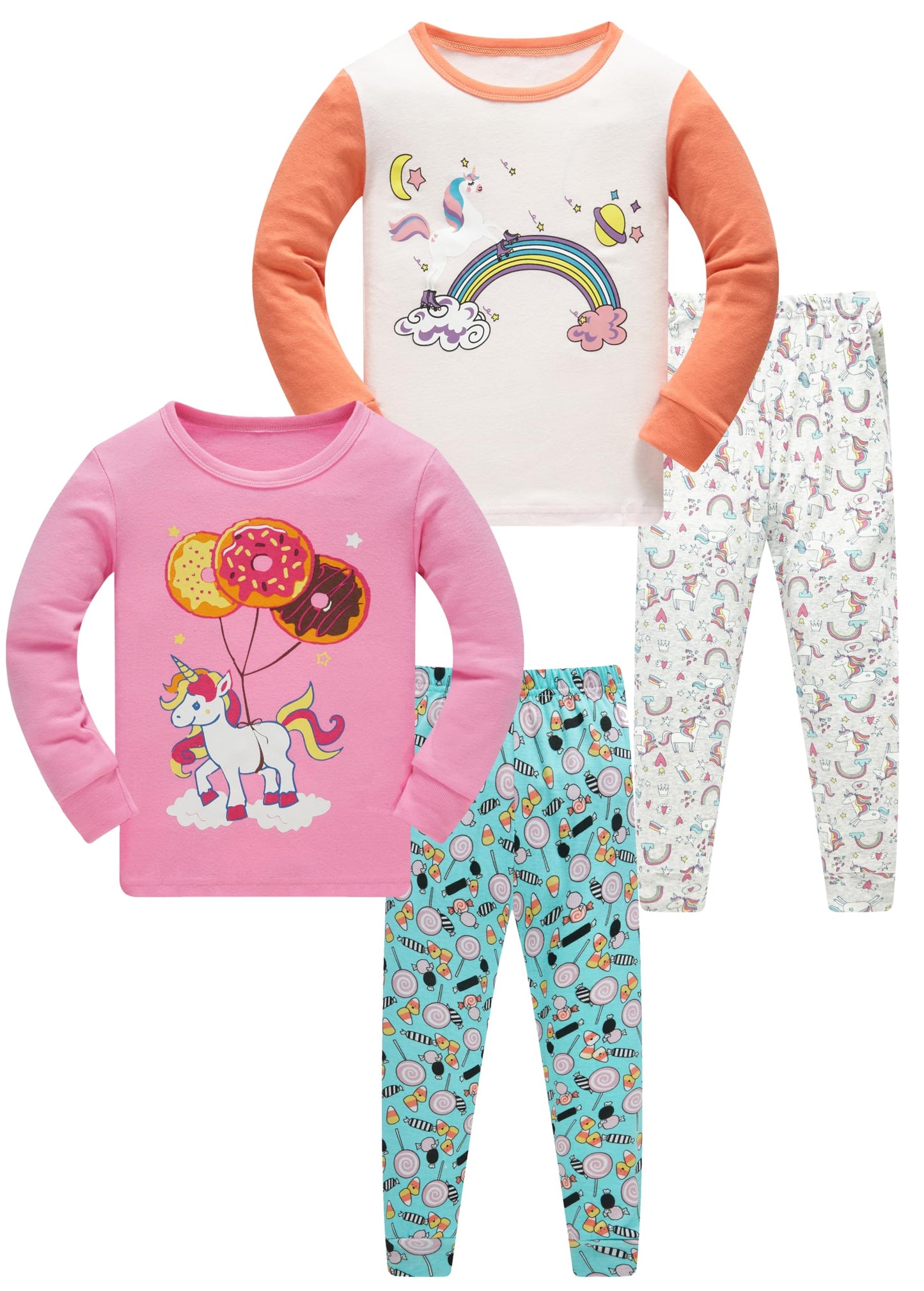 LOLPIP Mädchen Pyjamas 100% Baumwolle Schlafanzug für Kinder Schlafkleidung Langarm 4 Stück Set 1-12 Jahre