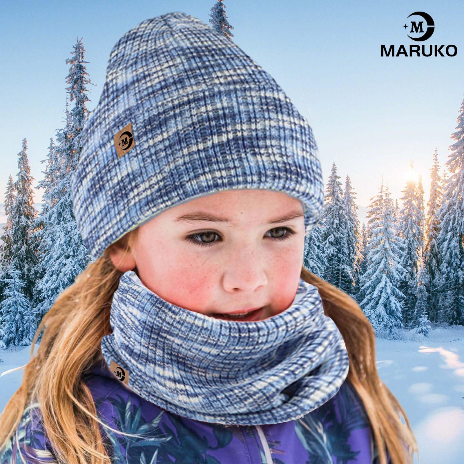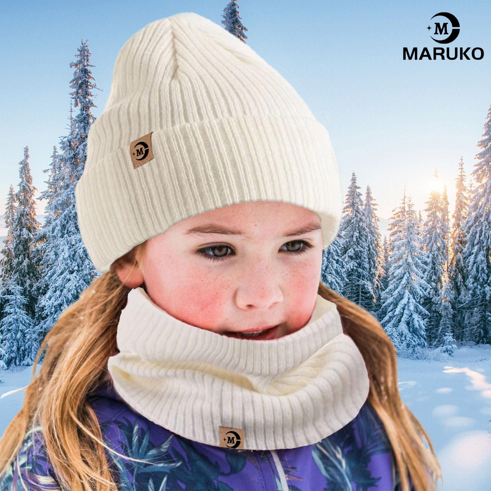 MARUKO Children's Winter Hat Scarf Gloves Set 3 in 1, Toddler Knitted Beanie Neck Warmer, Thick Fleece Thermal Knit Hat Scarf Gloves Set for Children Aged 2-8