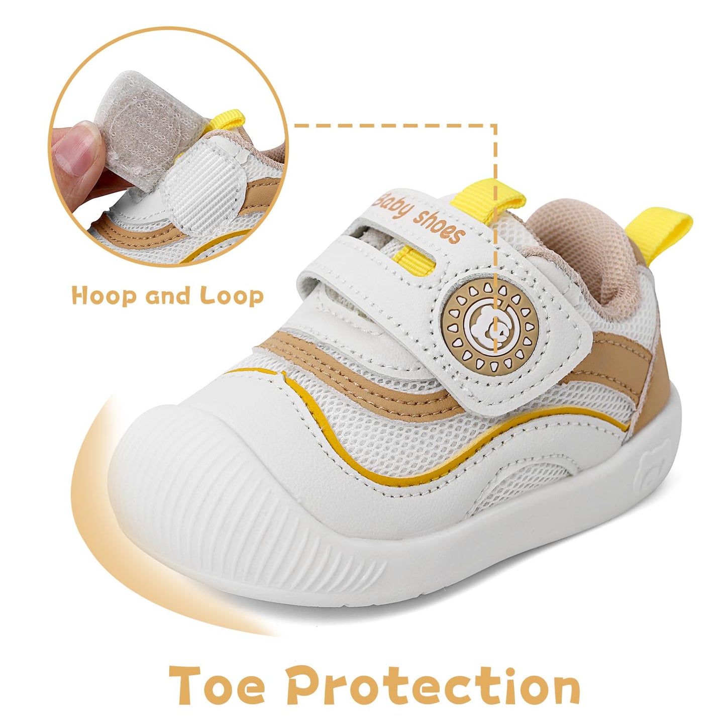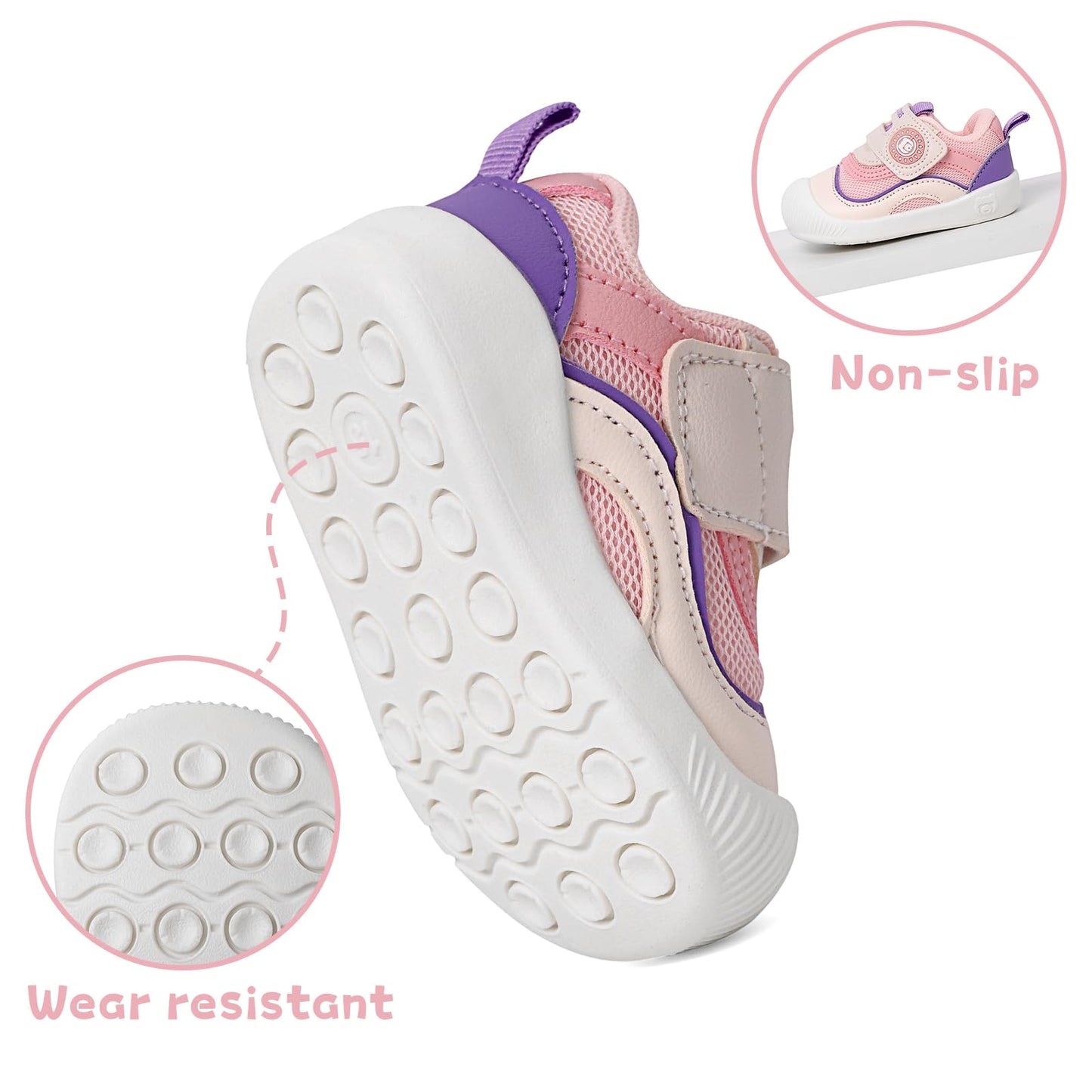 • Weiches Material: Die Schuhe sind aus einem weichen, atmungsaktiven Material gefertigt, das den Füßen Ihres Babys Komfort bietet.