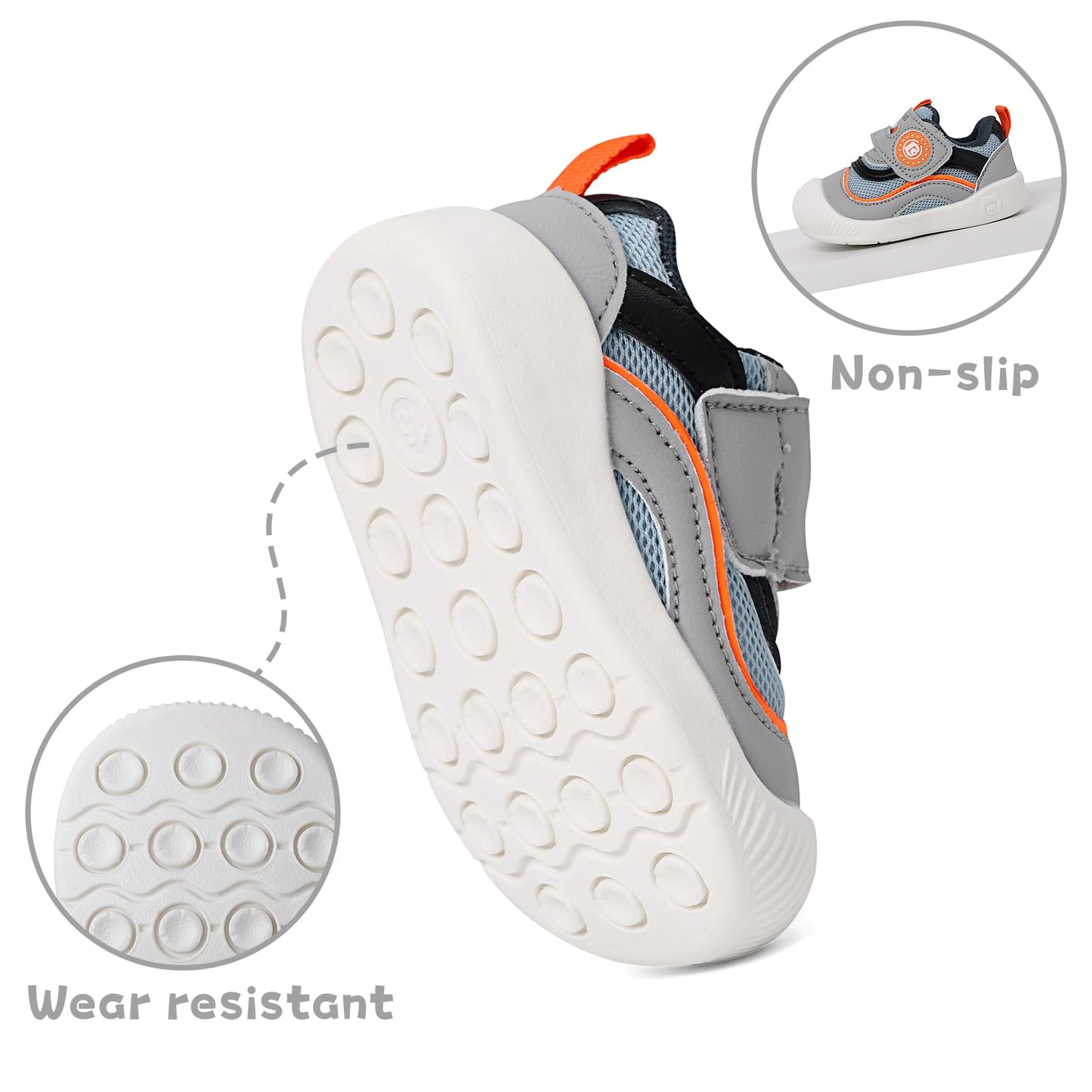 • Rutschfeste Sohle: Dank der speziell entwickelten Gummisohle hat Ihr Kind einen stabilen Halt auf verschiedenen Oberflächen.