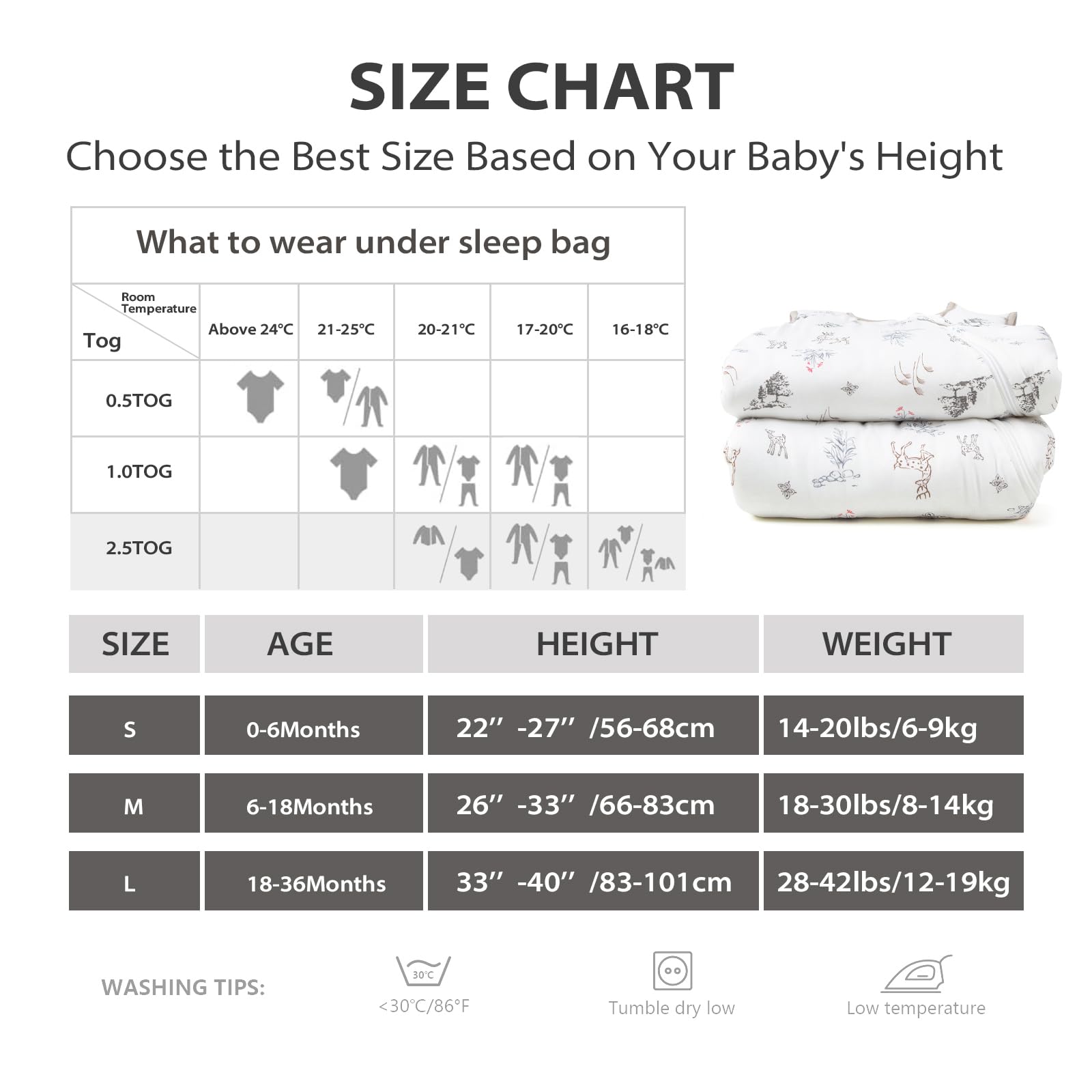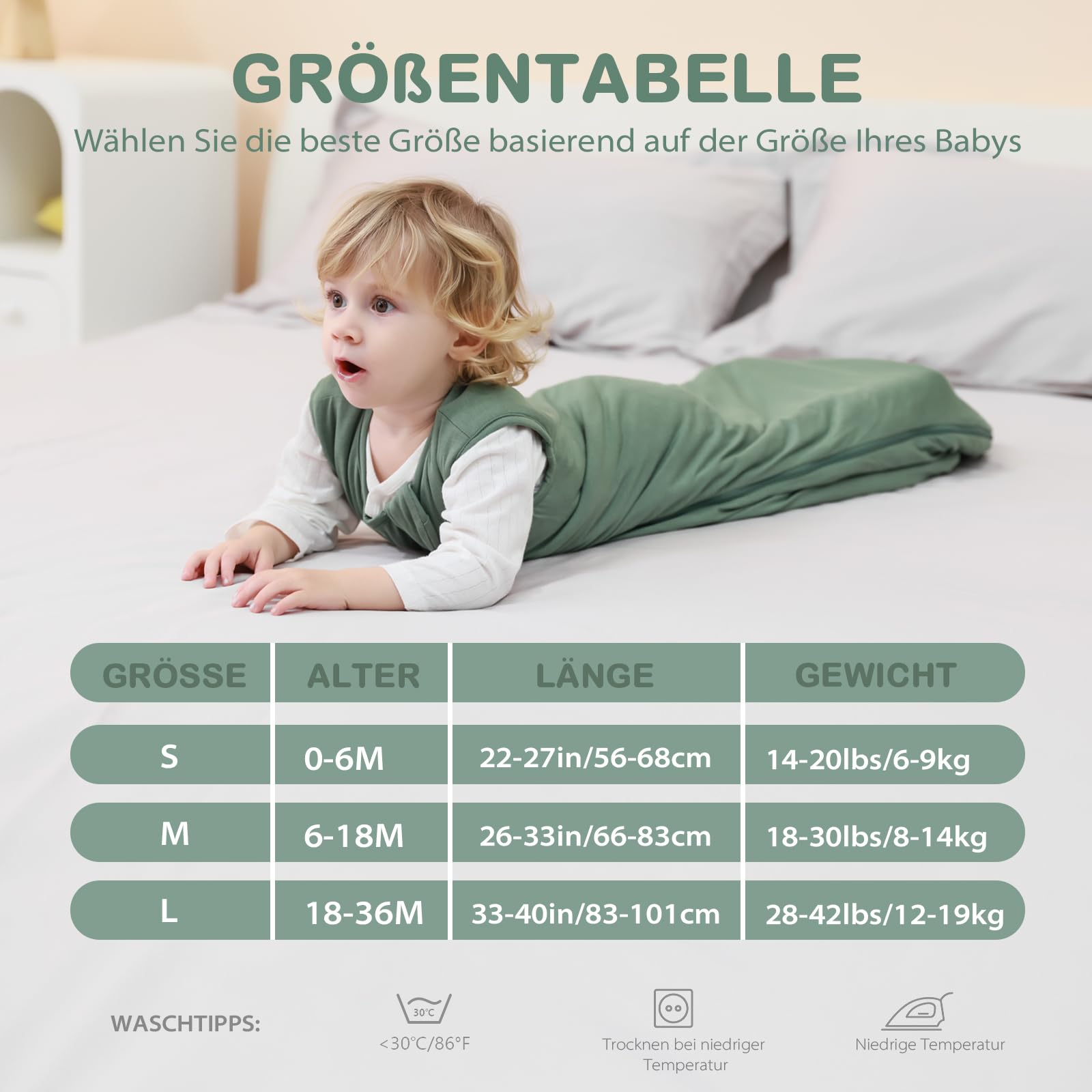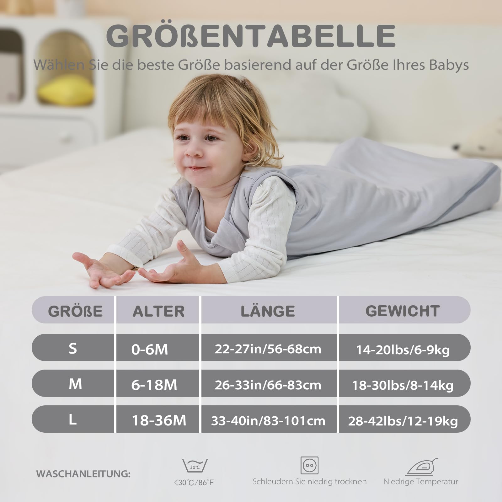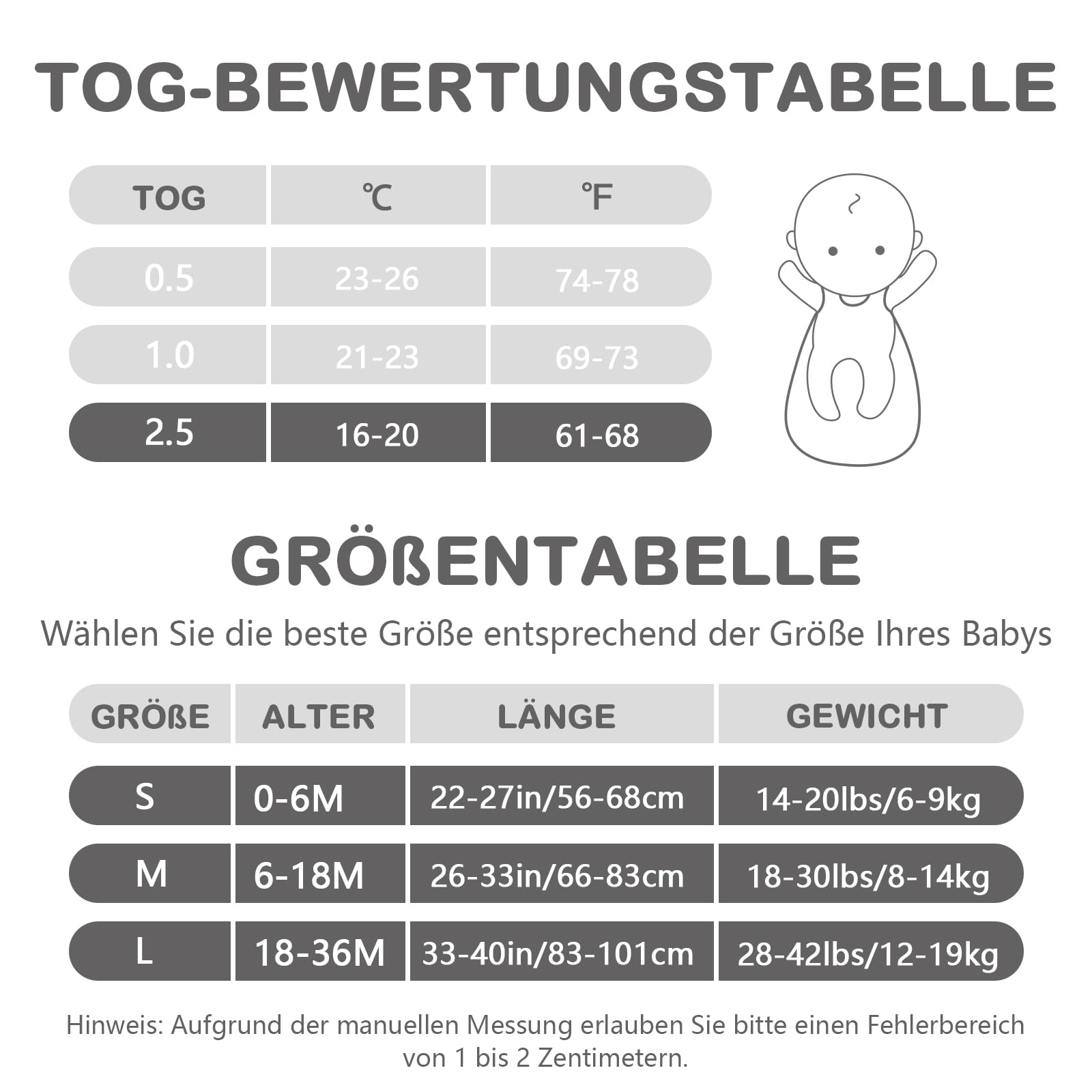 • Comfortable sleep: the baby sleeping bags are 2.5 tog, suitable for year-round use or for rooms for room temperatures below 20 °C. The baby sleeping bag helps your baby sleep in a safe supine position without rolling back and forth.