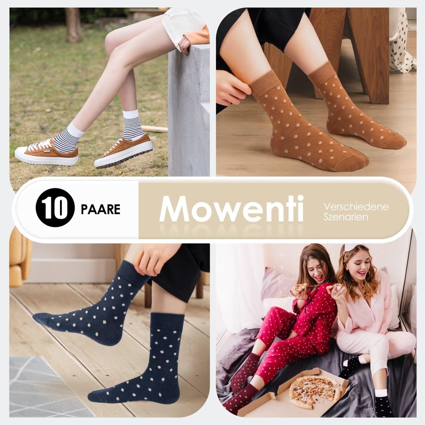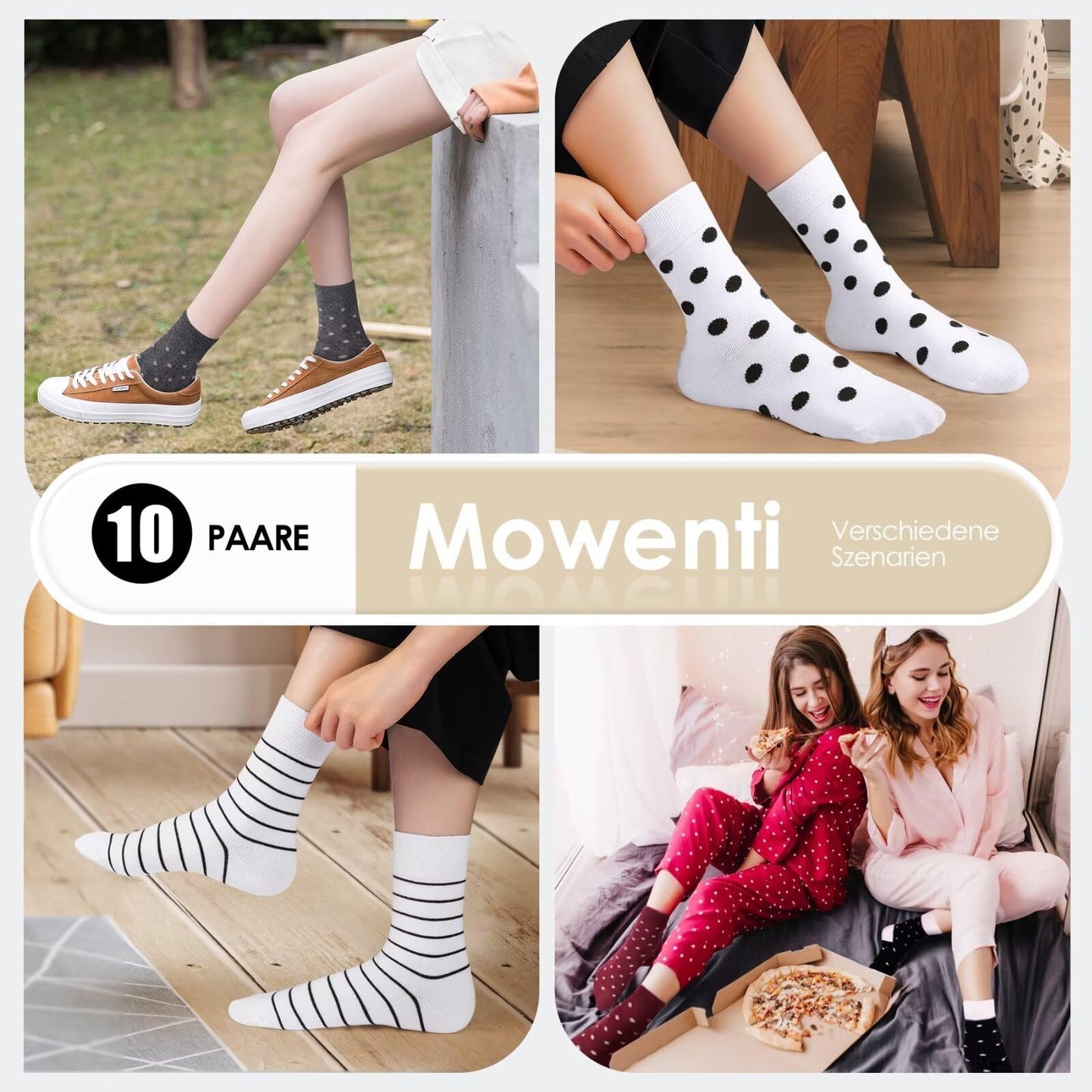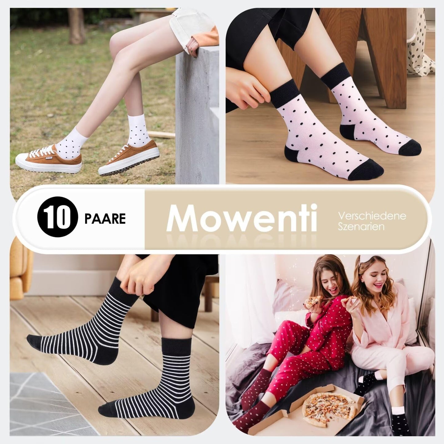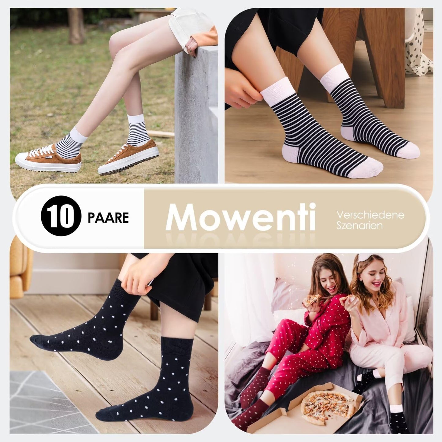 Mowenti Socken Mädchen 35-38 sportsocken strümpfe socks Mädchensocken bunte schwarz Streifen Punkte baumwollsocken 10 Paar