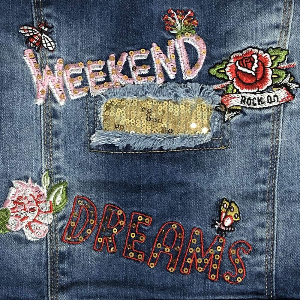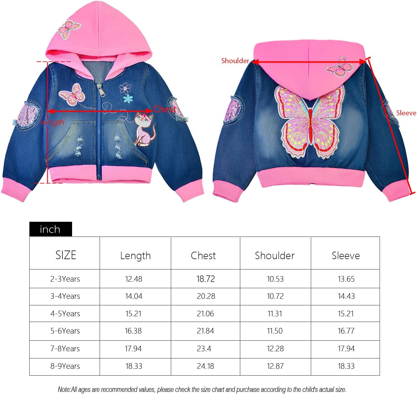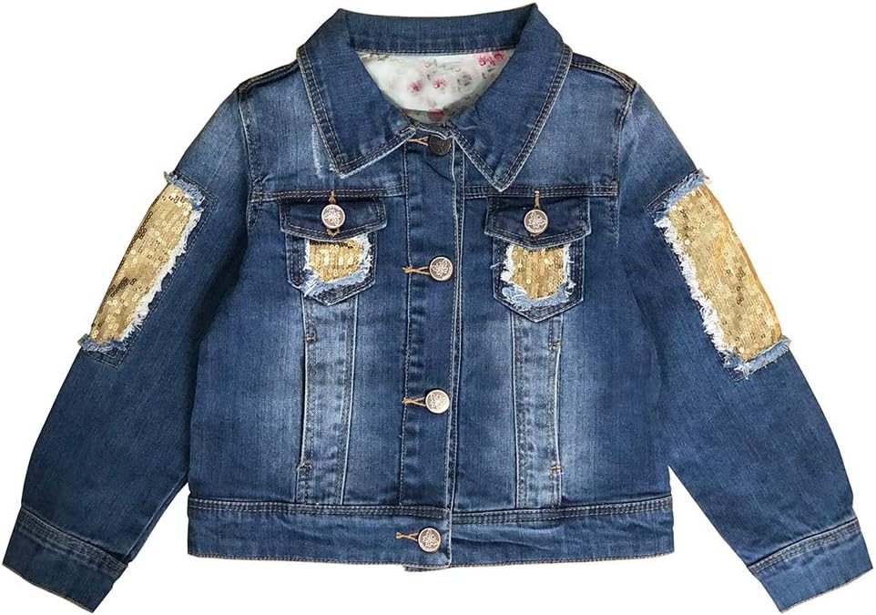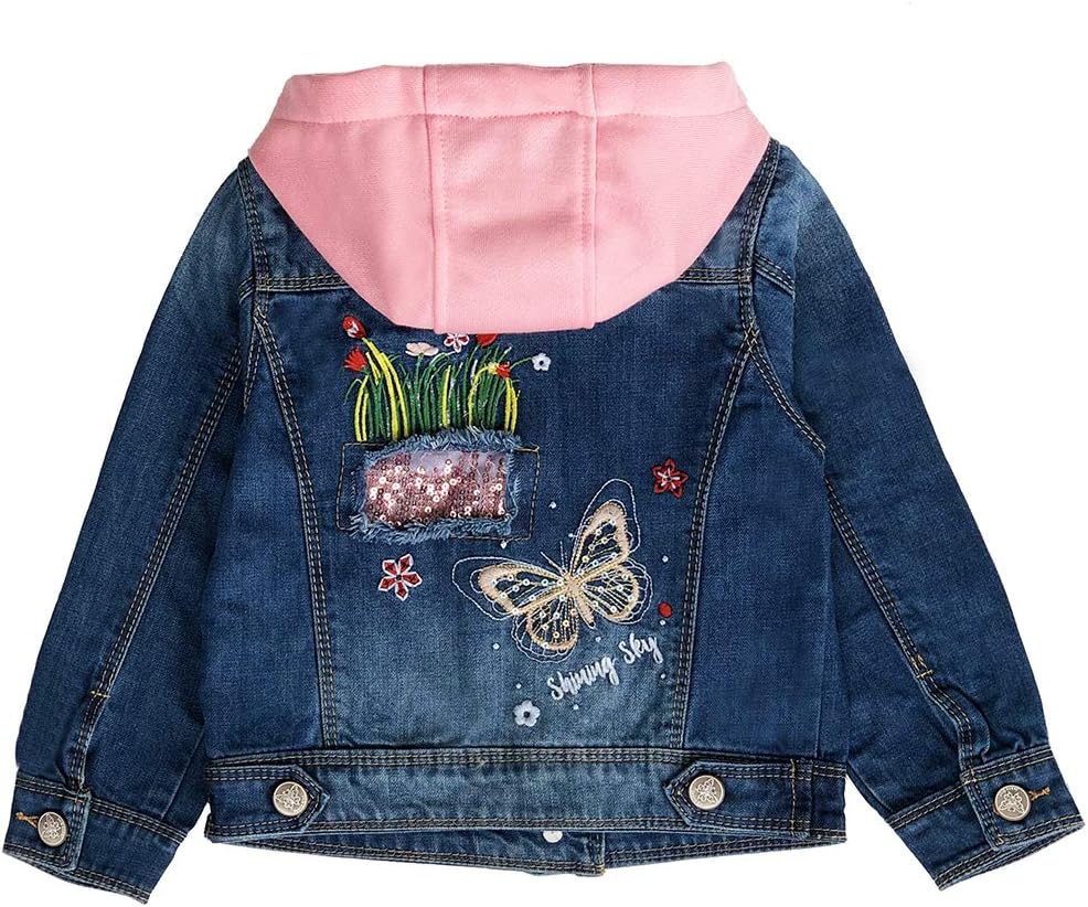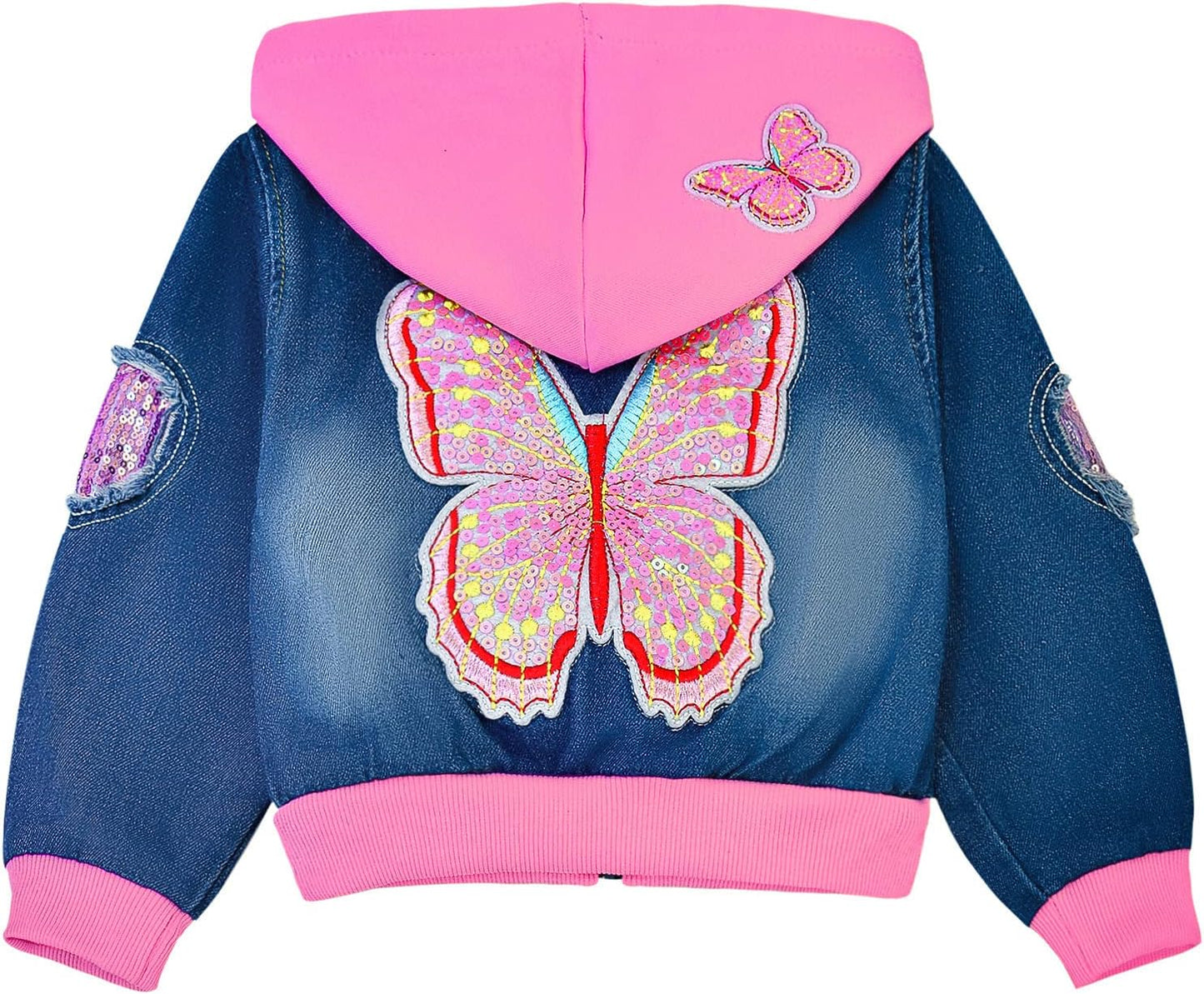 Peacolate 2-11 Jahre kleine Mädchen Stickerei Pailletten Schmetterling Mäntel Jeansjacke