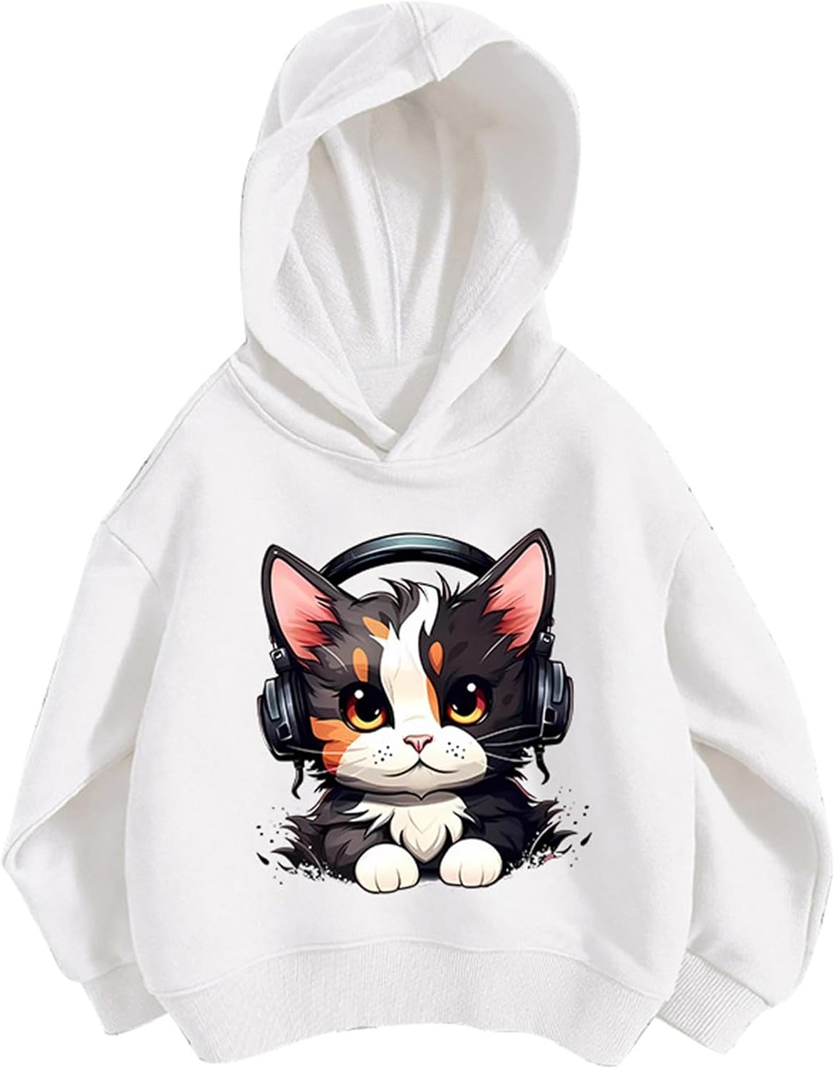 Pullover Mädchen Hoodie Niedlicher Katzen-Druck Lässig Locker Kapuzenpullover Frühling Herbst Langarm Pullover Sweatshirt mit Kapuzen Langarmshirt Oberteile für 3-12 Jahre