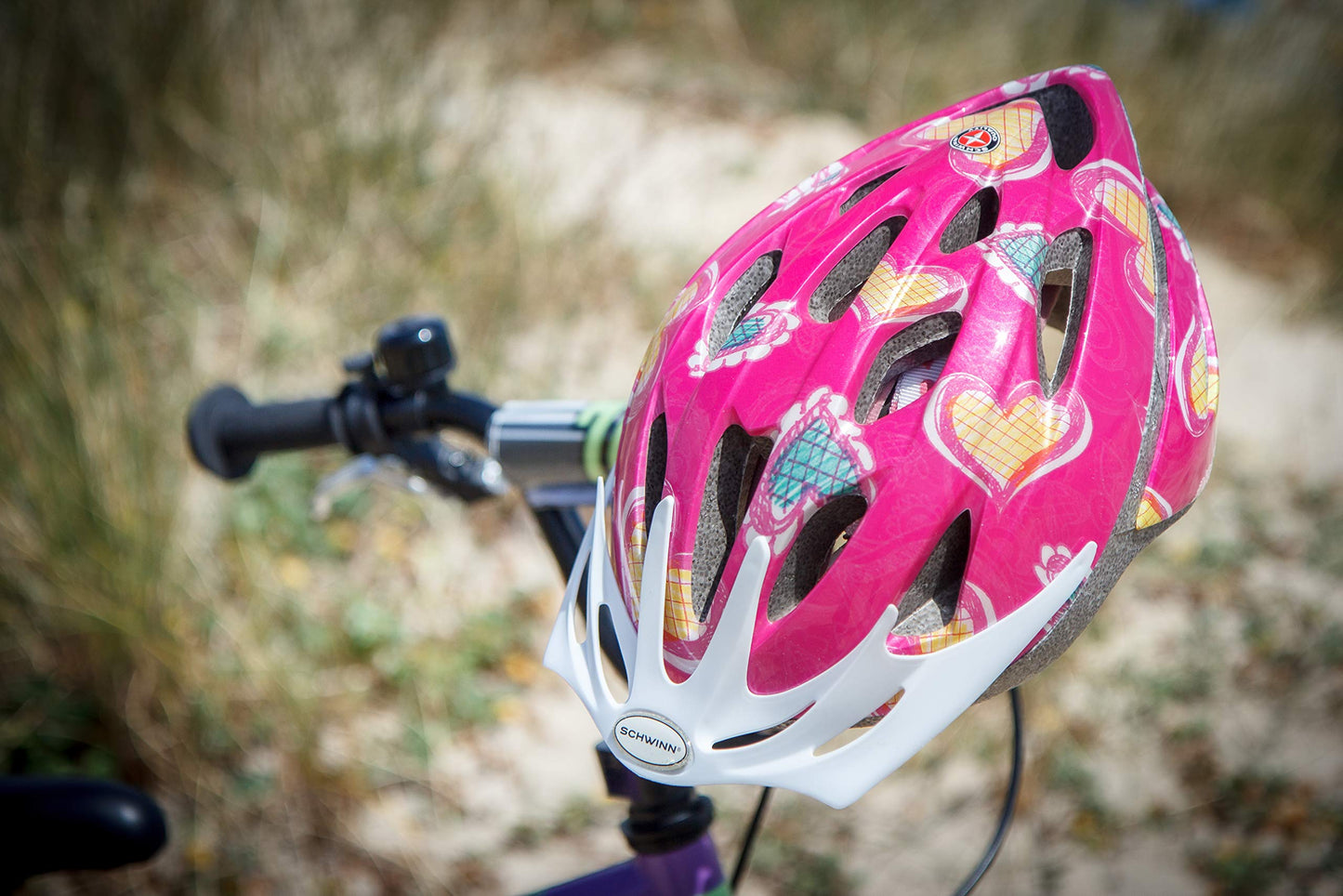 • Cruise mit dem Schwinn Thrasher Kinderhelm „Herzen“ auf den Radwegen, Pfaden und Mountainbiketrails sicher herum