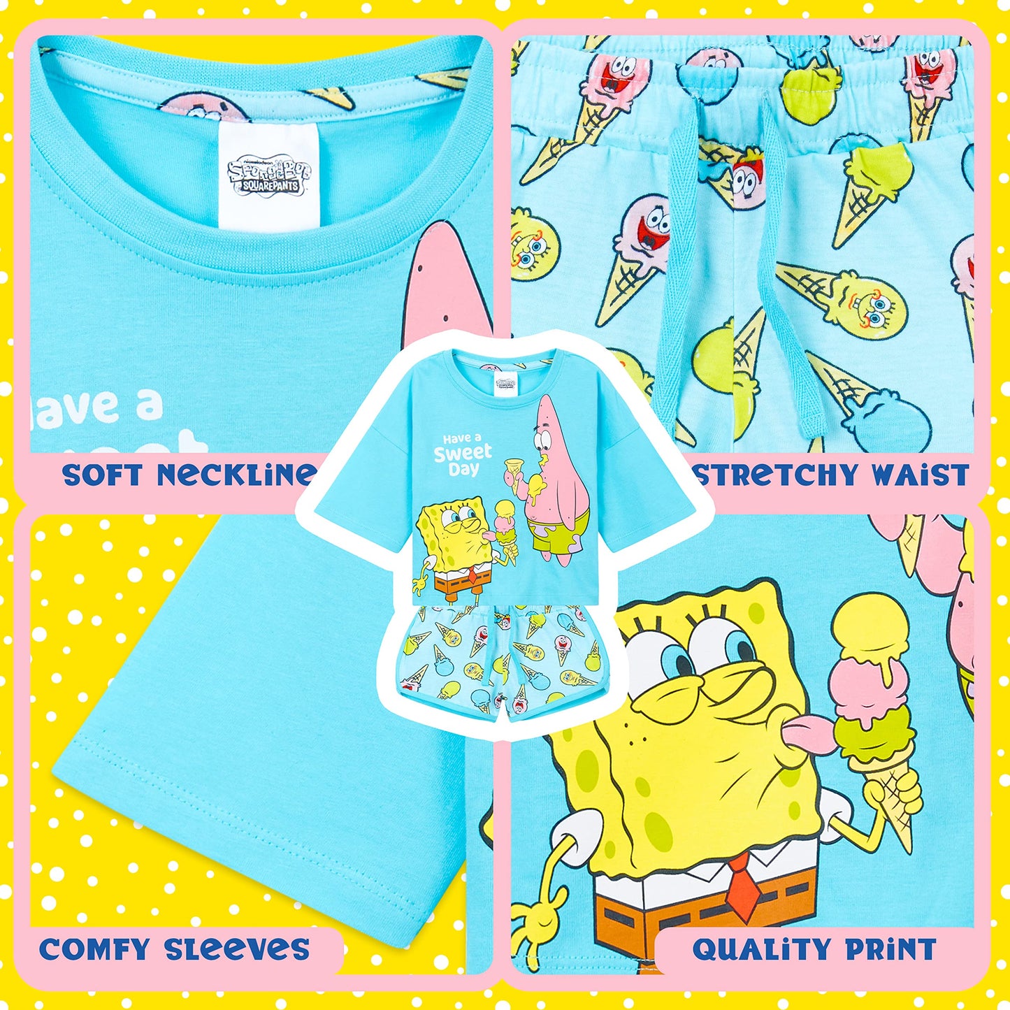 • 2-Teiliges Pyjama Mädchen Set – Enthält ein weiches SpongeBob Tshirt mit kurzen Ärmeln und kurzen Pyjama Hosen – ideal zum Relaxen, Spielen oder für warme Sommernächte