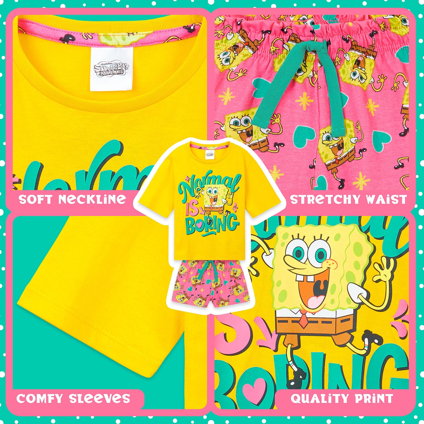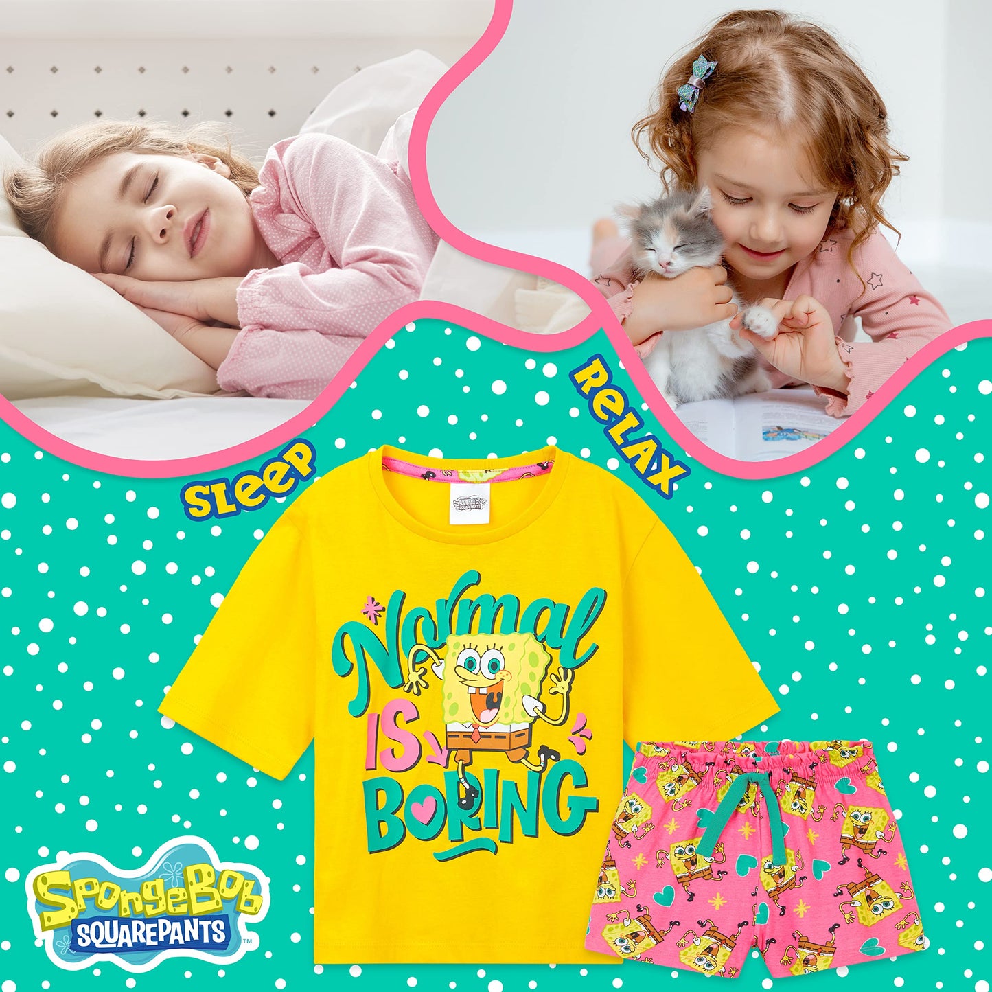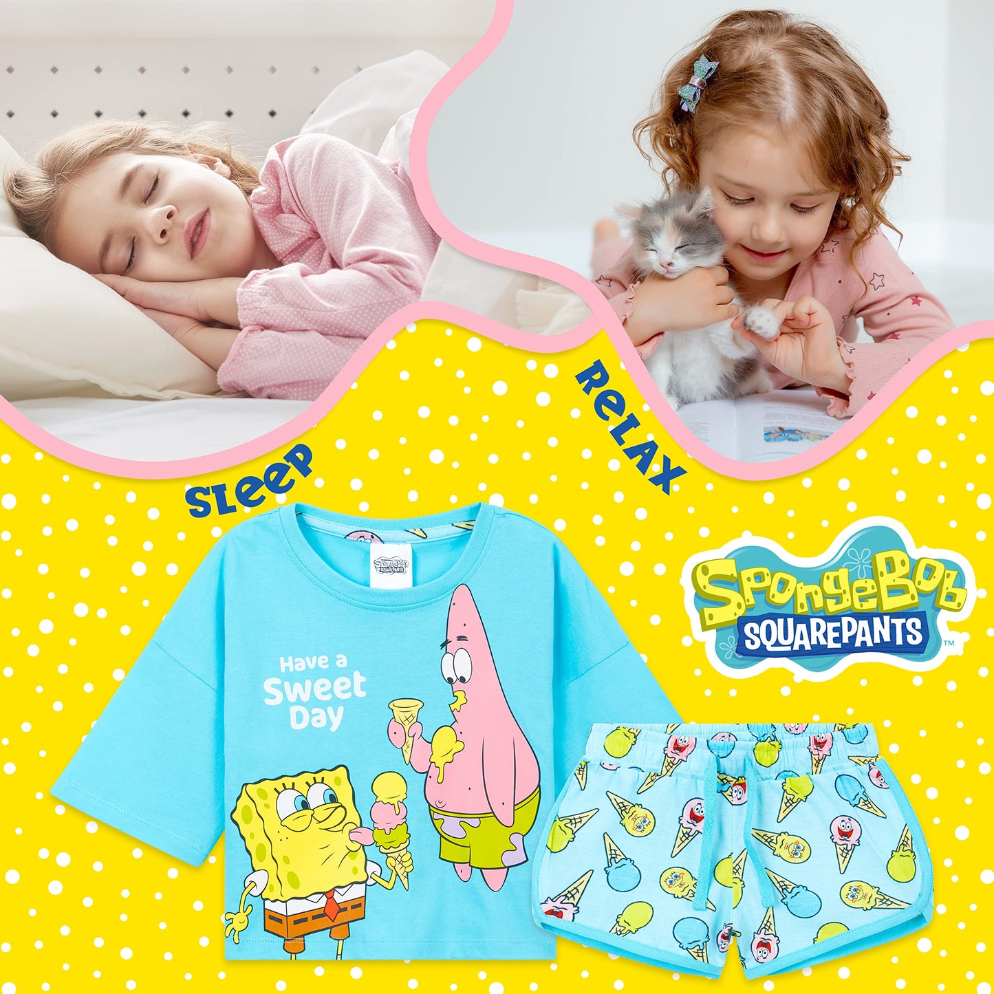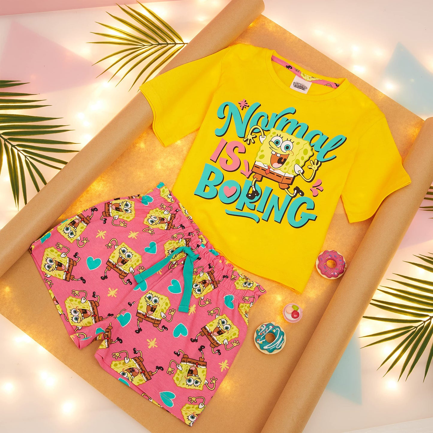 SPONGEBOB SQUAREPANTS Pyjama Kinder Teenager Weiche Mädchen Schlafanzug Kurz Sommer Lounge Set Geschenk für Mädchen