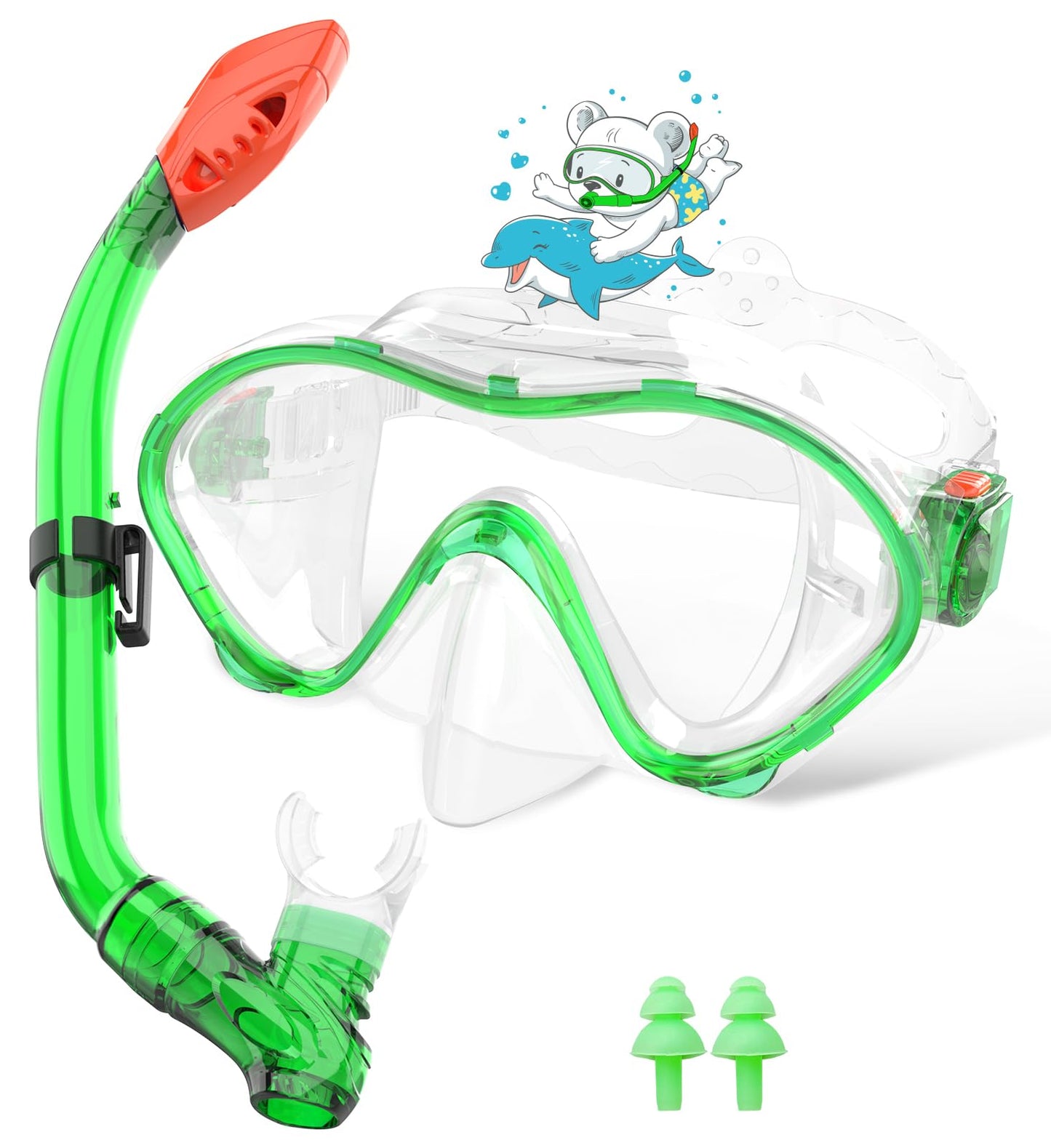Sporzin Children's Diving Goggles Snorkel Set - Snorkel with Dry Snorkel Mask 180° Panoramic View HD and Anti-Fog Silicone Diving Mask and Swimming Goggles with Ear Plugs 4-12 Years