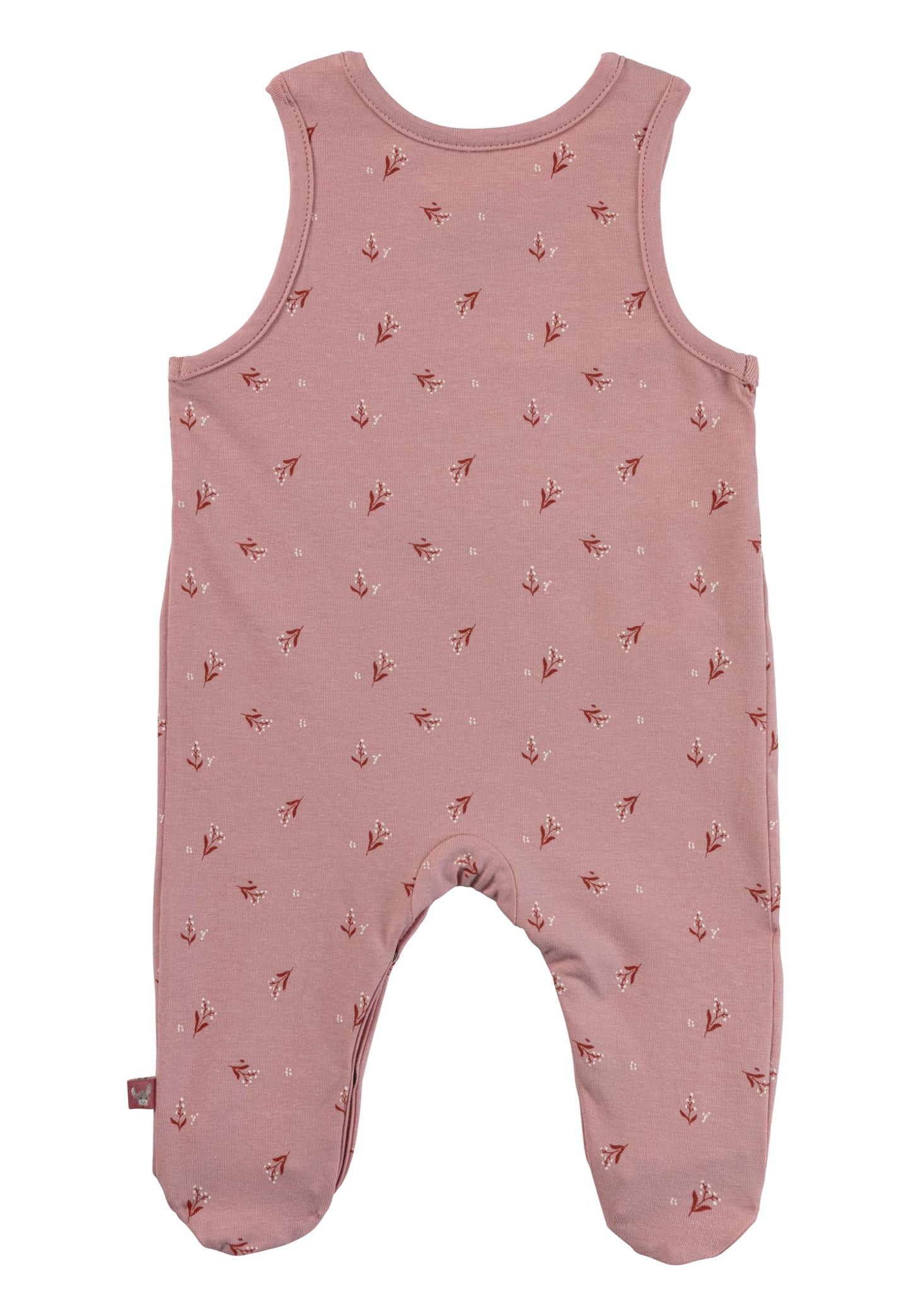 Strampler-Set aus Baumwolljersey mit Elasthan, bedruckt mit Blümchen, mit Applikation Emmi Girl, Strampler mit zwei Taschen vorne, Langarmbody aus uni Single Jersey