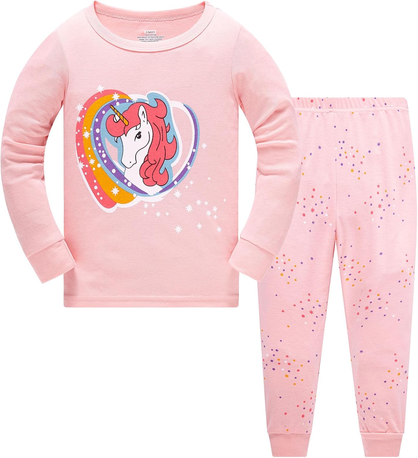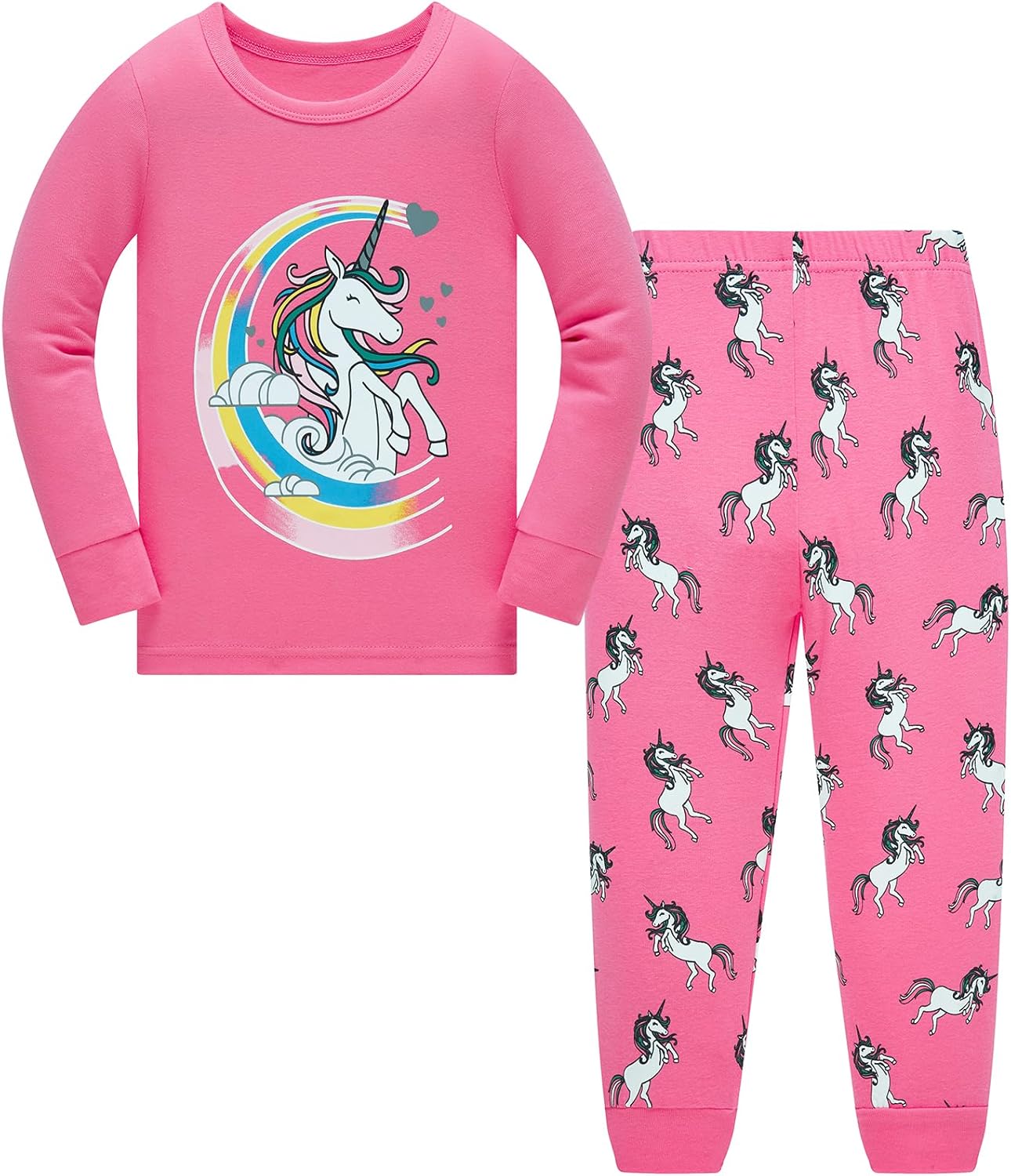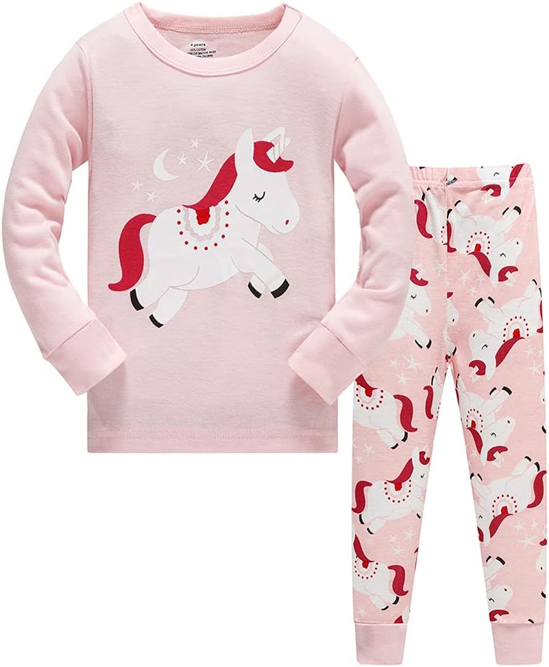 TEDD Girls' Pyjamas, Cotton, Cute, Unicorn, Long Sleeves, Two-Piece Pyjamas Set, Kids’ Sleepwear, Winter, Christmas, Sizes 1-12 Years