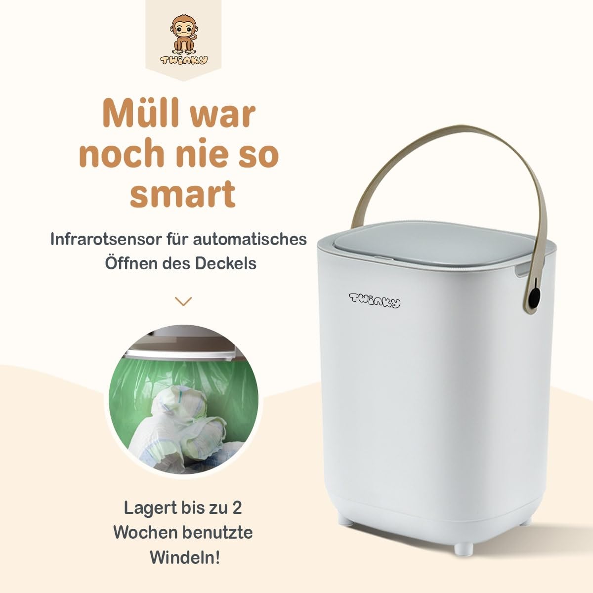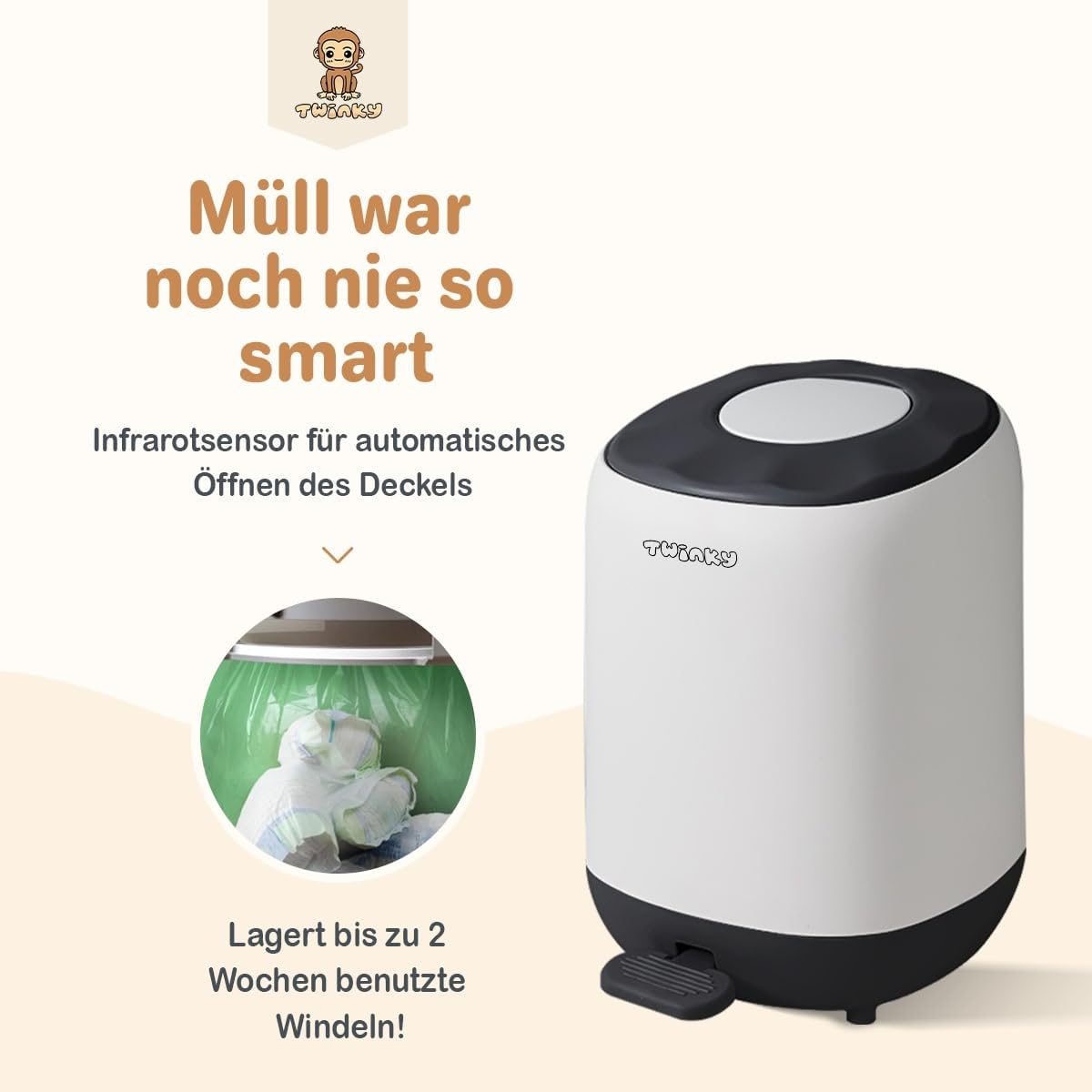 Twinky Geruchsdichter Windeleimer für Babys – Windeleimer ohne Kassette – Platzsparender Windelbehälter mit Deckel – Einfach zu benutzen & reinigen – Für normale Müllbeutel (Gris)