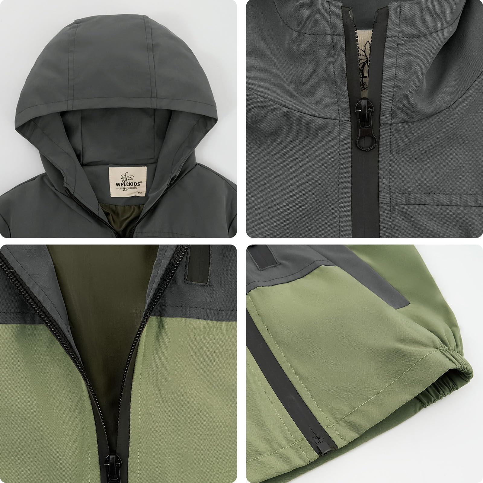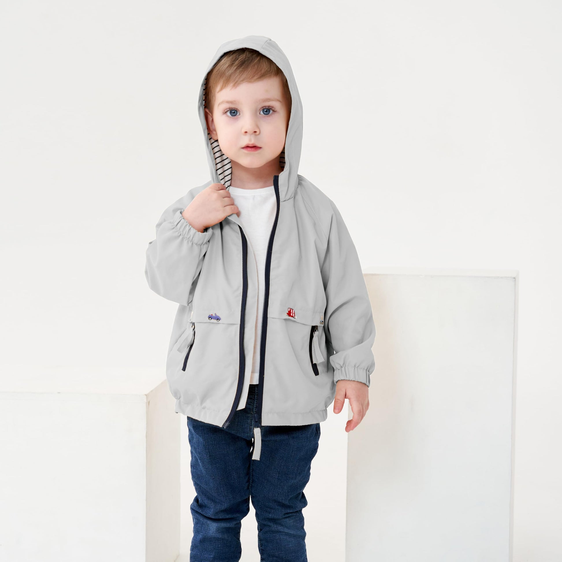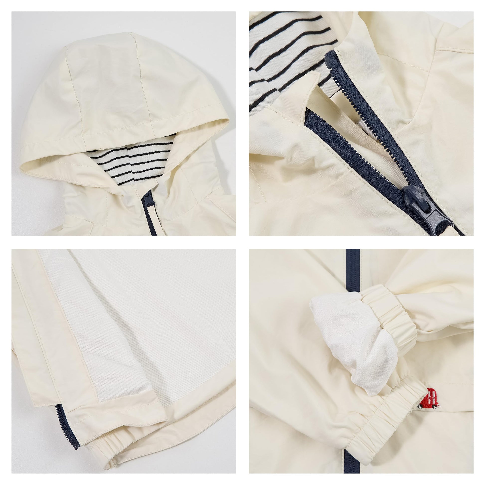 - Features: hooded wind jacket for children, mesh / cotton lining, elastic cuff design, breathable and comfortable; two front side pockets are decorated, baby can let go of small things; zip open and close, easy to put on and take off.