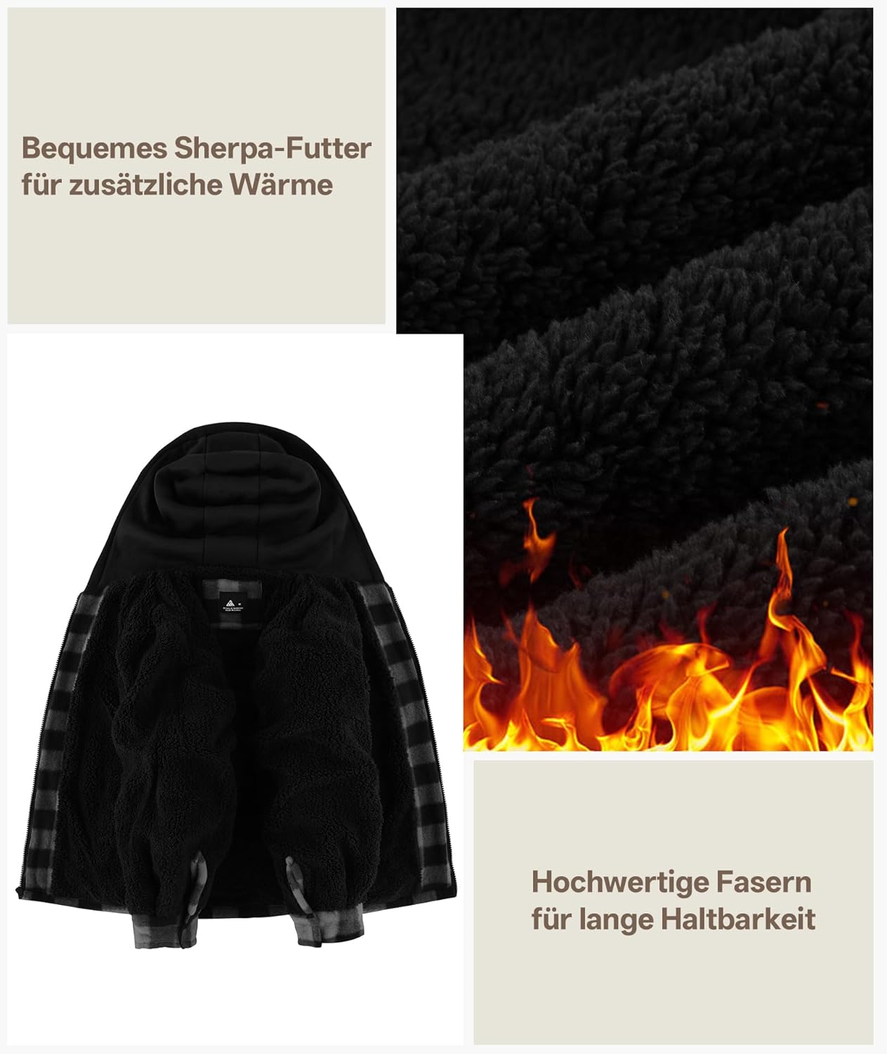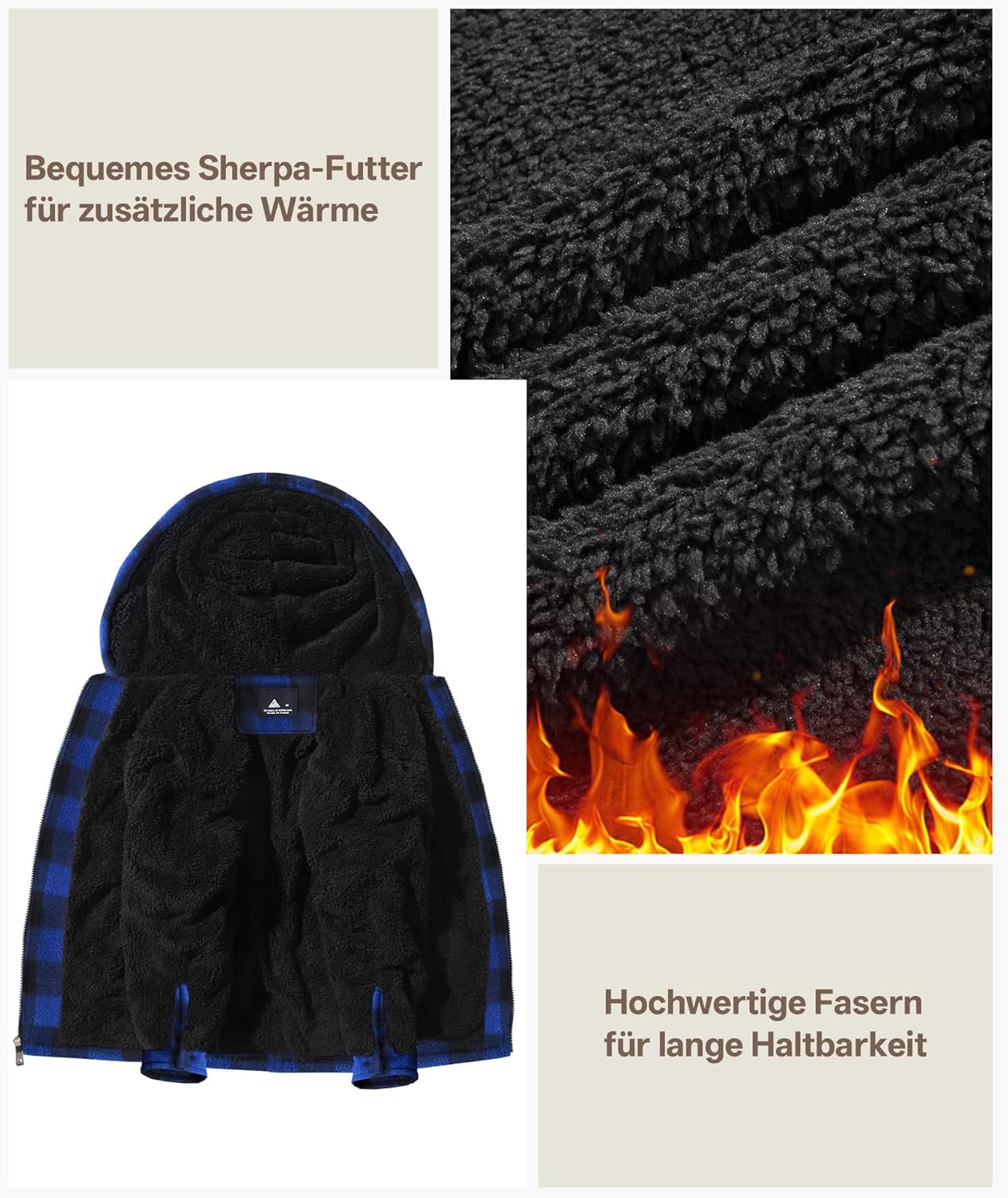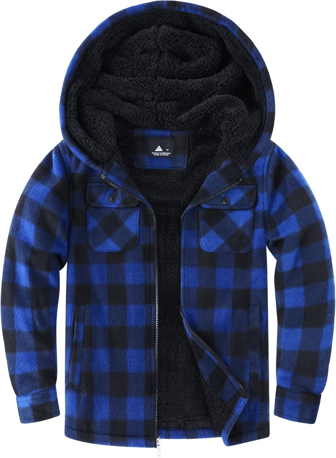 zitysport Shirt Jacket Boys Thick Hoodie Checked Jacket Children with Zip Warm Flannel Jacket Boys Sweat Jacket Outdoor Fleece Jacket Winter Jackets for Boys with Chest Pocket