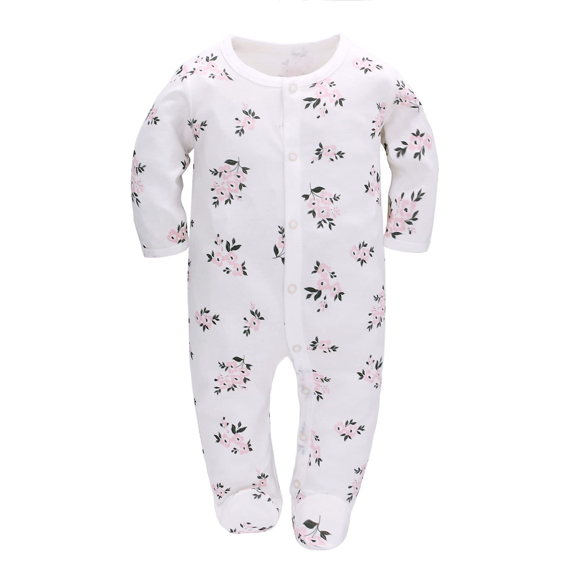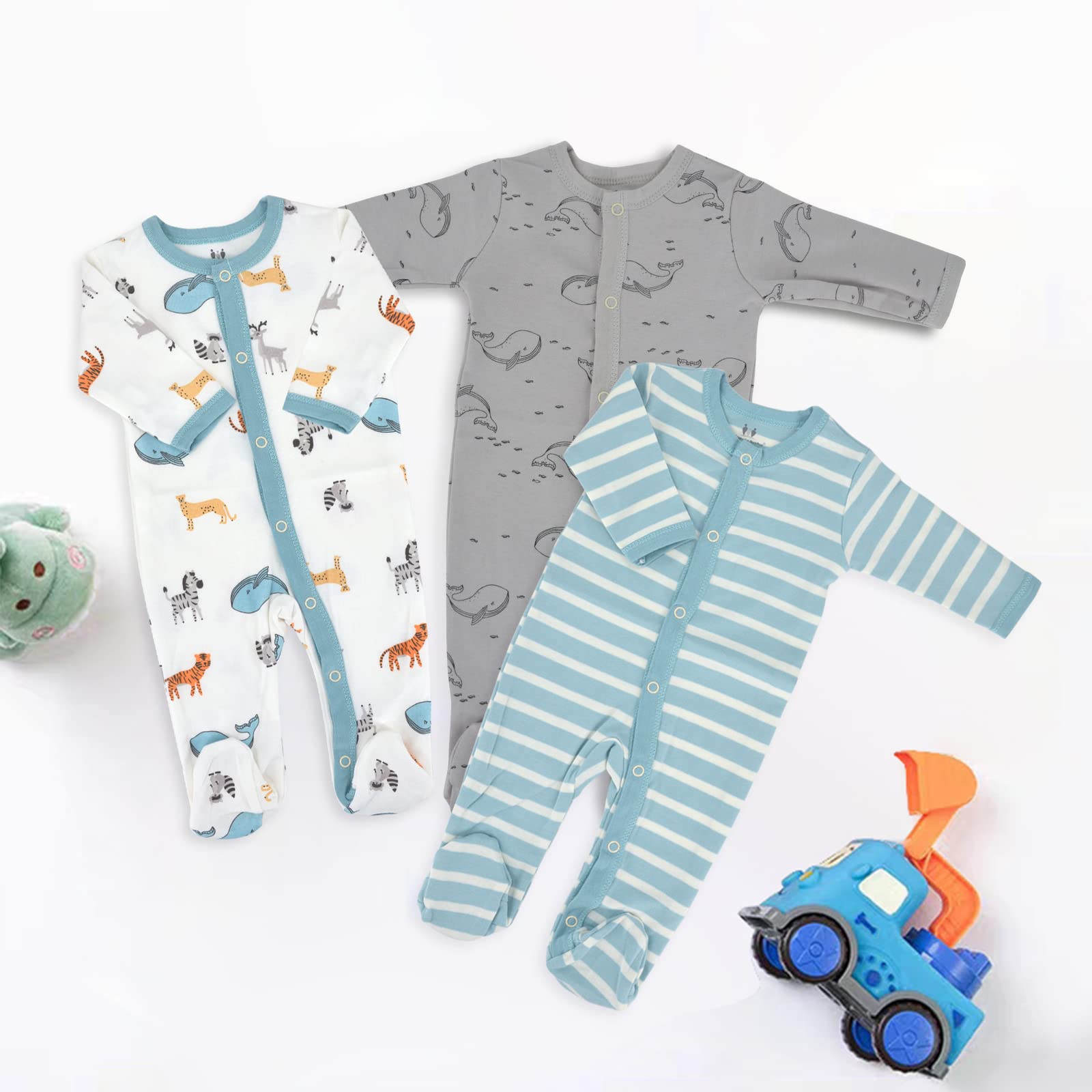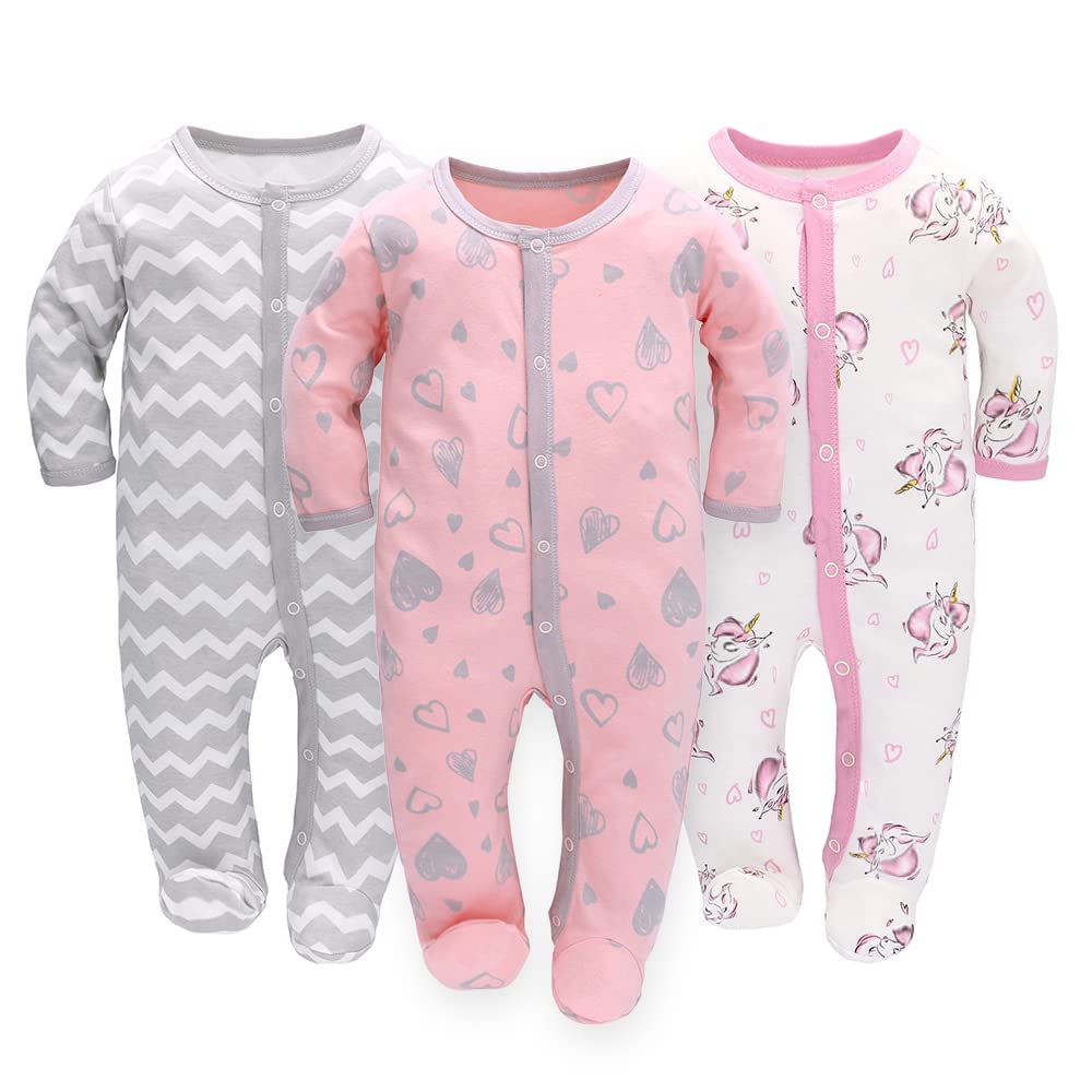 3PCS Baby Schlafstrampler Babychlafanzug Babyschlafsack Baumwolle mit Füßen mit knöpfen Gr. 56 62 68 für Junge Mädchen Neugborenen